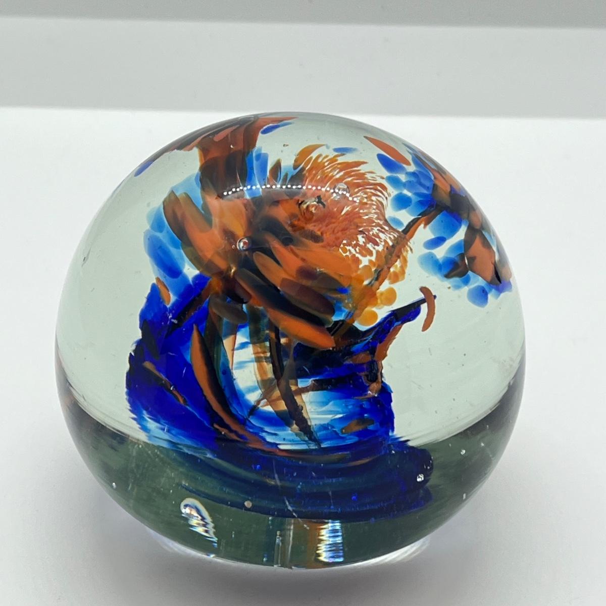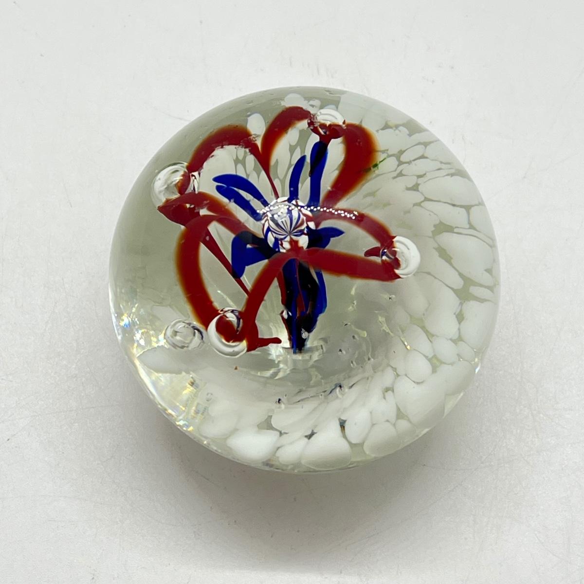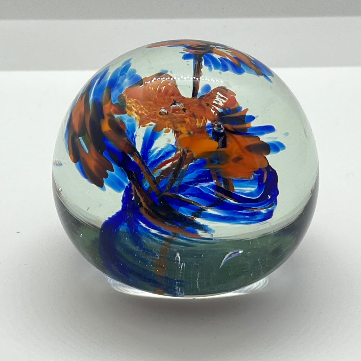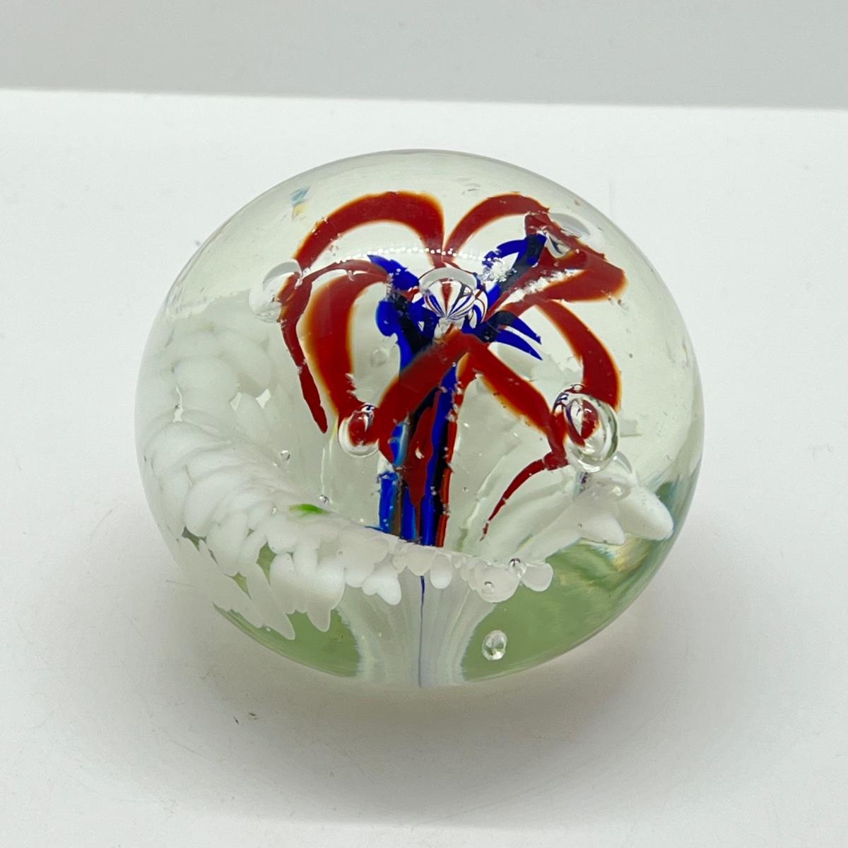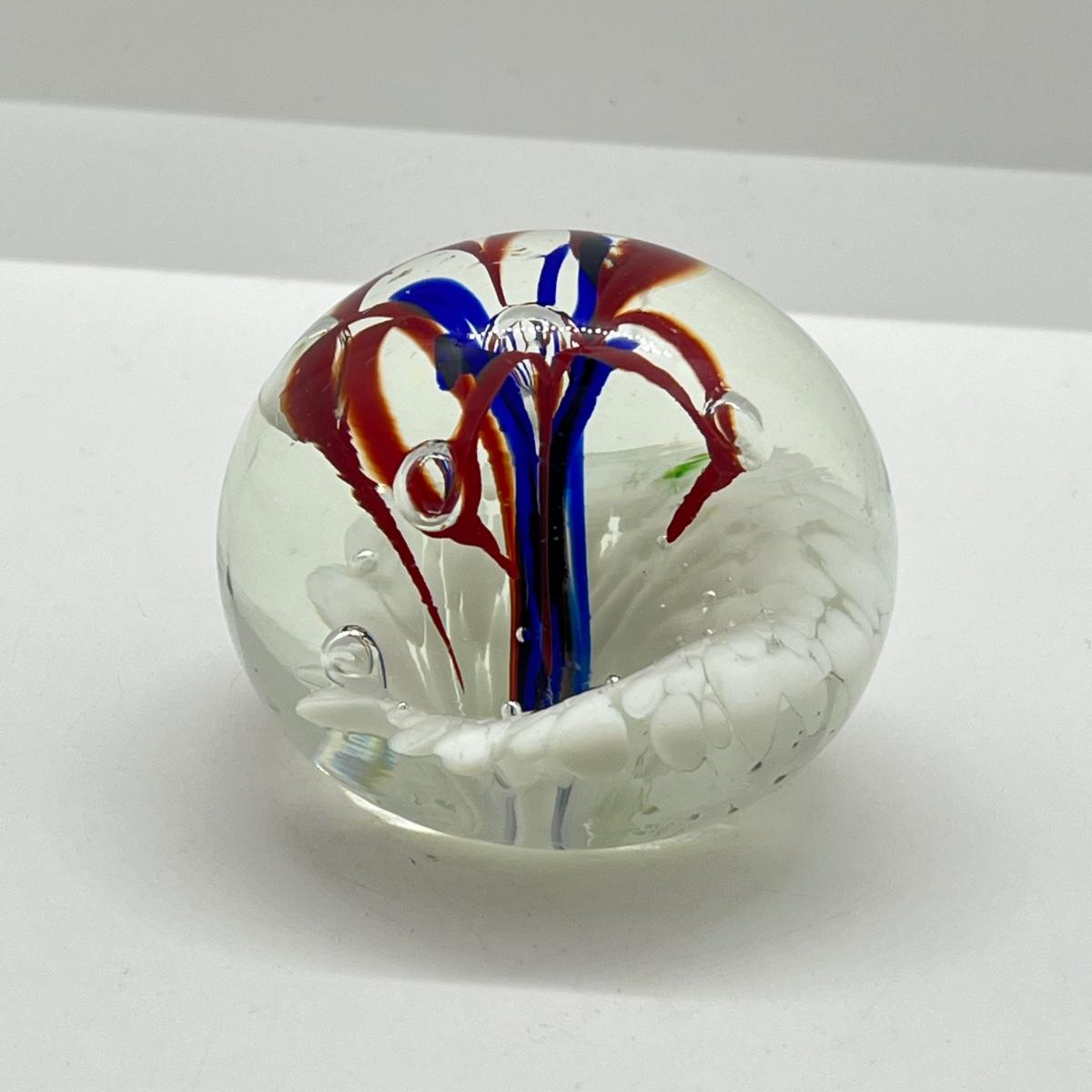 LOT 22K: Four Handlblown Floral Themed Glass Paperweights