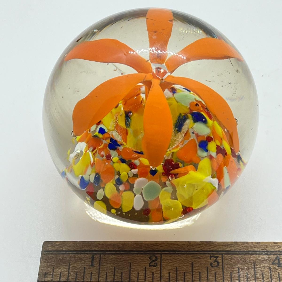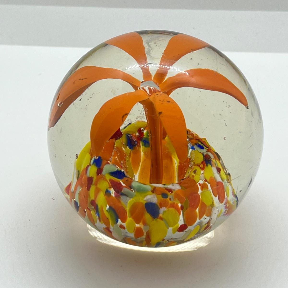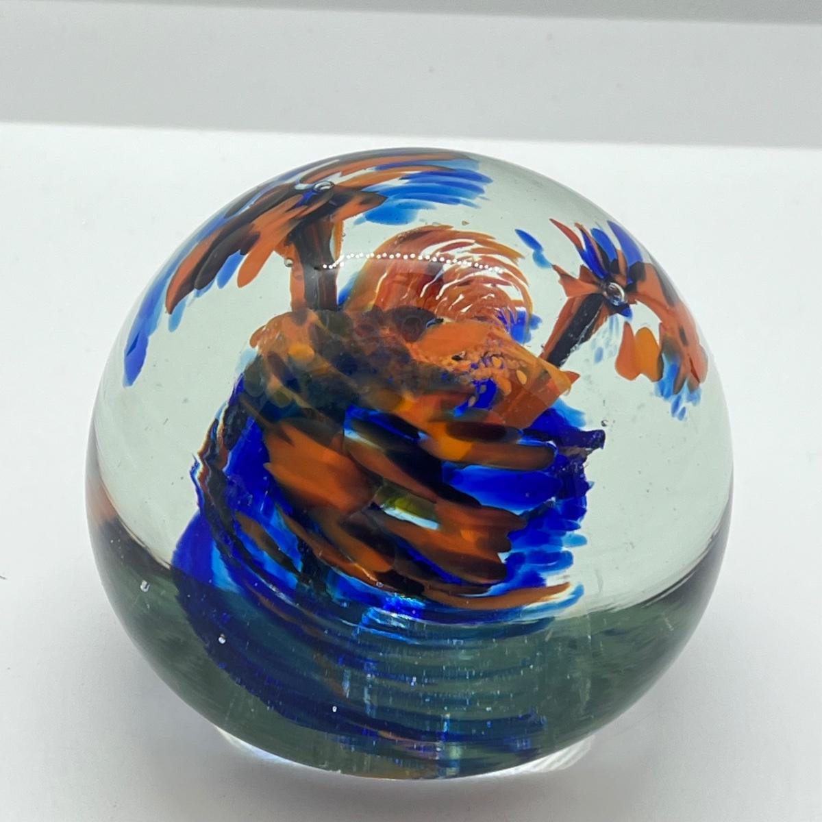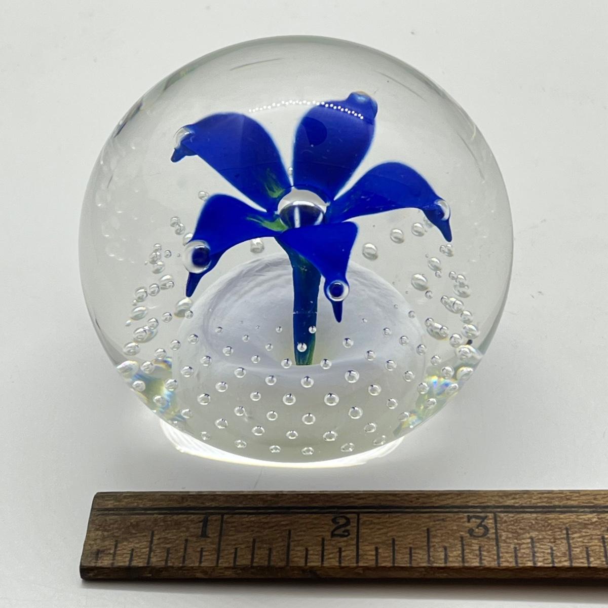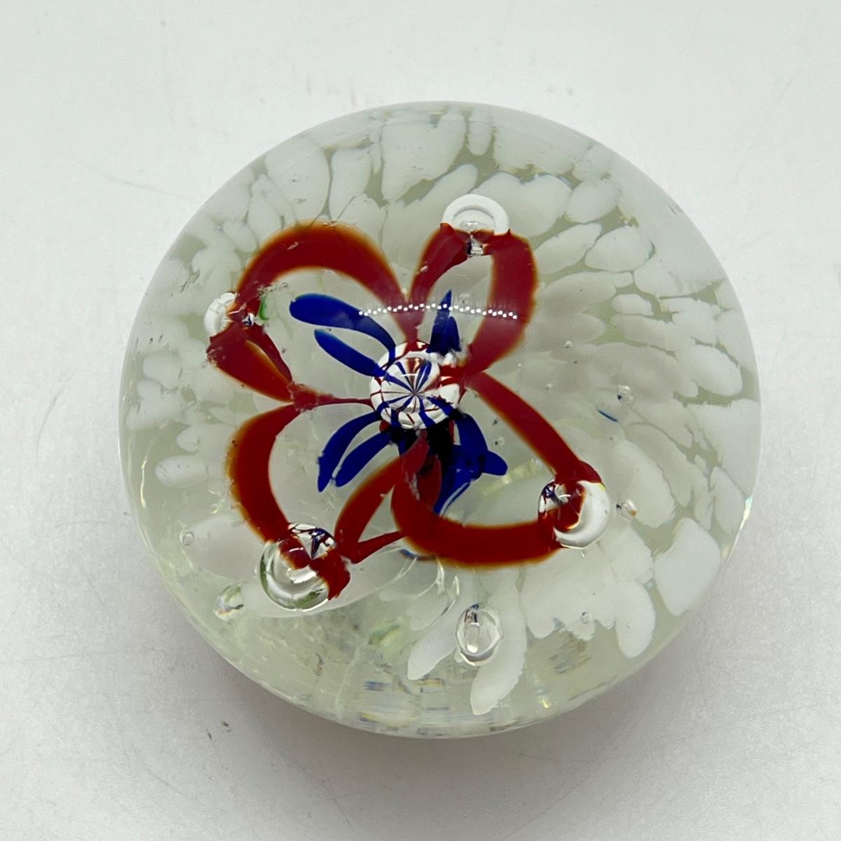 LOT 22K: Four Handlblown Floral Themed Glass Paperweights
