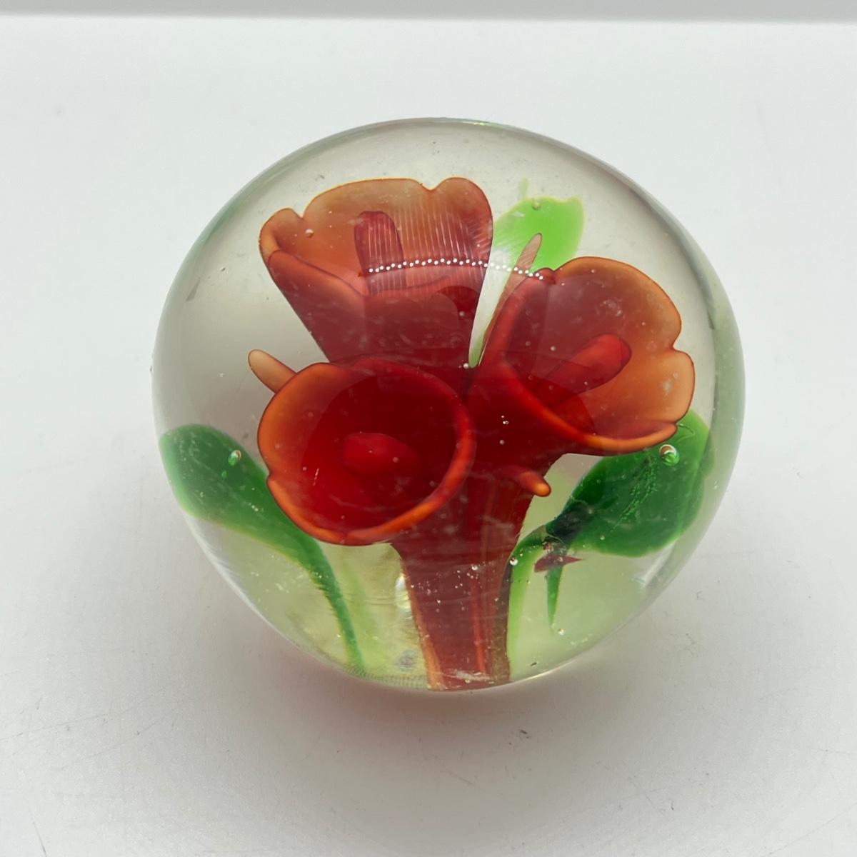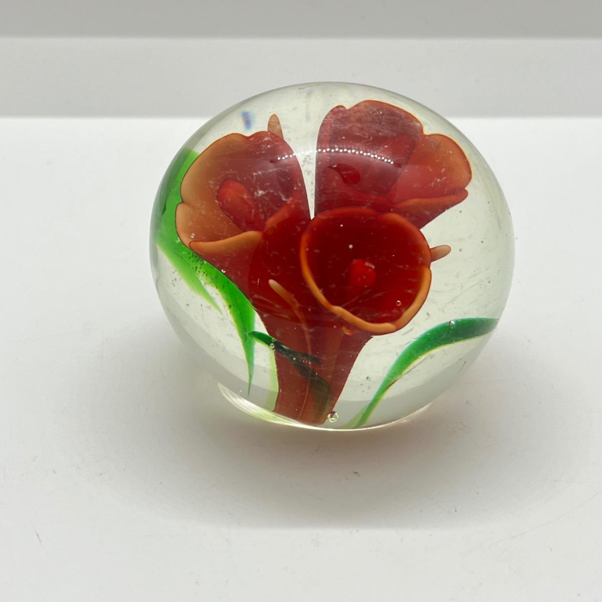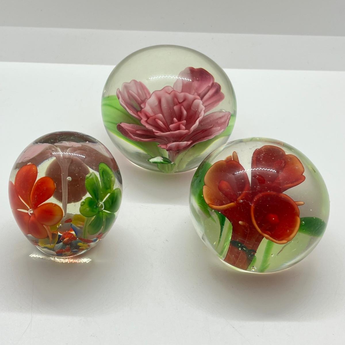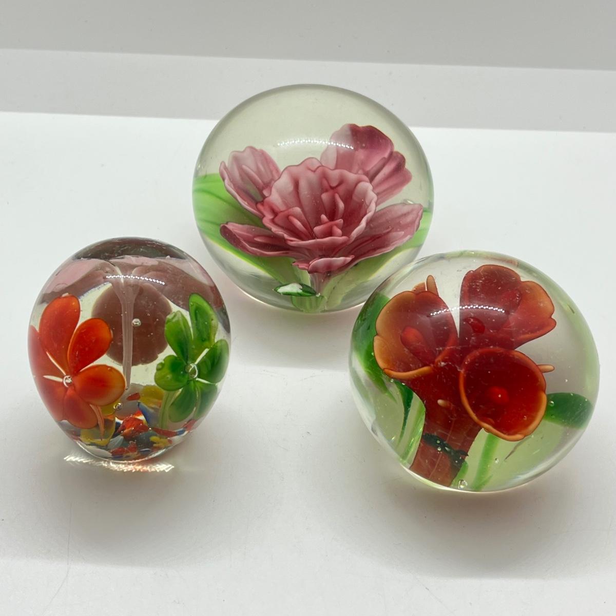 LOT 26K: Three Floral Glass Paperweights