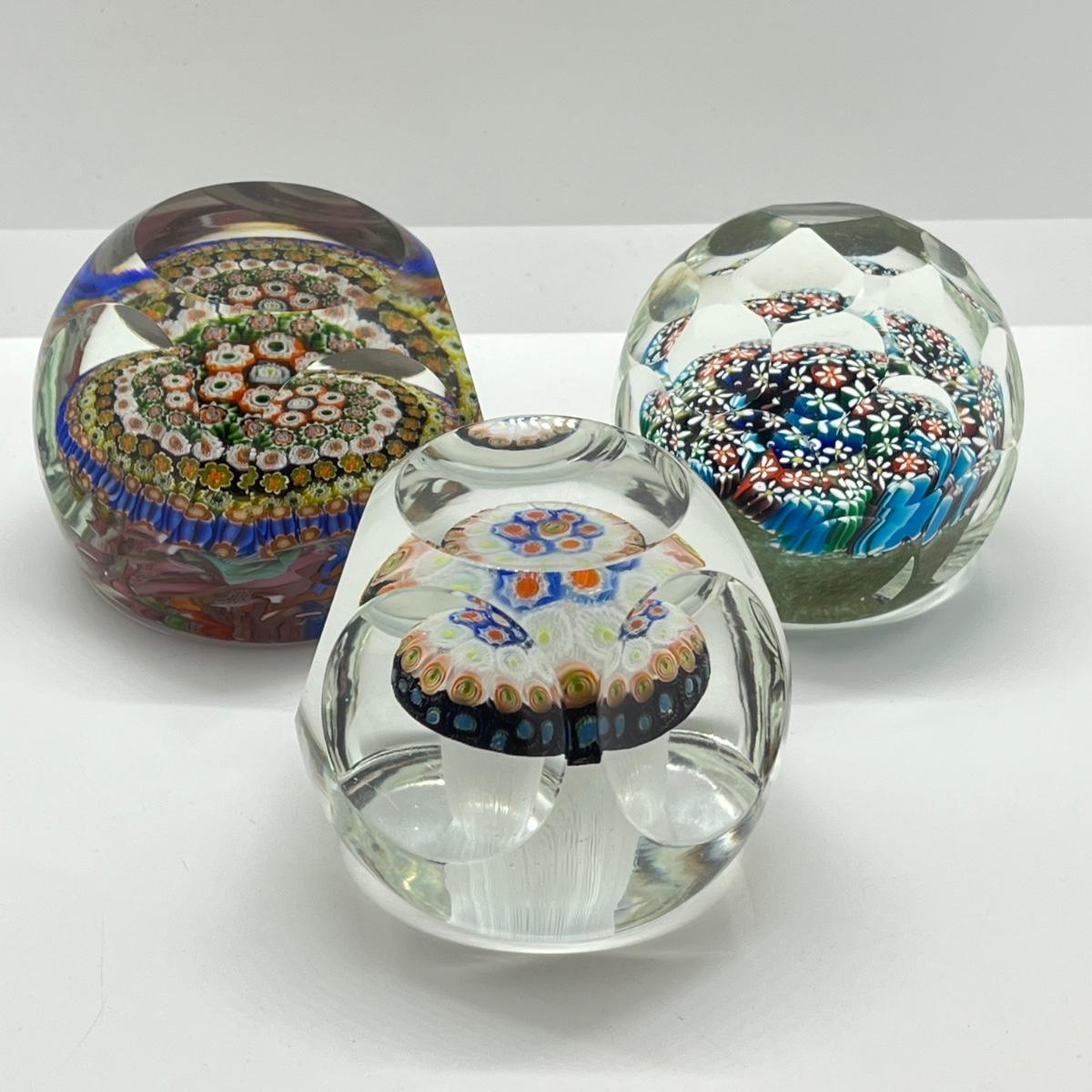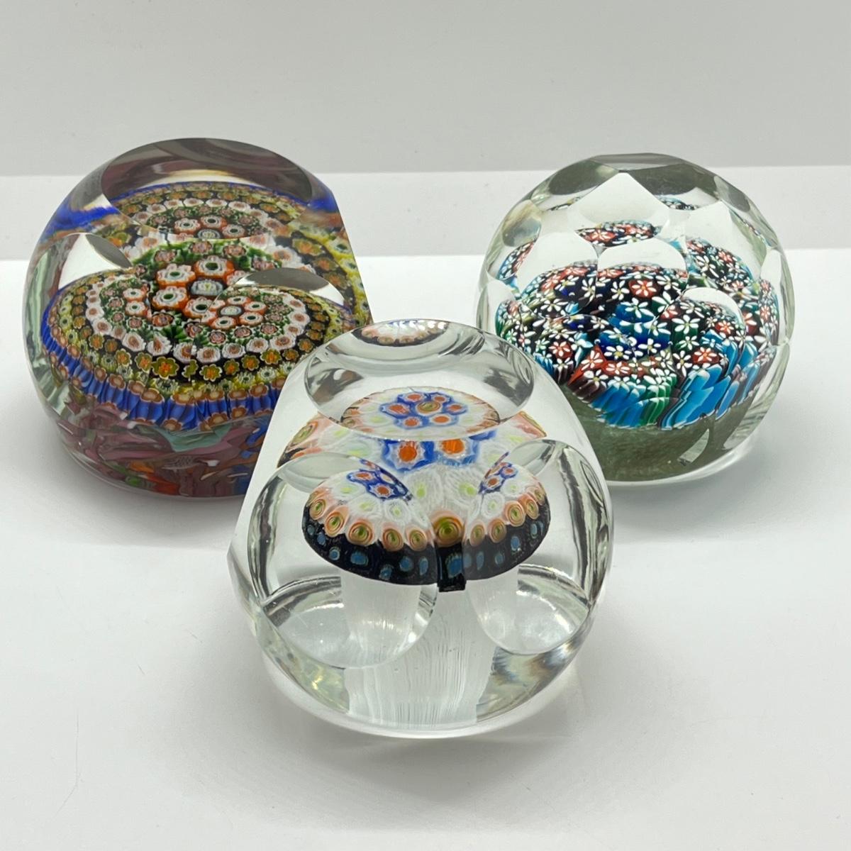 LOT 29K: Three Handblown Glass Millefiori Paperweights