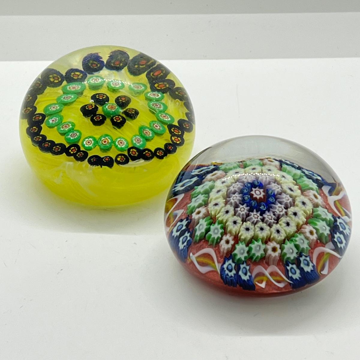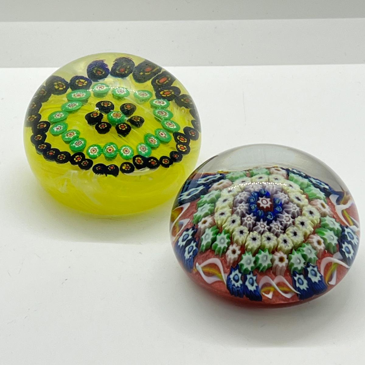 LOT 38K: Two Vintage Millefiori Handblown Glass Paperweights
