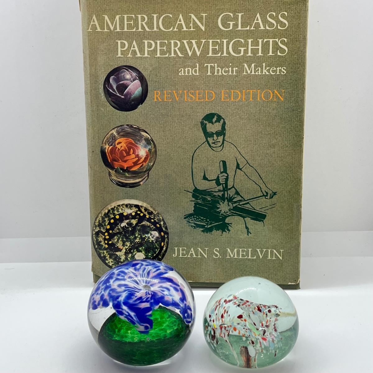 LOT 40K: Vintage American Glass Paperweights Book and Two Paperweights