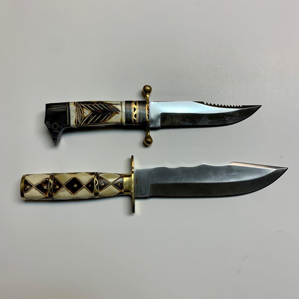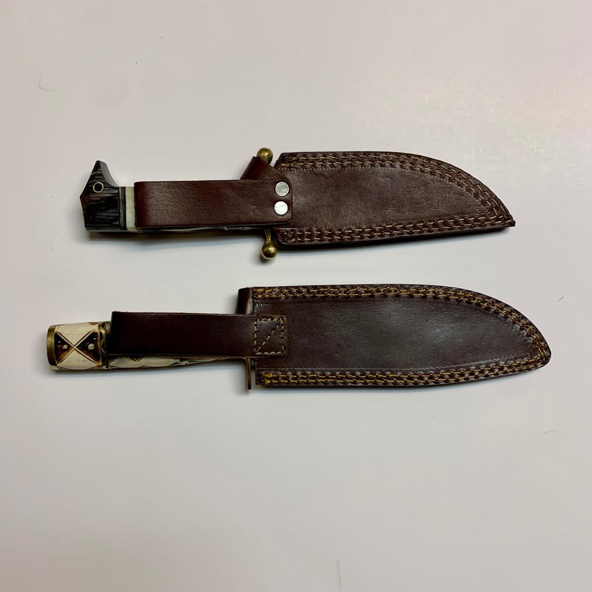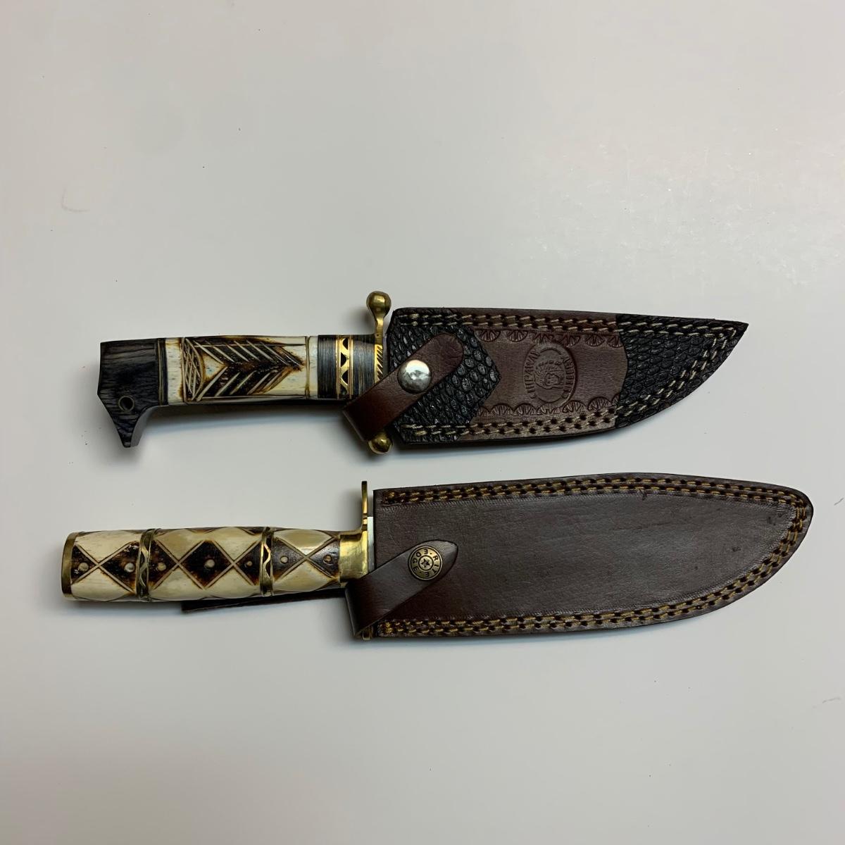 LOT 42 B: Decorative Carved Handle Bowie Knives W/ Leather Sheaths