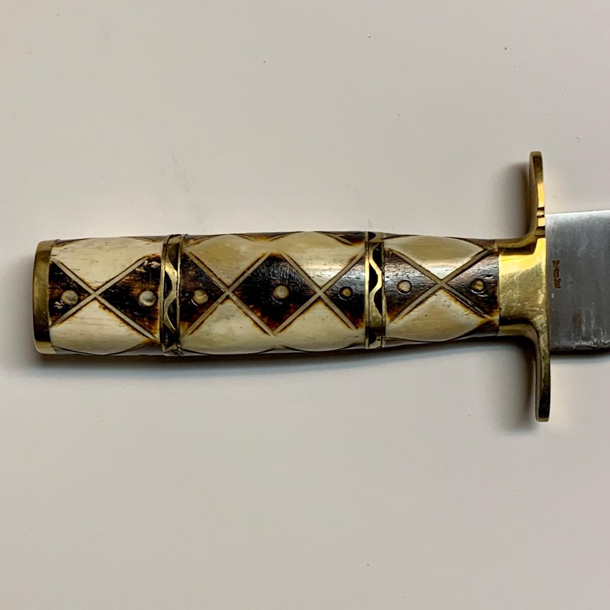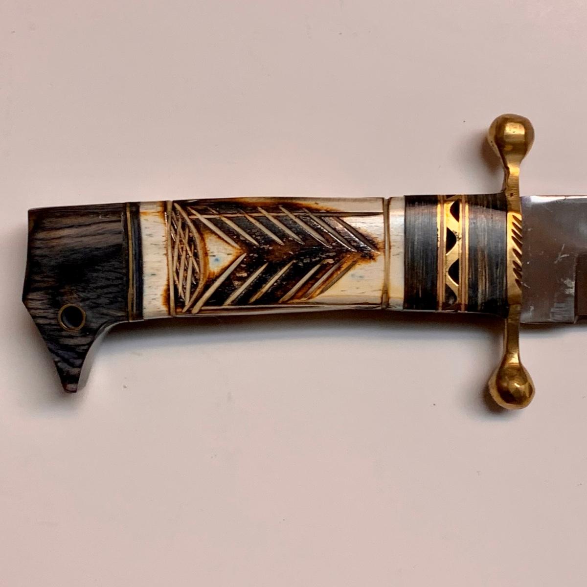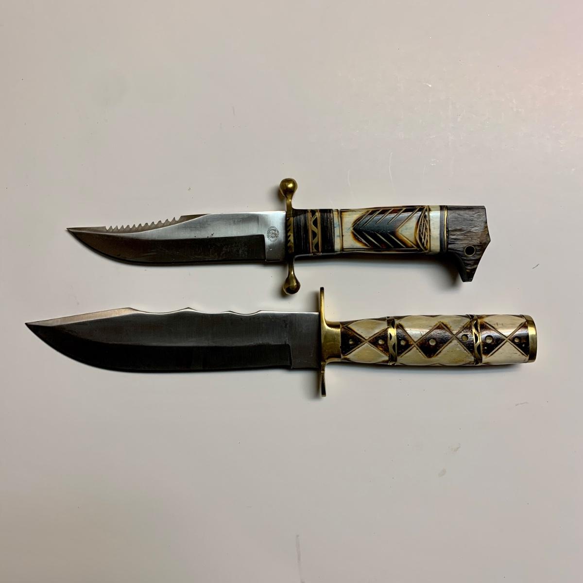 LOT 42 B: Decorative Carved Handle Bowie Knives W/ Leather Sheaths