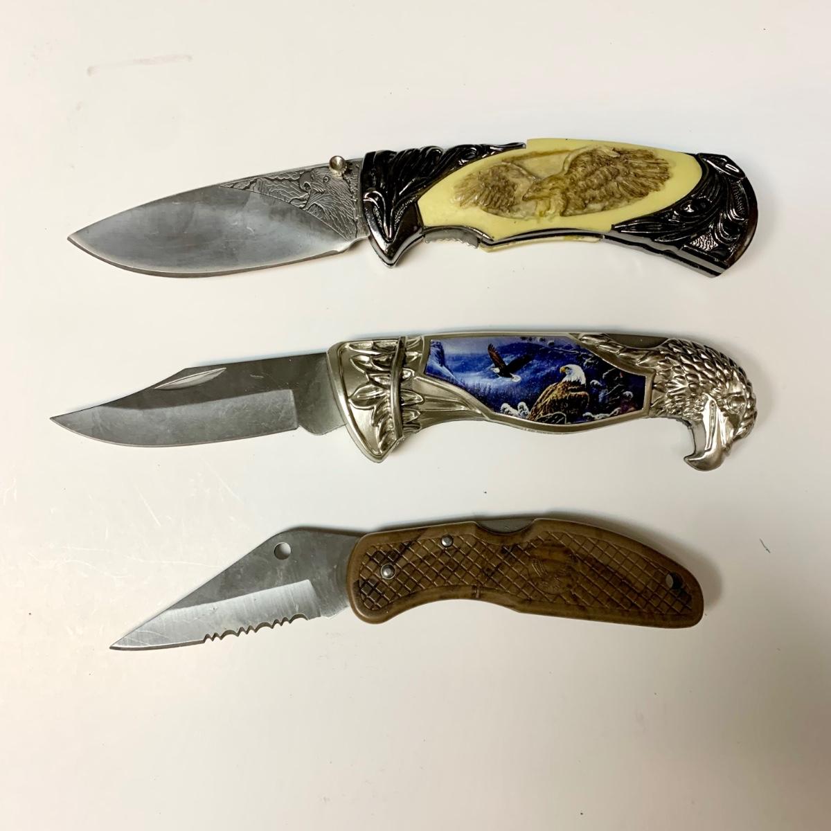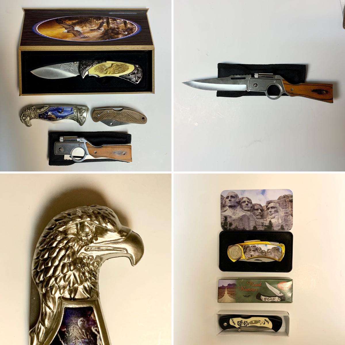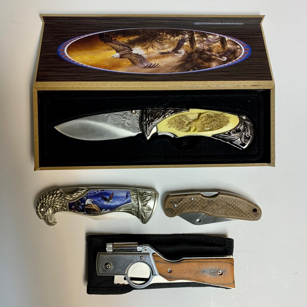 LOT 44 B: Eagle, Shotgun, Wolf Pocket Knives & More