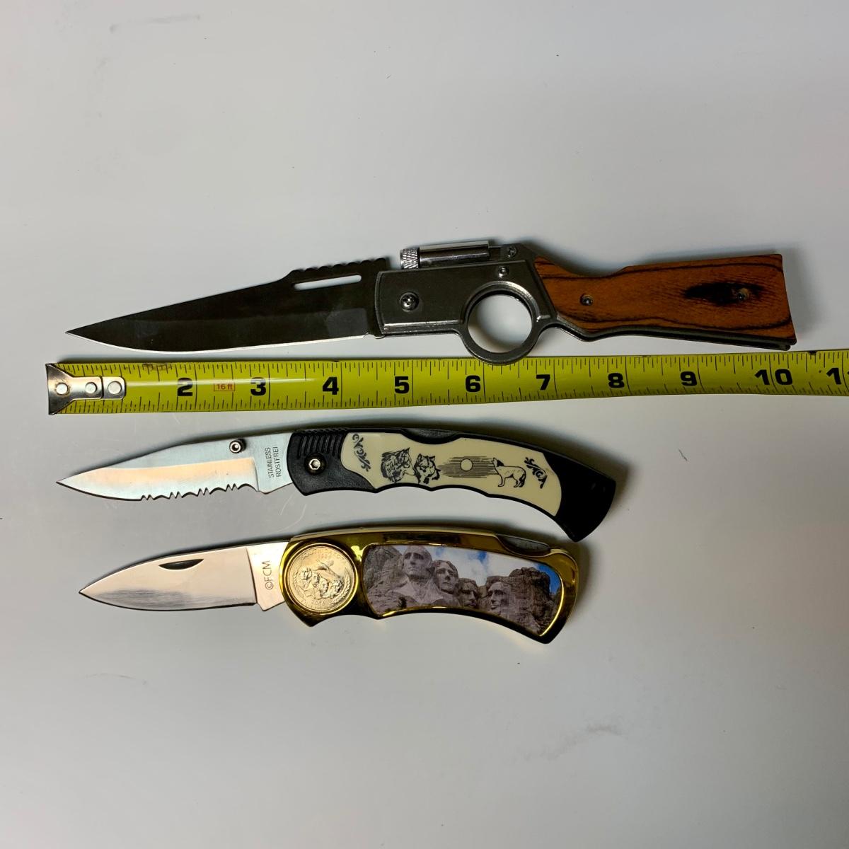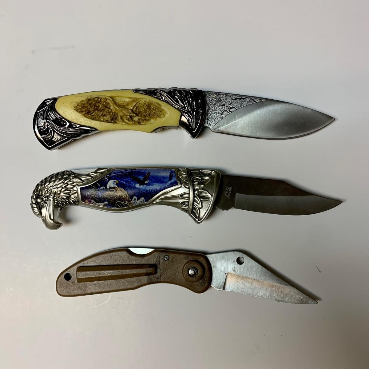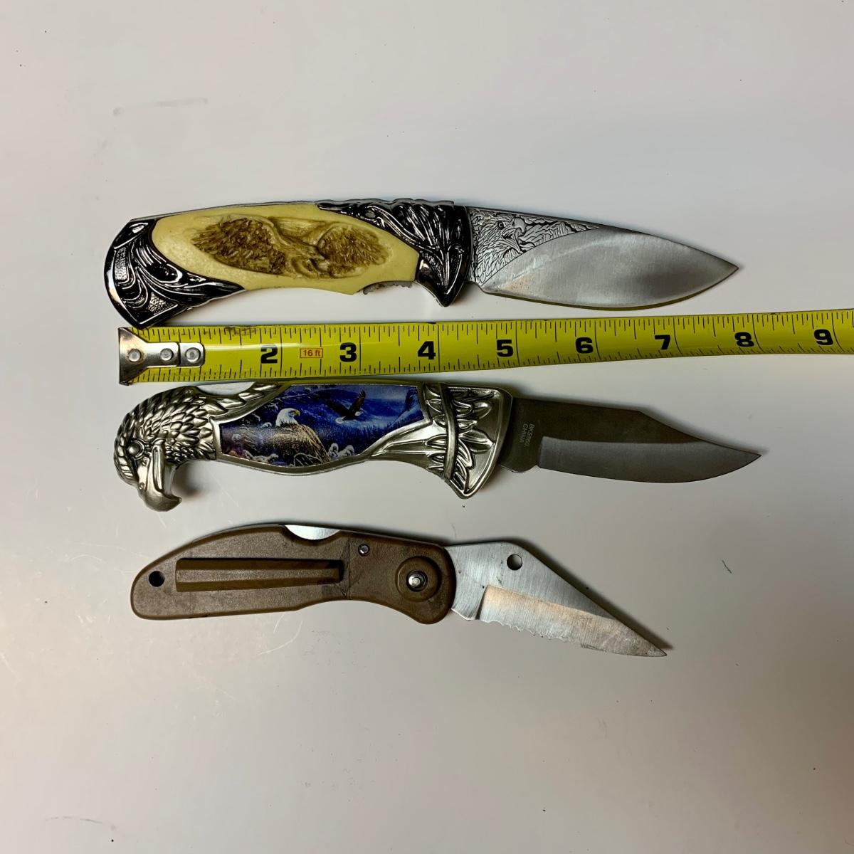 LOT 44 B: Eagle, Shotgun, Wolf Pocket Knives & More