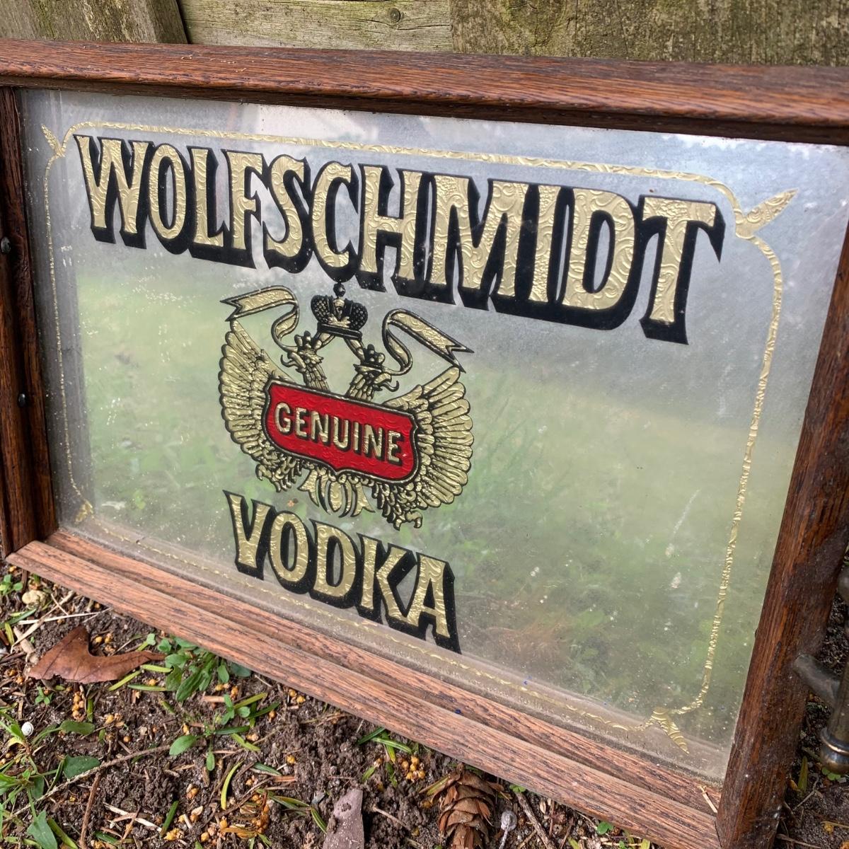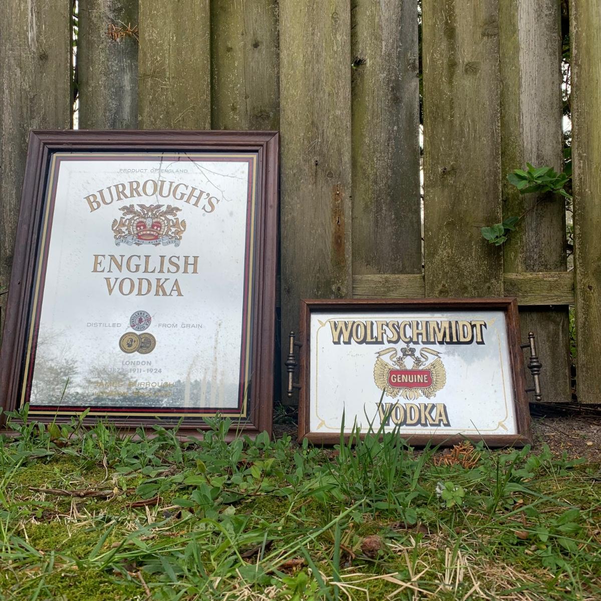 LOT 49 B: Burrough's English Vodka Mirrored Bar Sign & Wolfschmidt Vodka Mirrored Tray