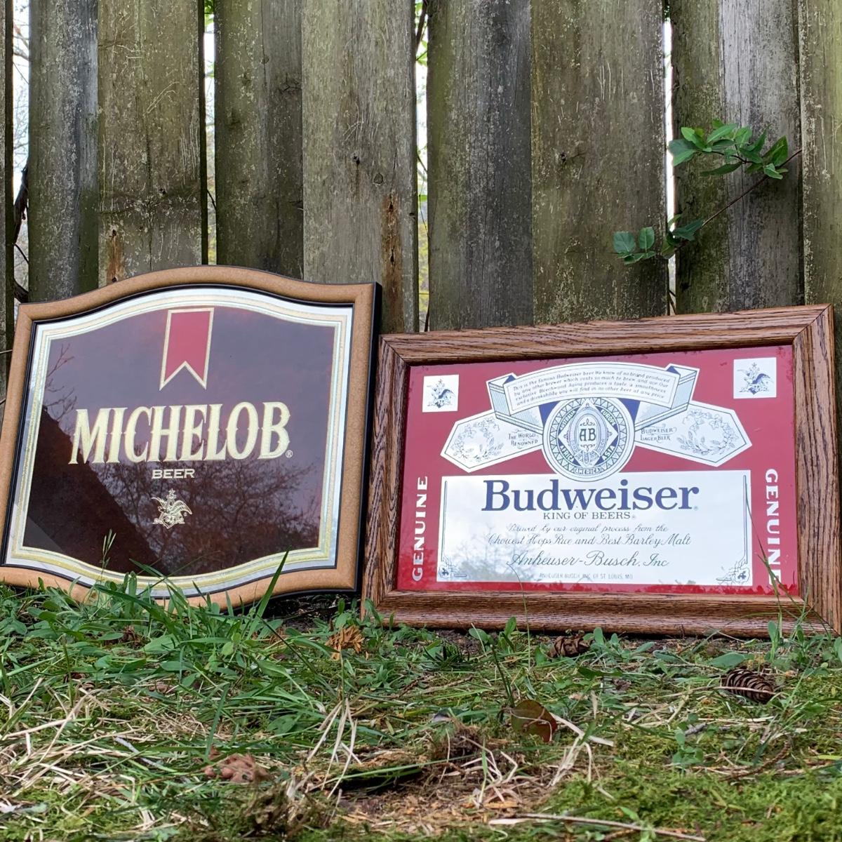 LOT 56 K: Michelob & Budweiser Mirrored Bar Signs