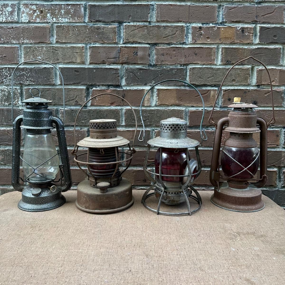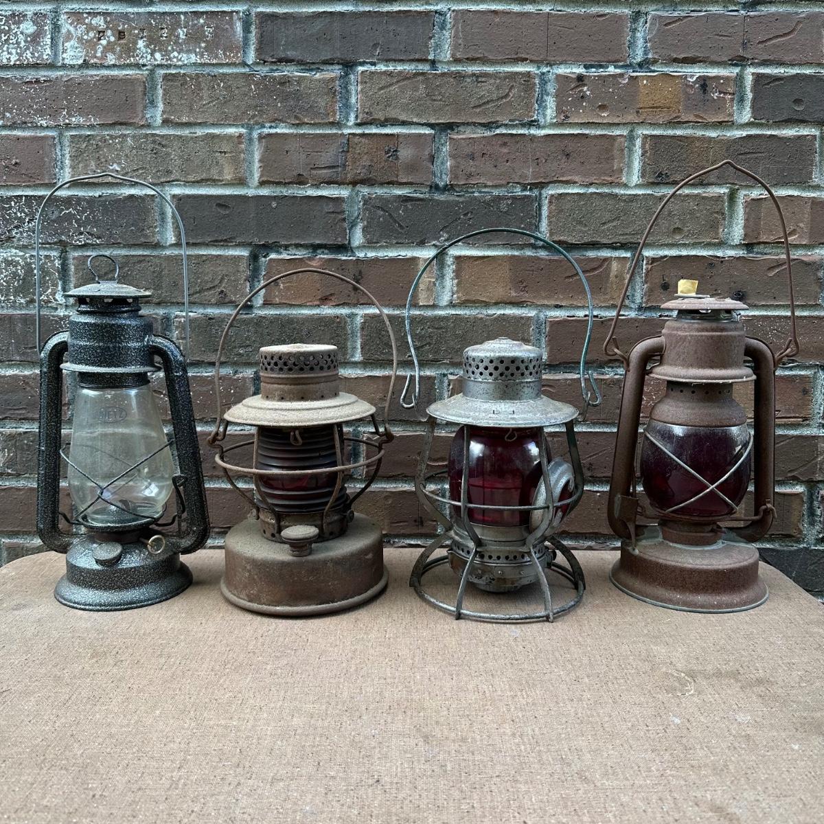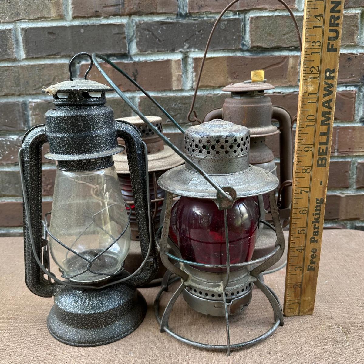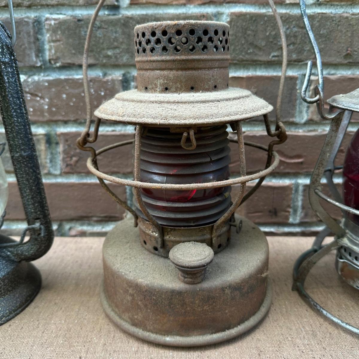 LOT 70P: Vintage Pennsylvania Railroad Red Glass Lanterns & Clear Glass Dietz Lantern