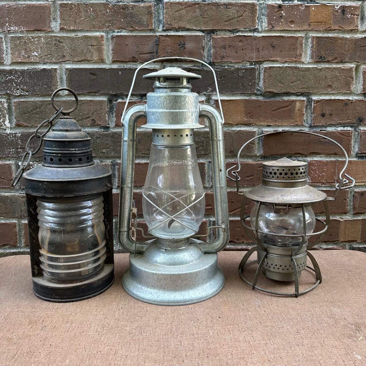 LOT 71P: Vintage Dressel W.T. Kirkman Champion Clear Glass Lantern, Dressel Lantern & More