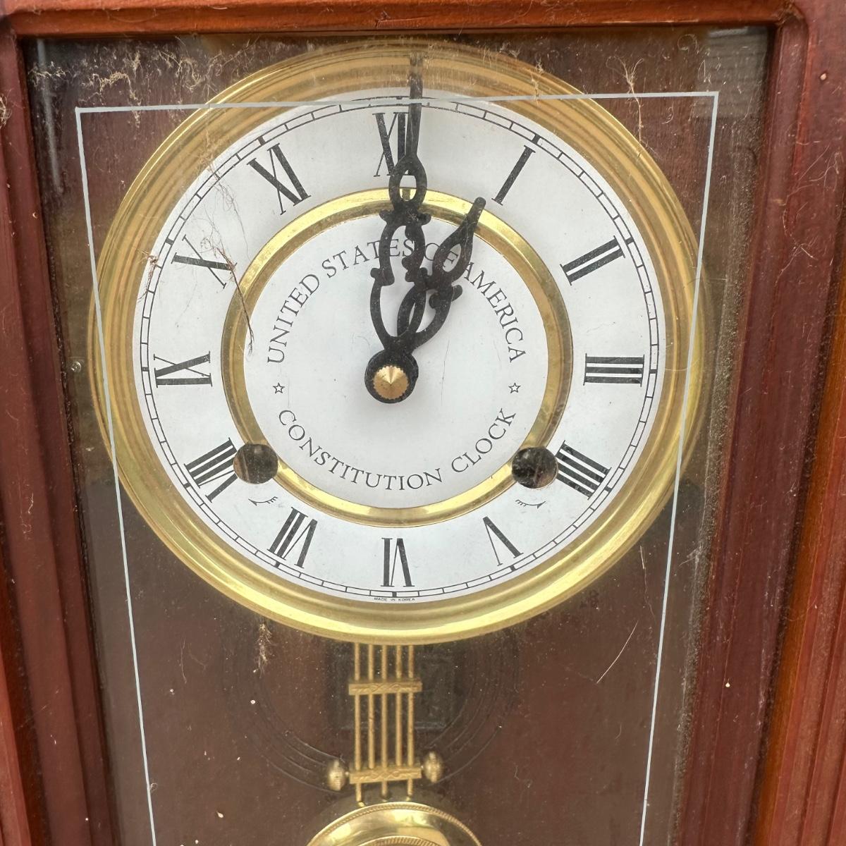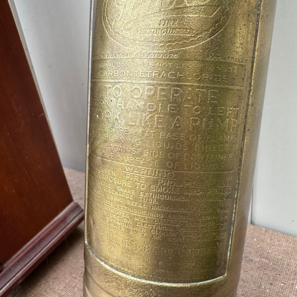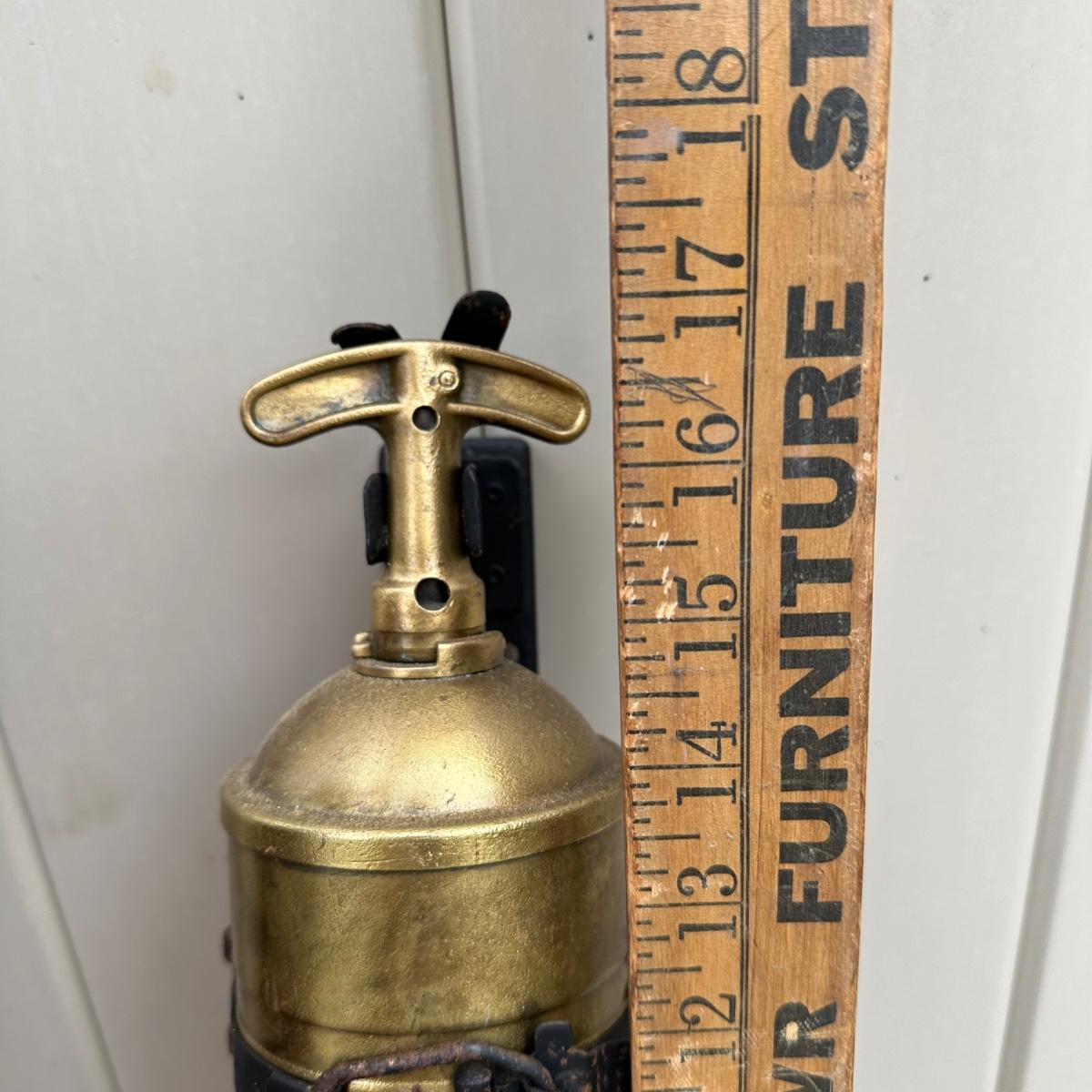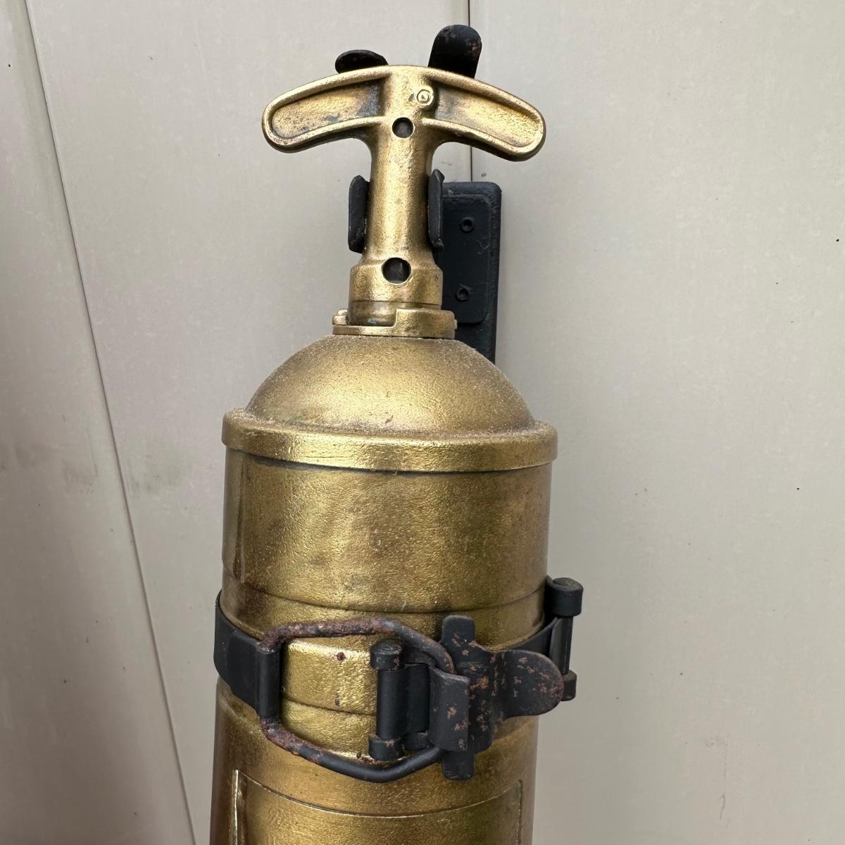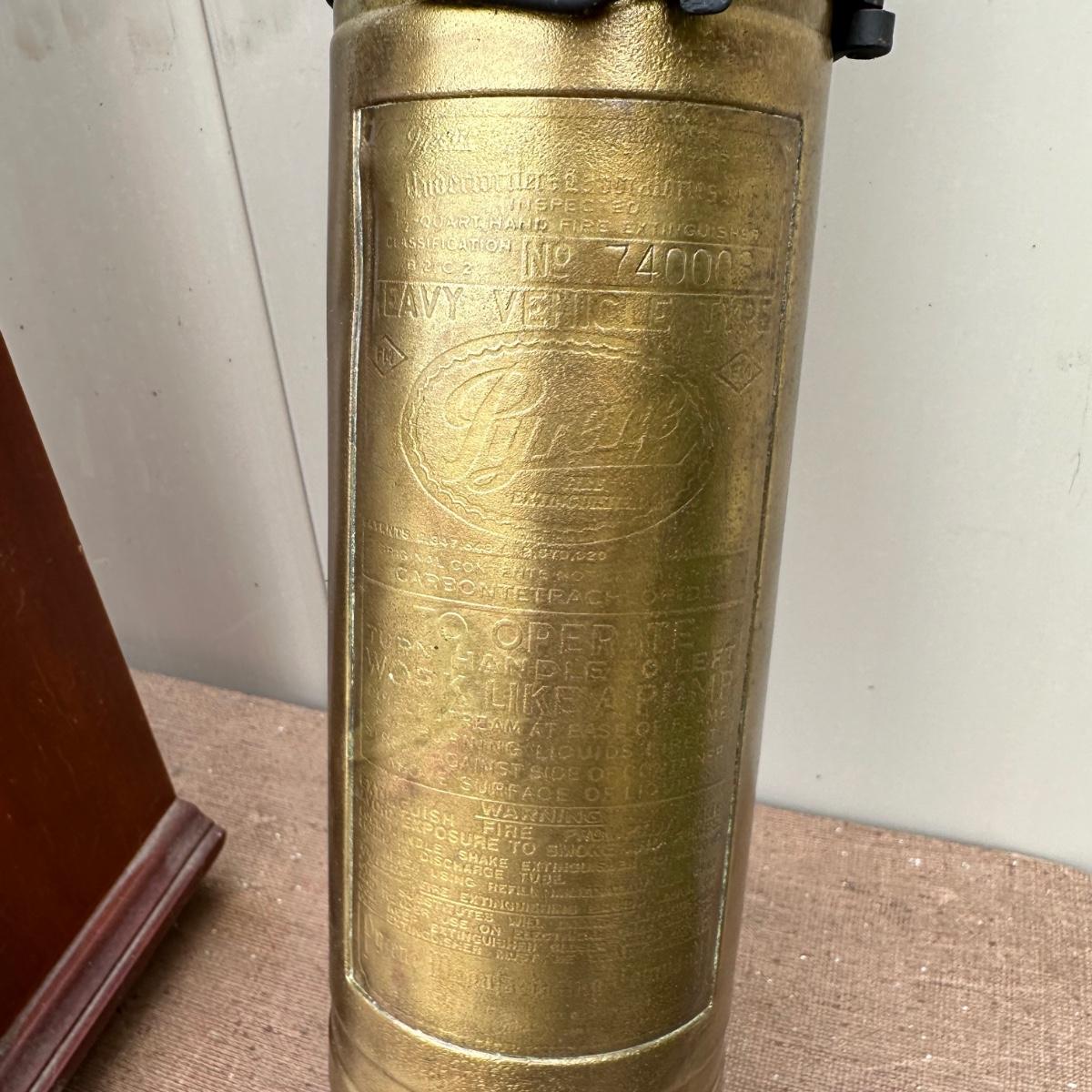 LOT 77P: Vintage Pyrene Heavy Vehicle Fire Extinguisher w/ Hanging Mount, Constitution Clock & Bell