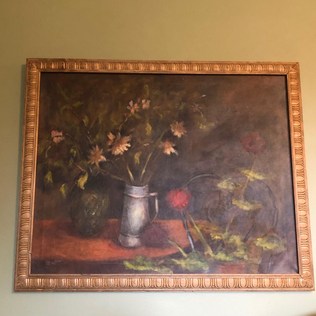 LOT 84L: Signed & Framed Local Millville Artist Patt Witt Flower Bouquet Painting