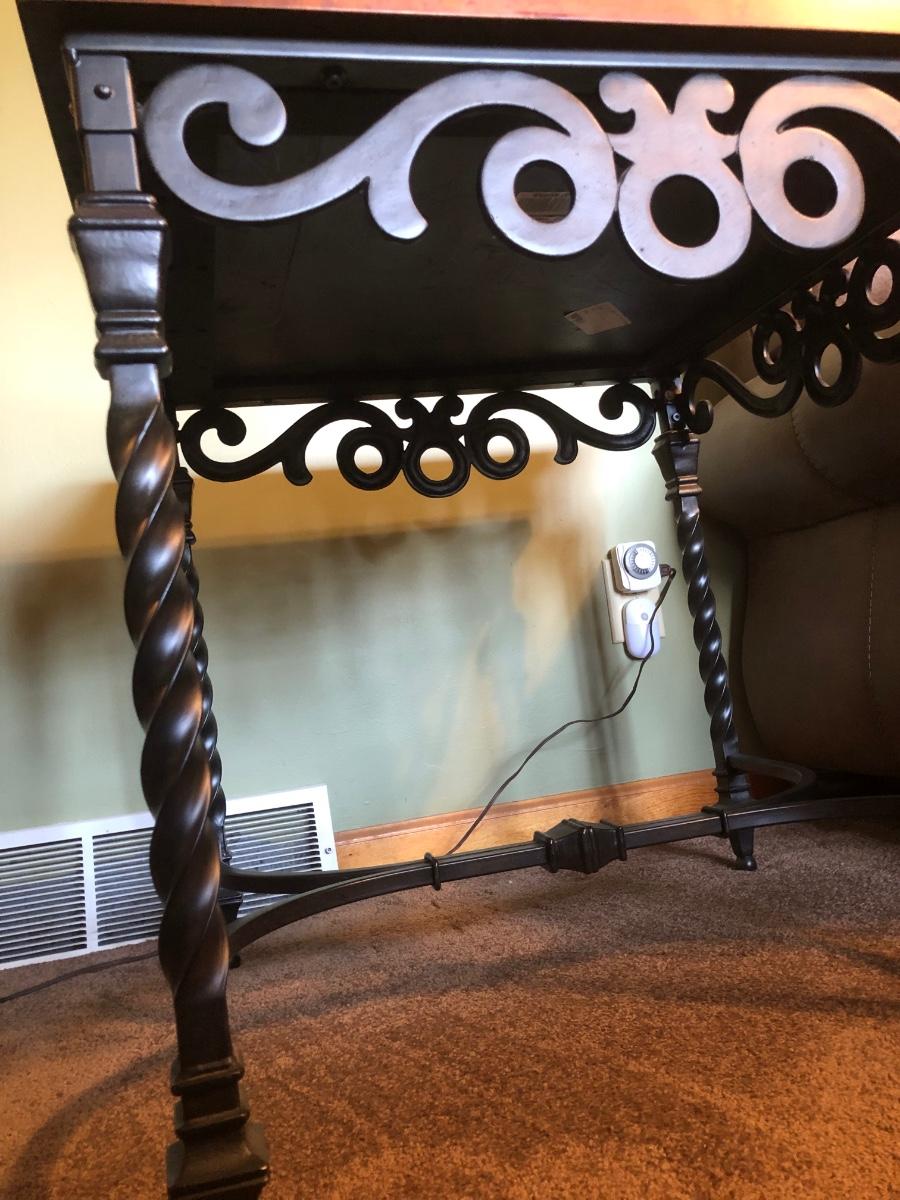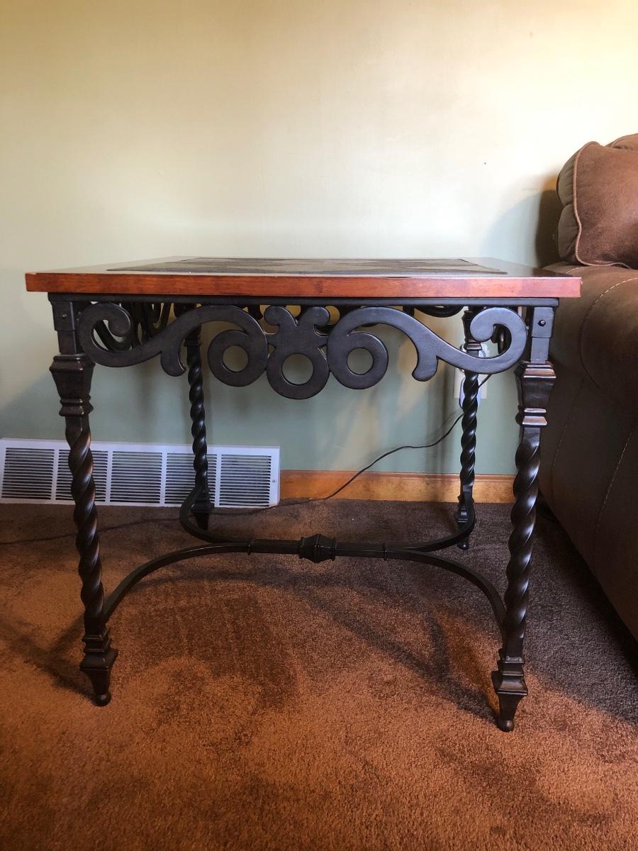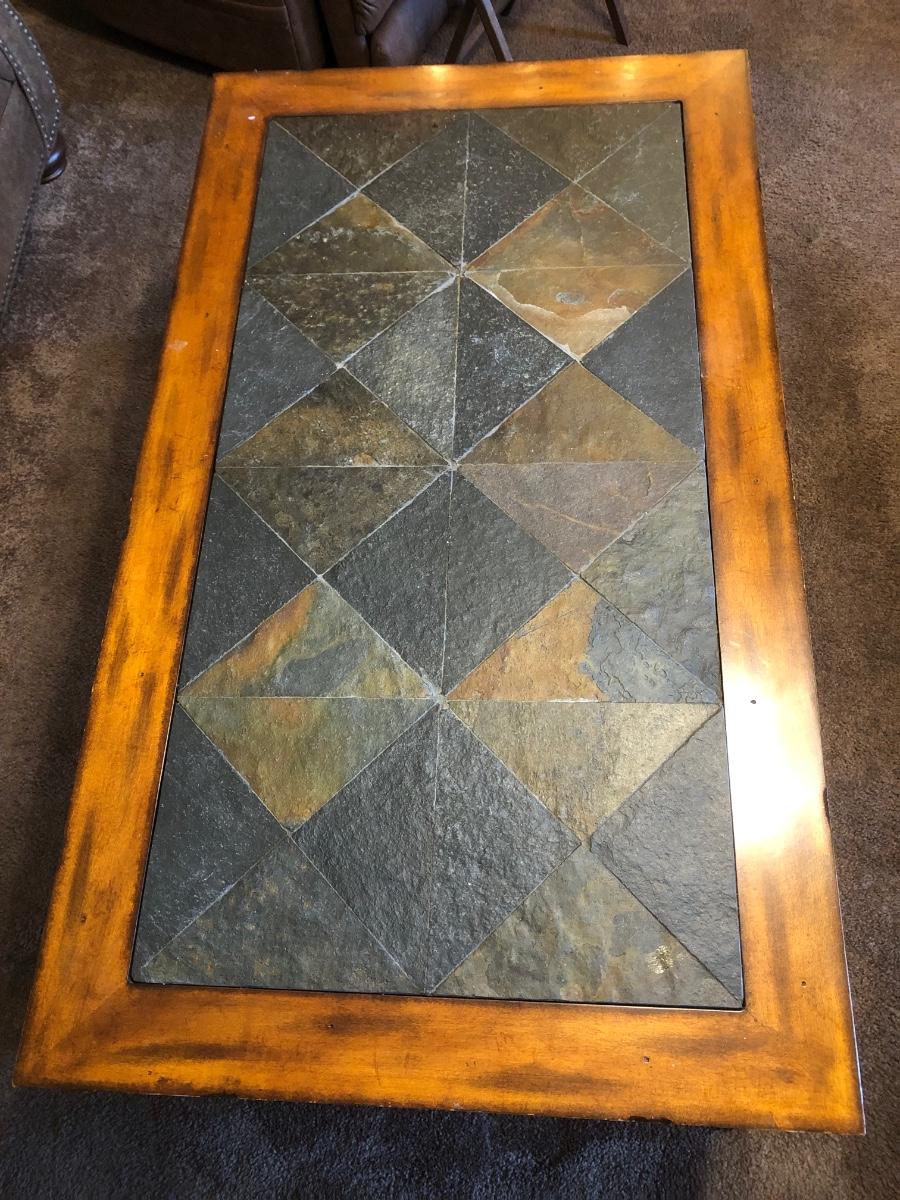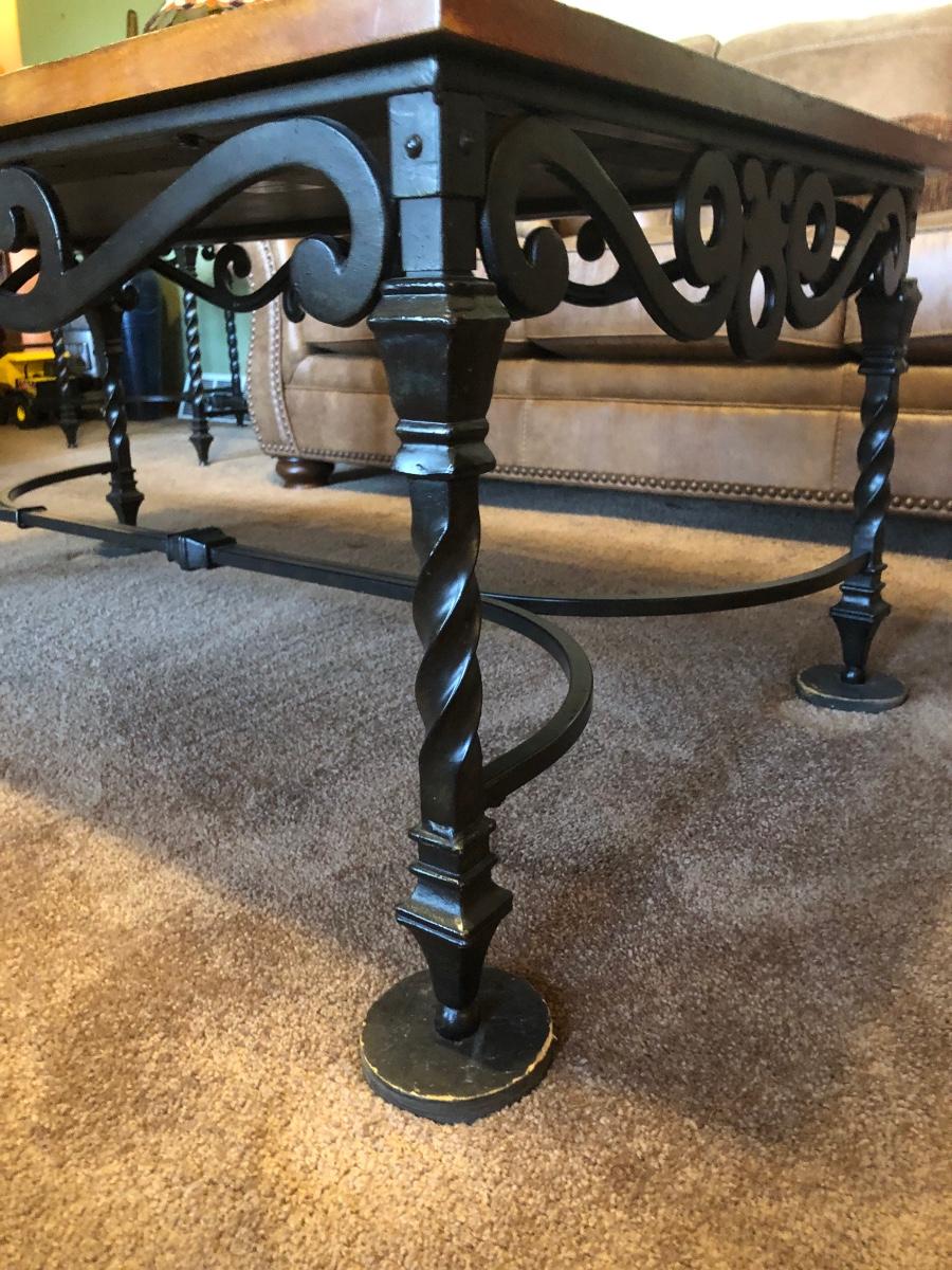 LOT 87L: Rectangular Iron Base Wood Slate Inlay Coffee Table & End Table