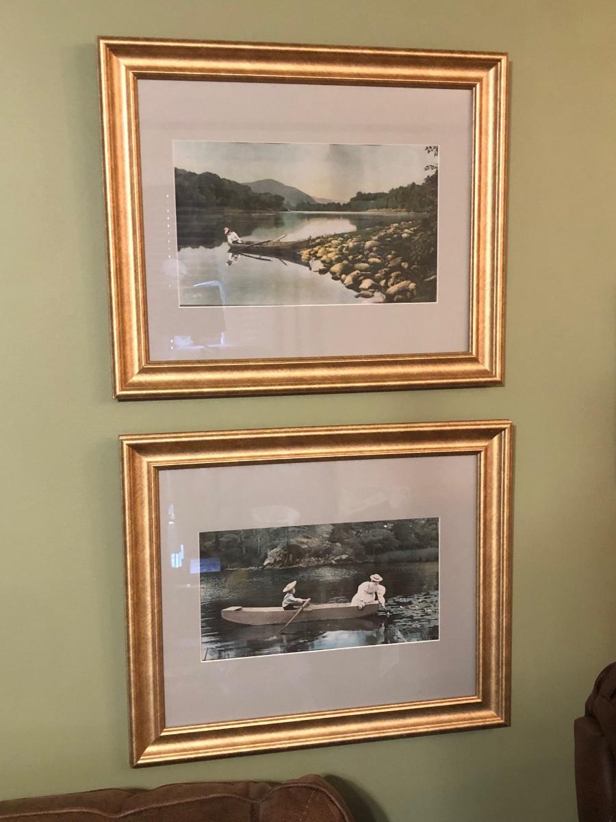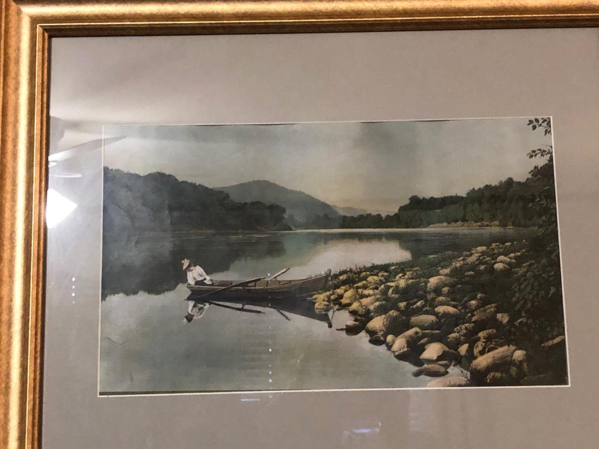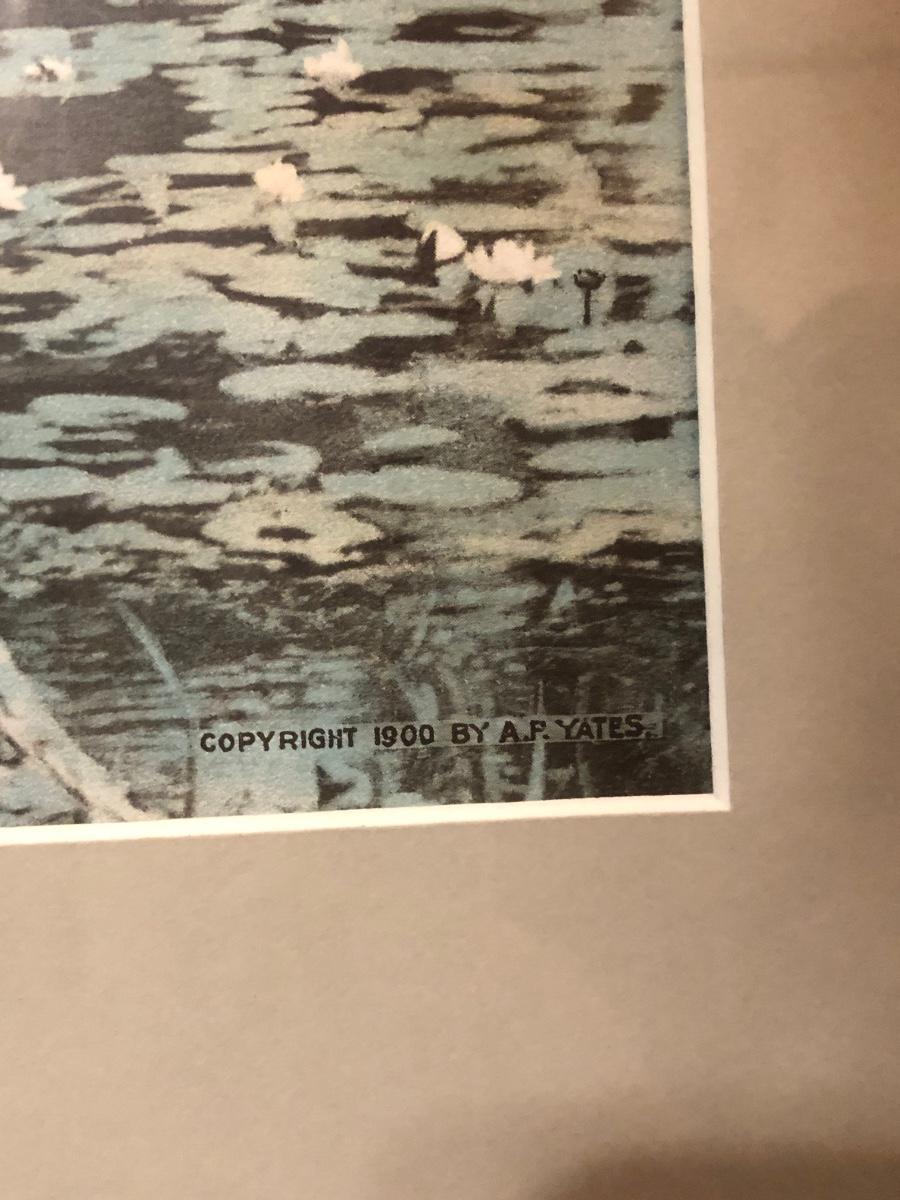 LOT 92L: Vintage 1900 AP Yates "Water Lillies" Philadelphia Inquirer Colorizied Photo Print & Vintage Delaware River Colorized Photo Print