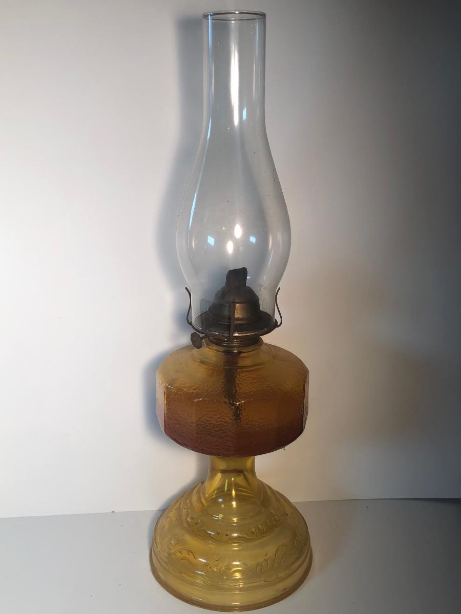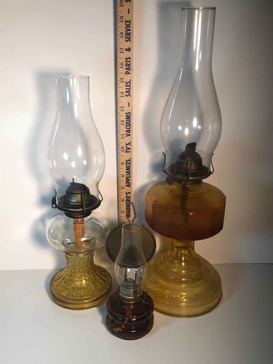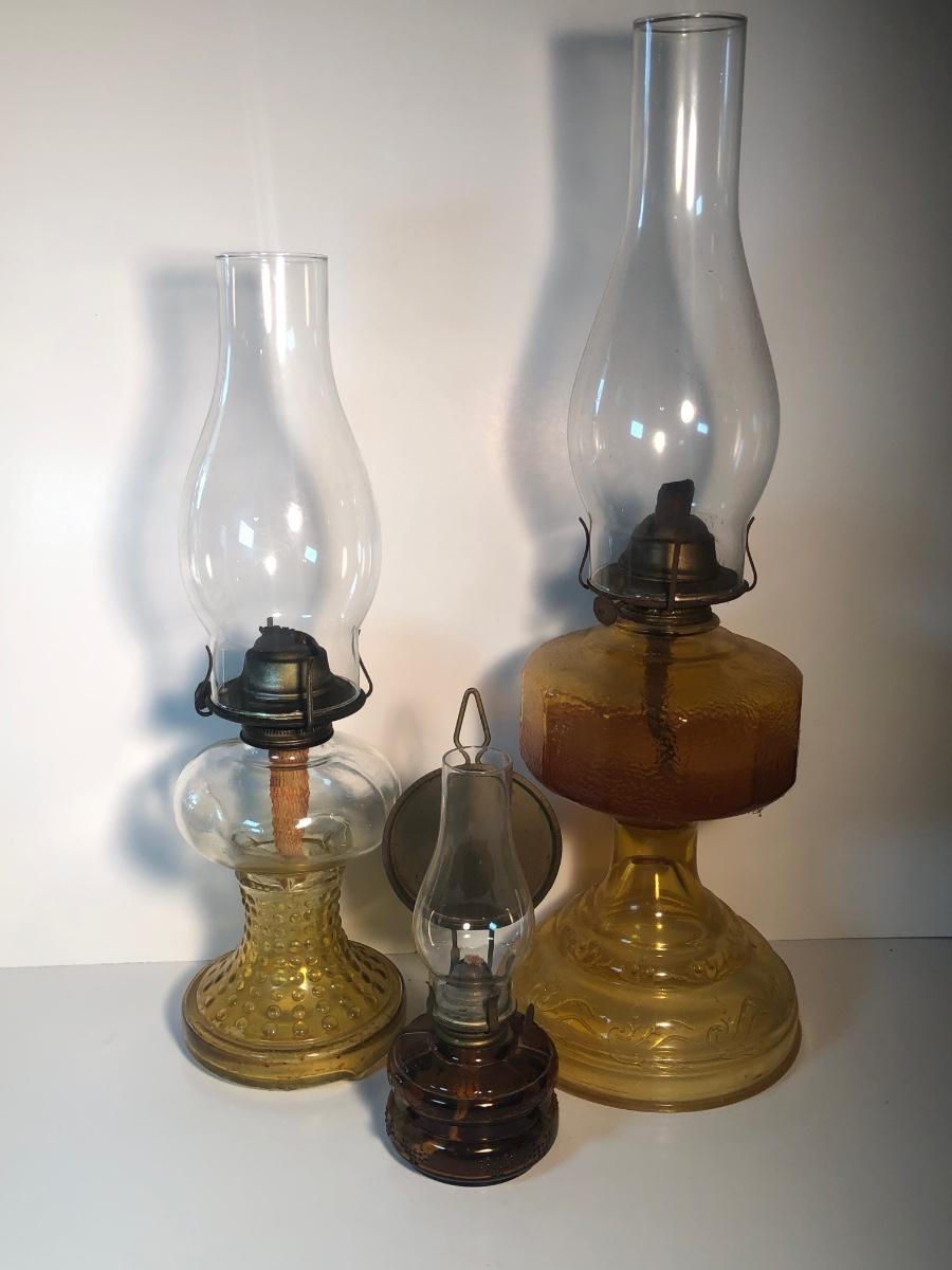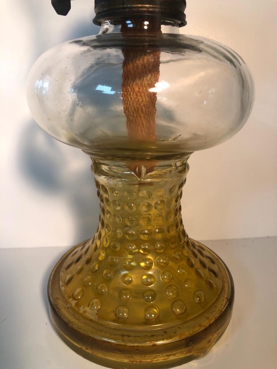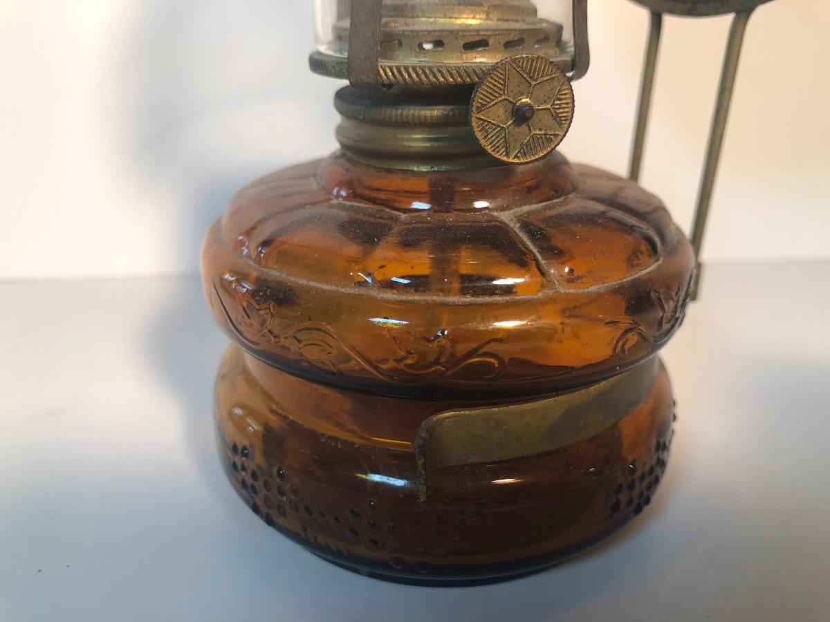 LOT 96L: Vintage Glass Oil Lamps - Amber Glass, Hobnail