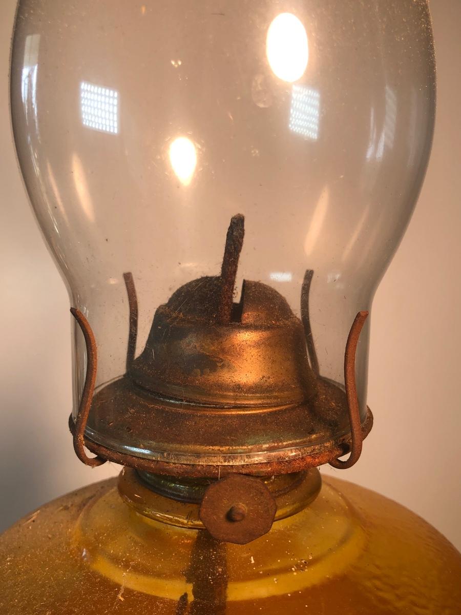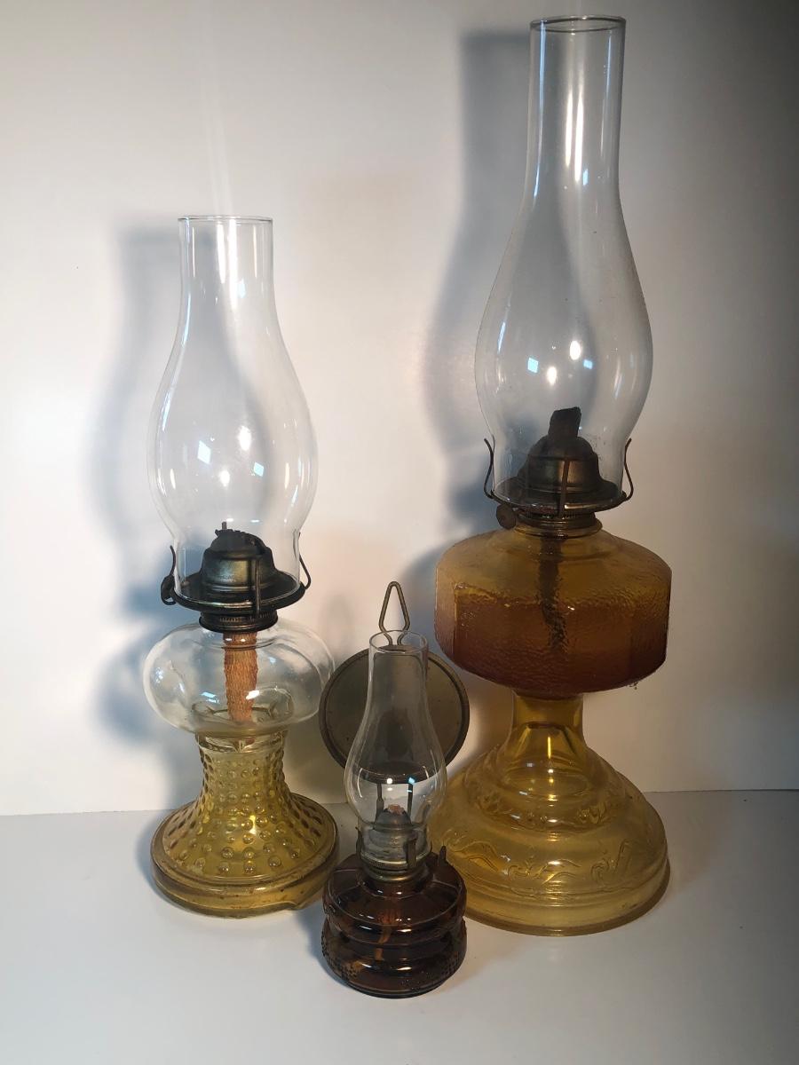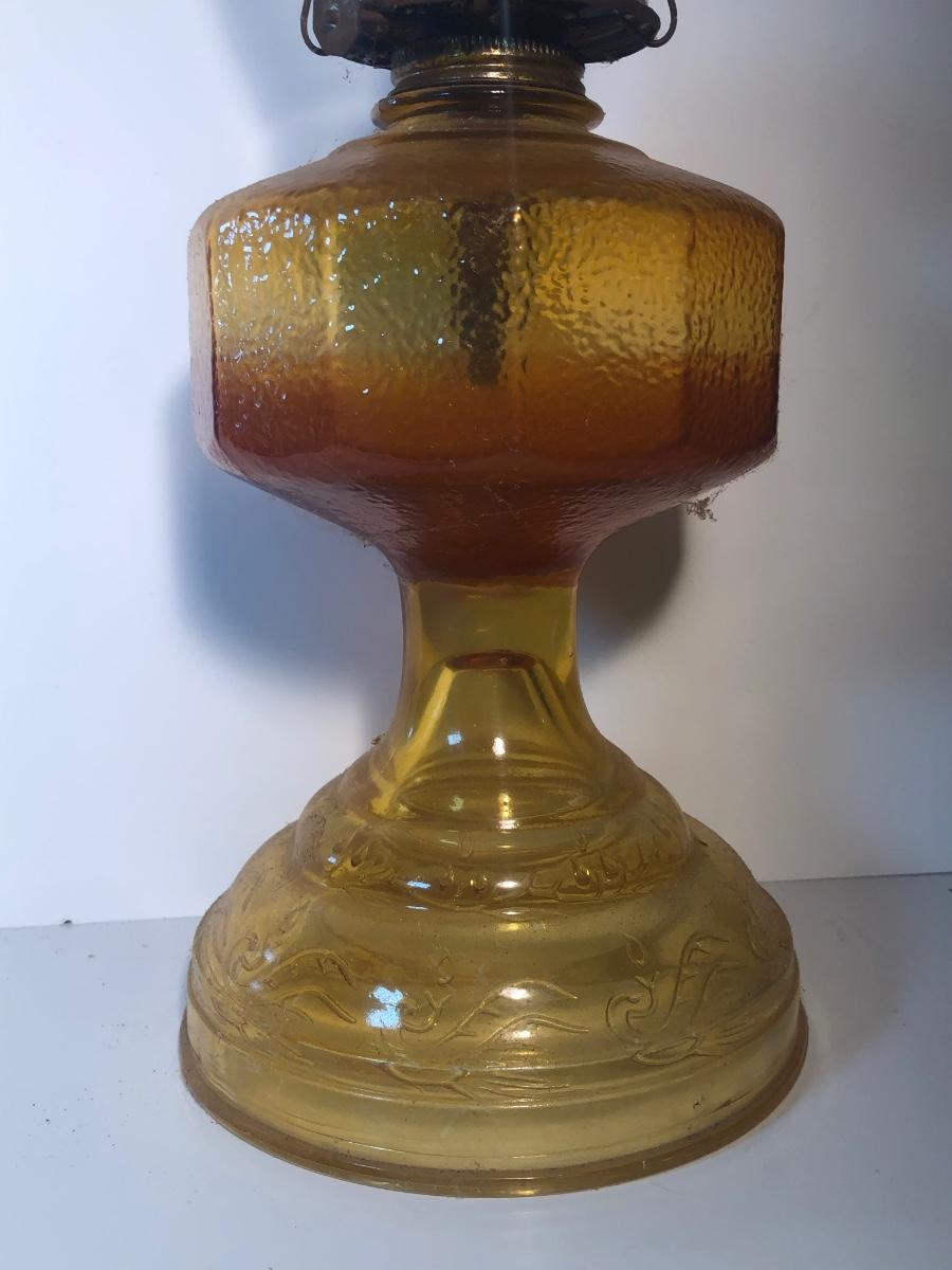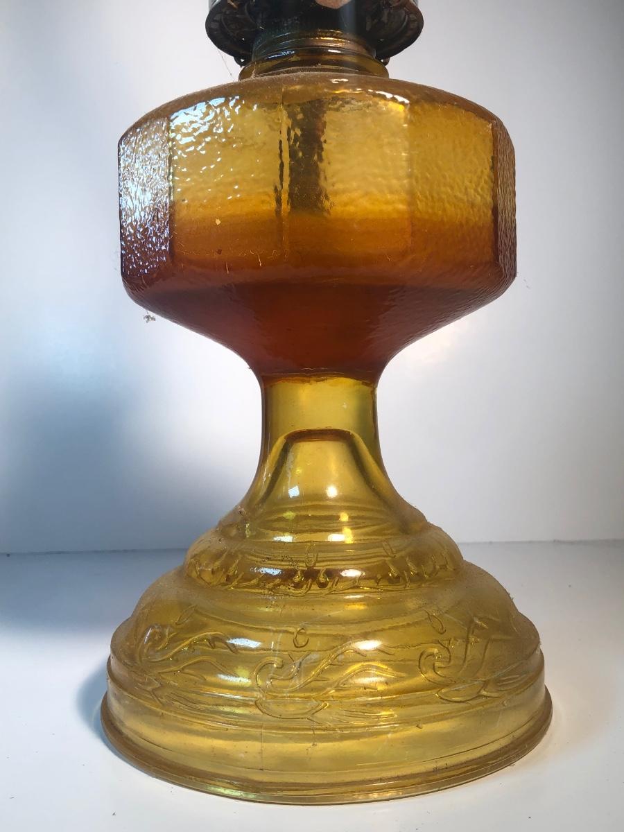 LOT 96L: Vintage Glass Oil Lamps - Amber Glass, Hobnail