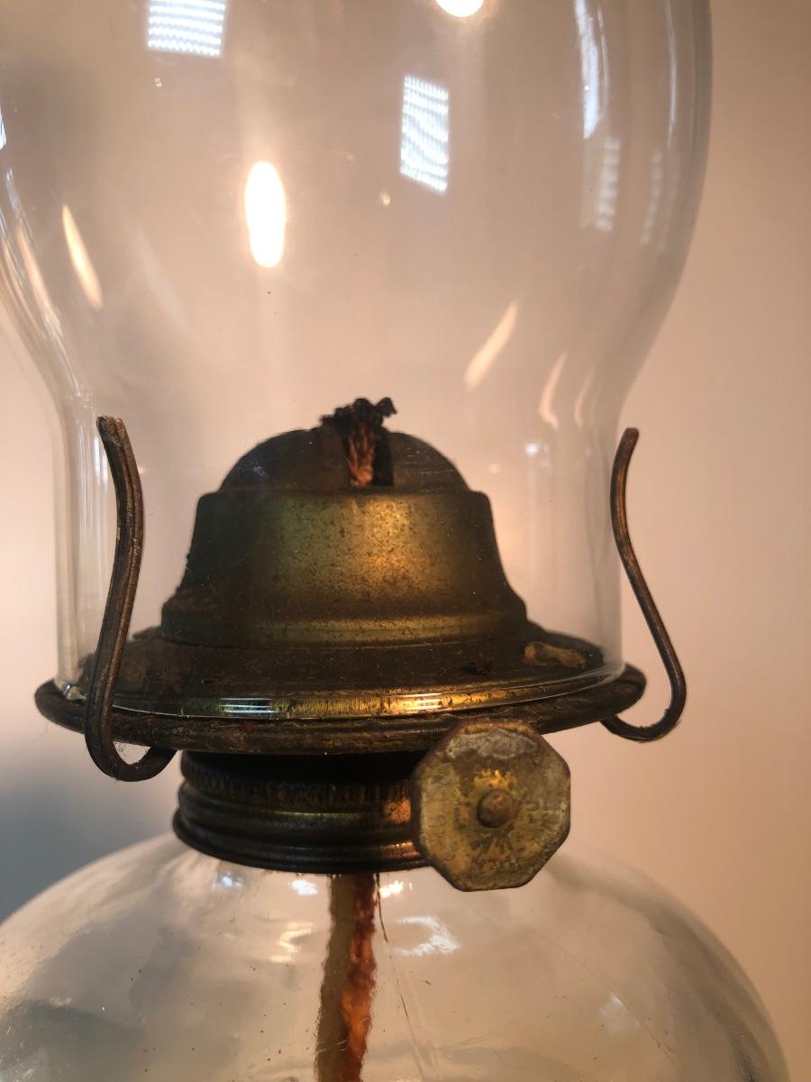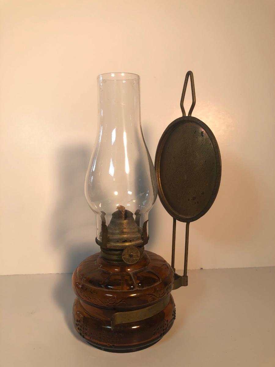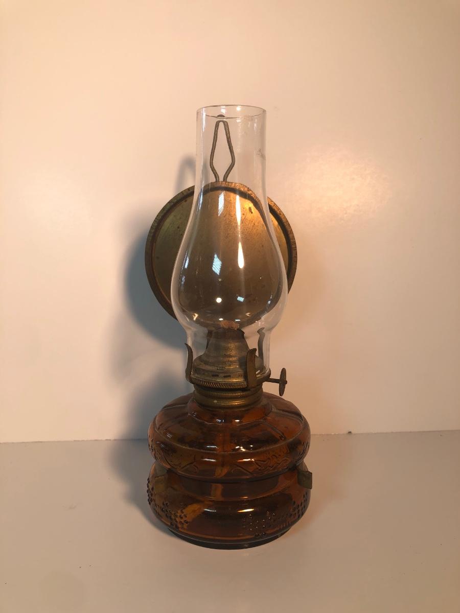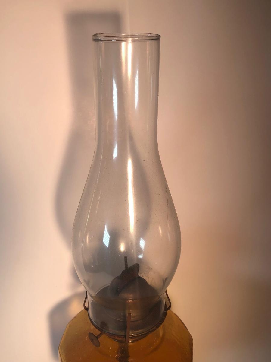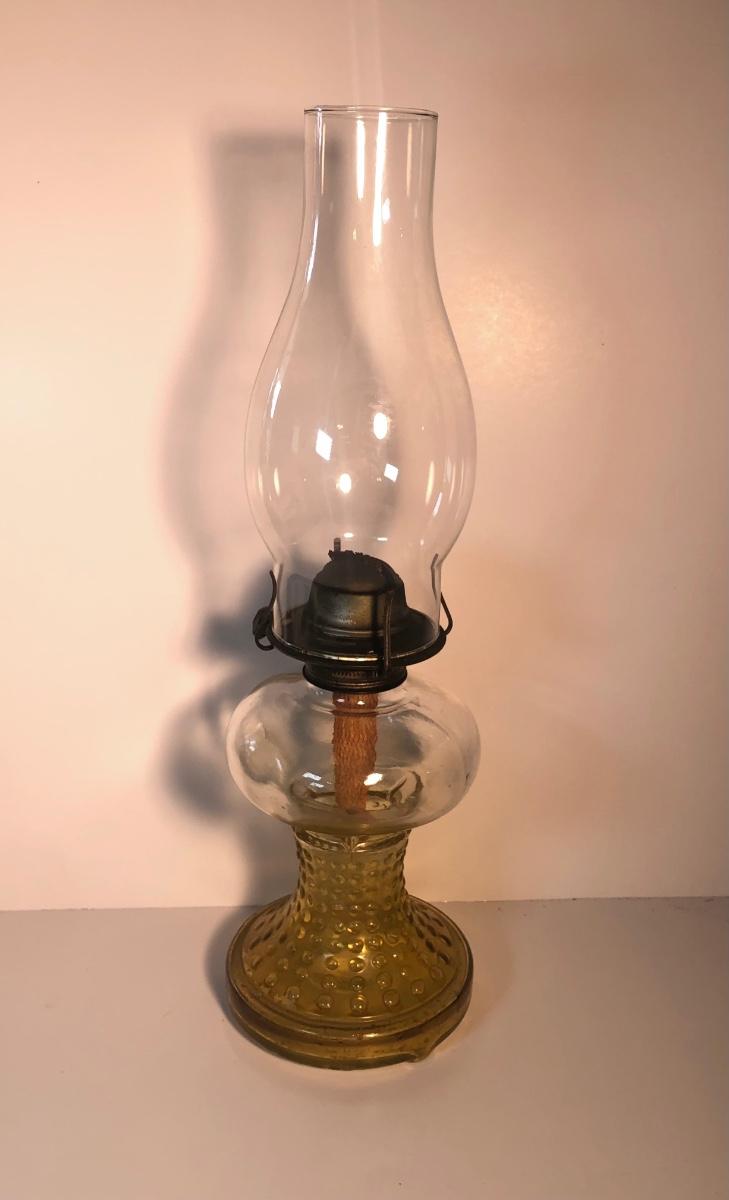 LOT 96L: Vintage Glass Oil Lamps - Amber Glass, Hobnail