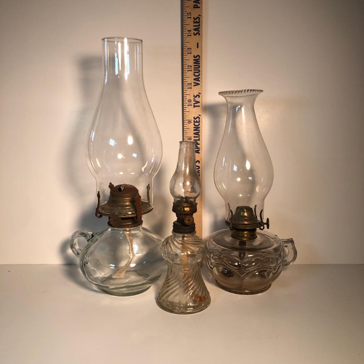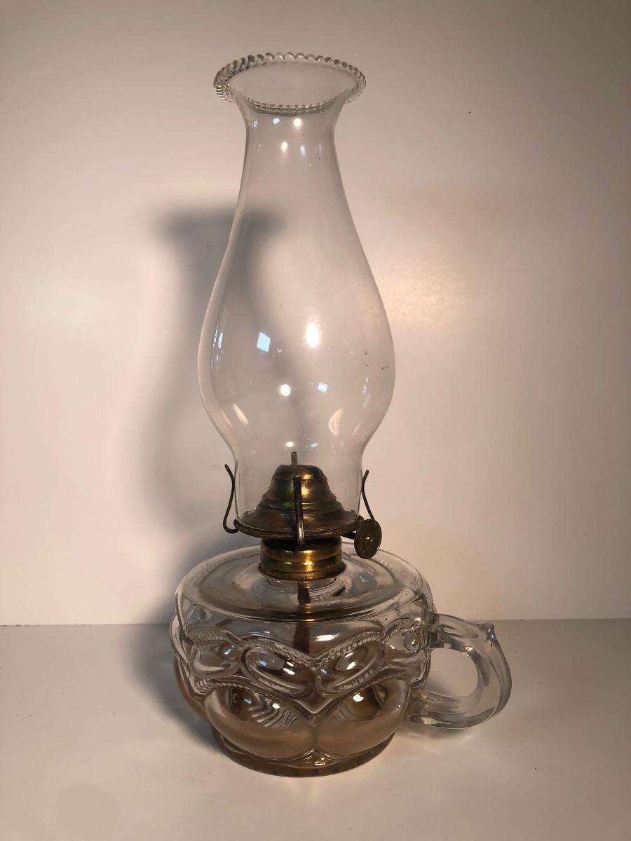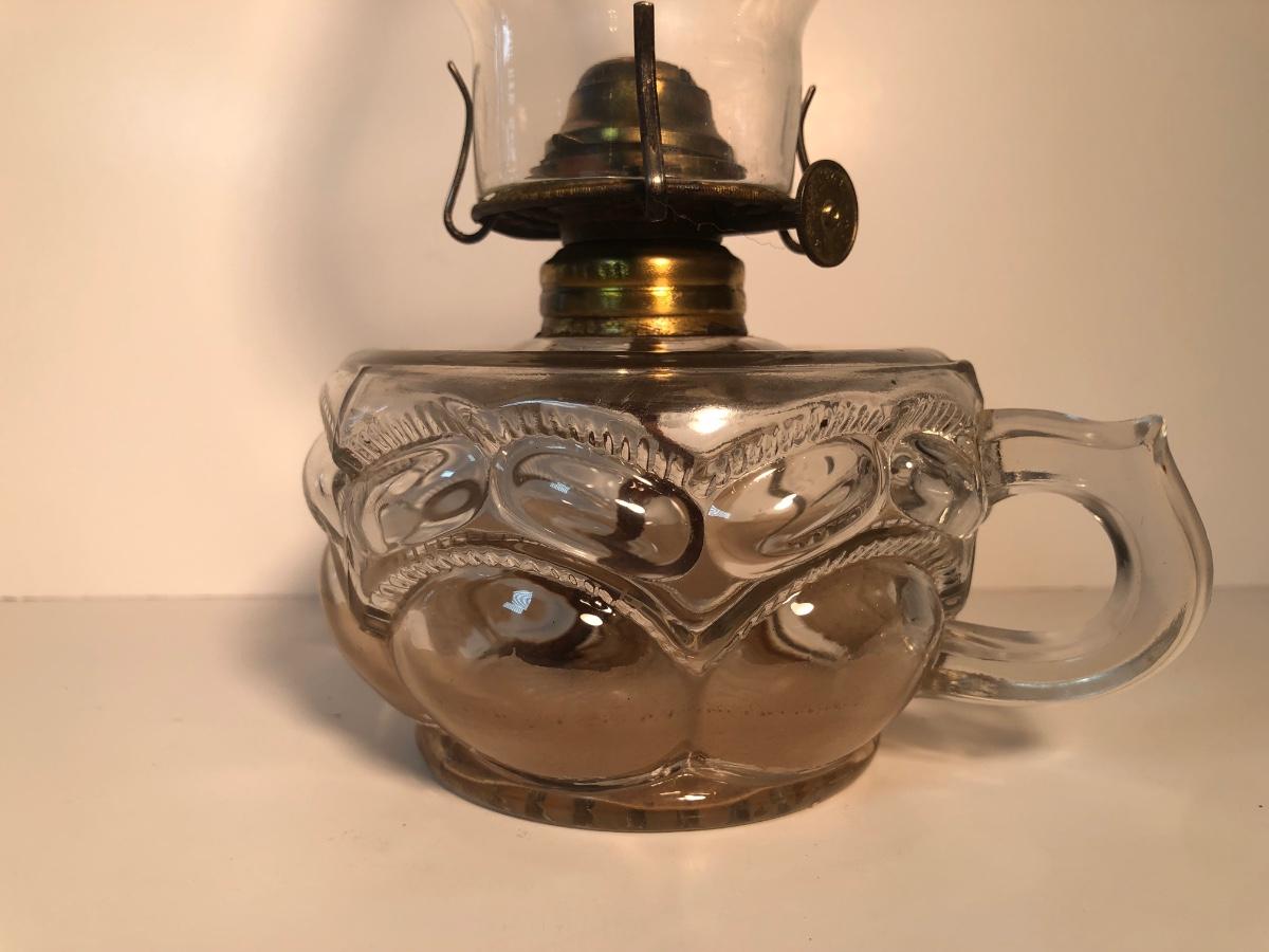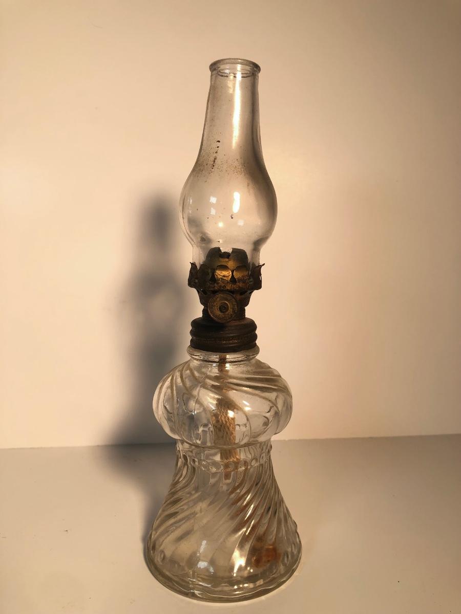 LOT 100L: Vintage Glass Oil Lamps - Miniature Swirl, Eagle