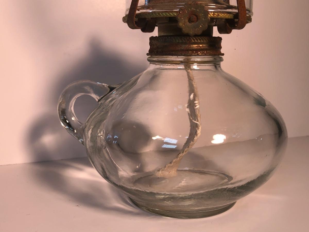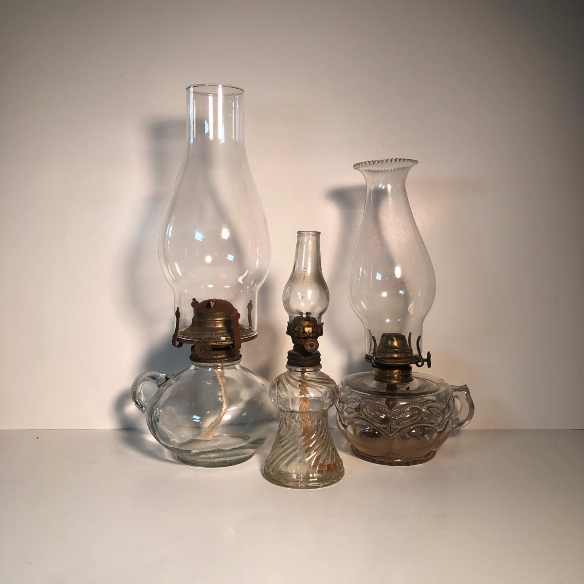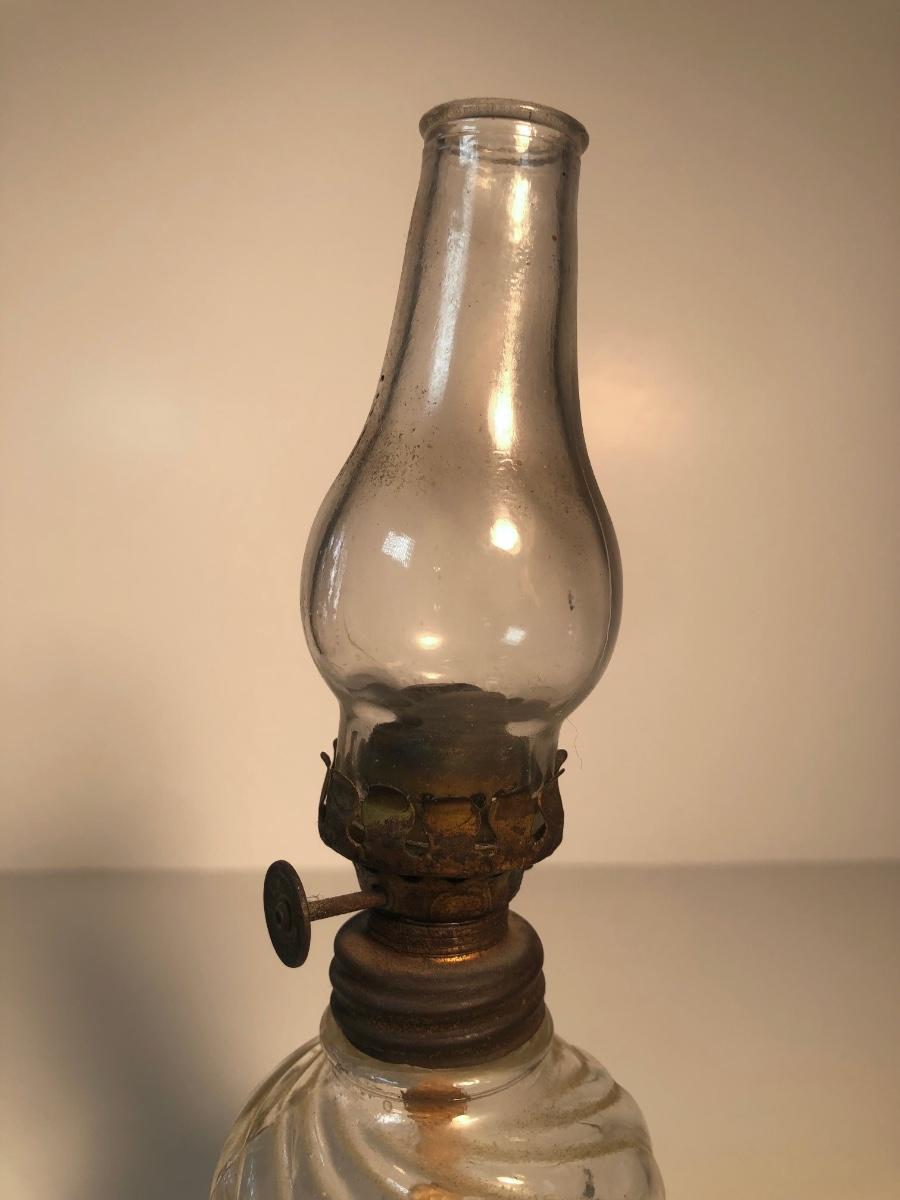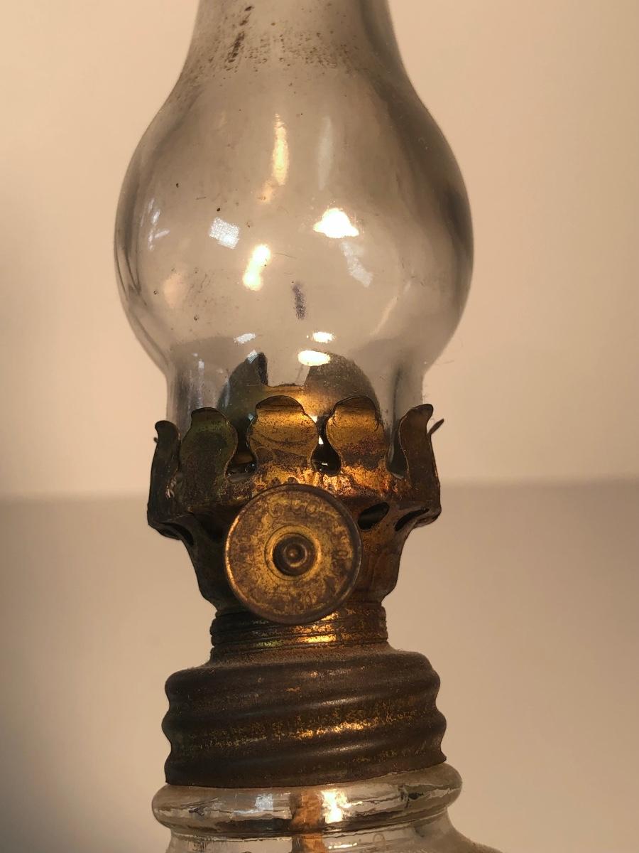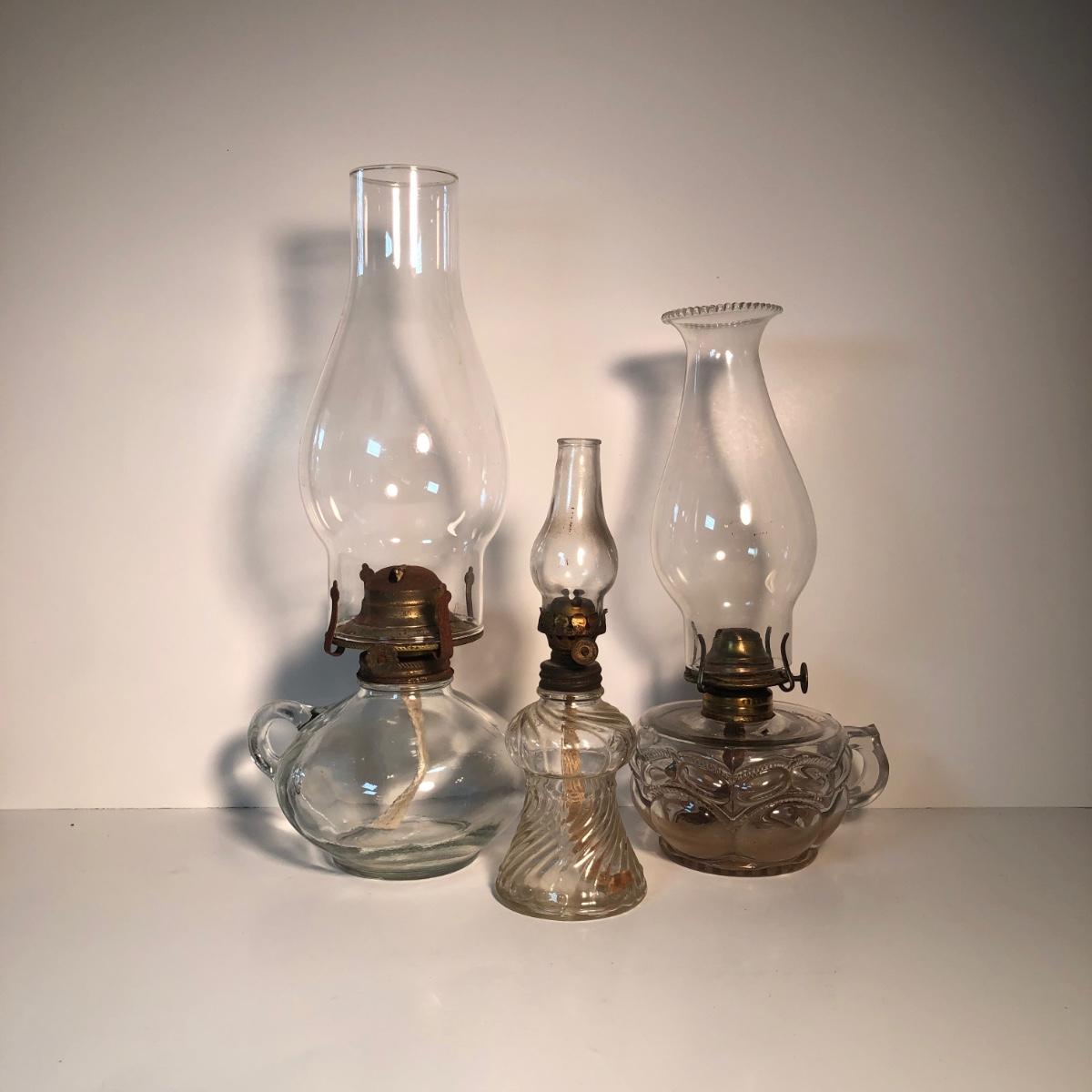 LOT 100L: Vintage Glass Oil Lamps - Miniature Swirl, Eagle