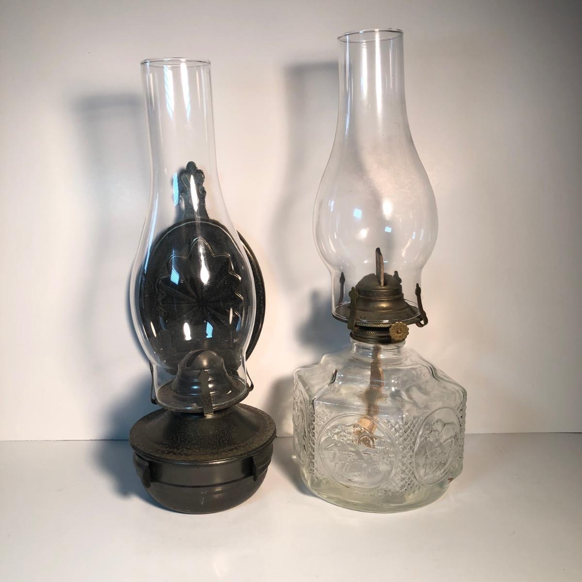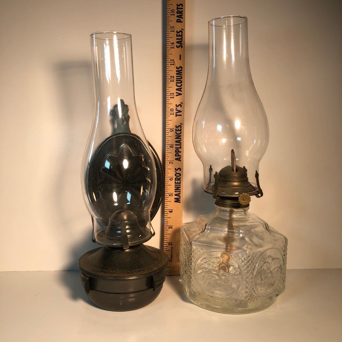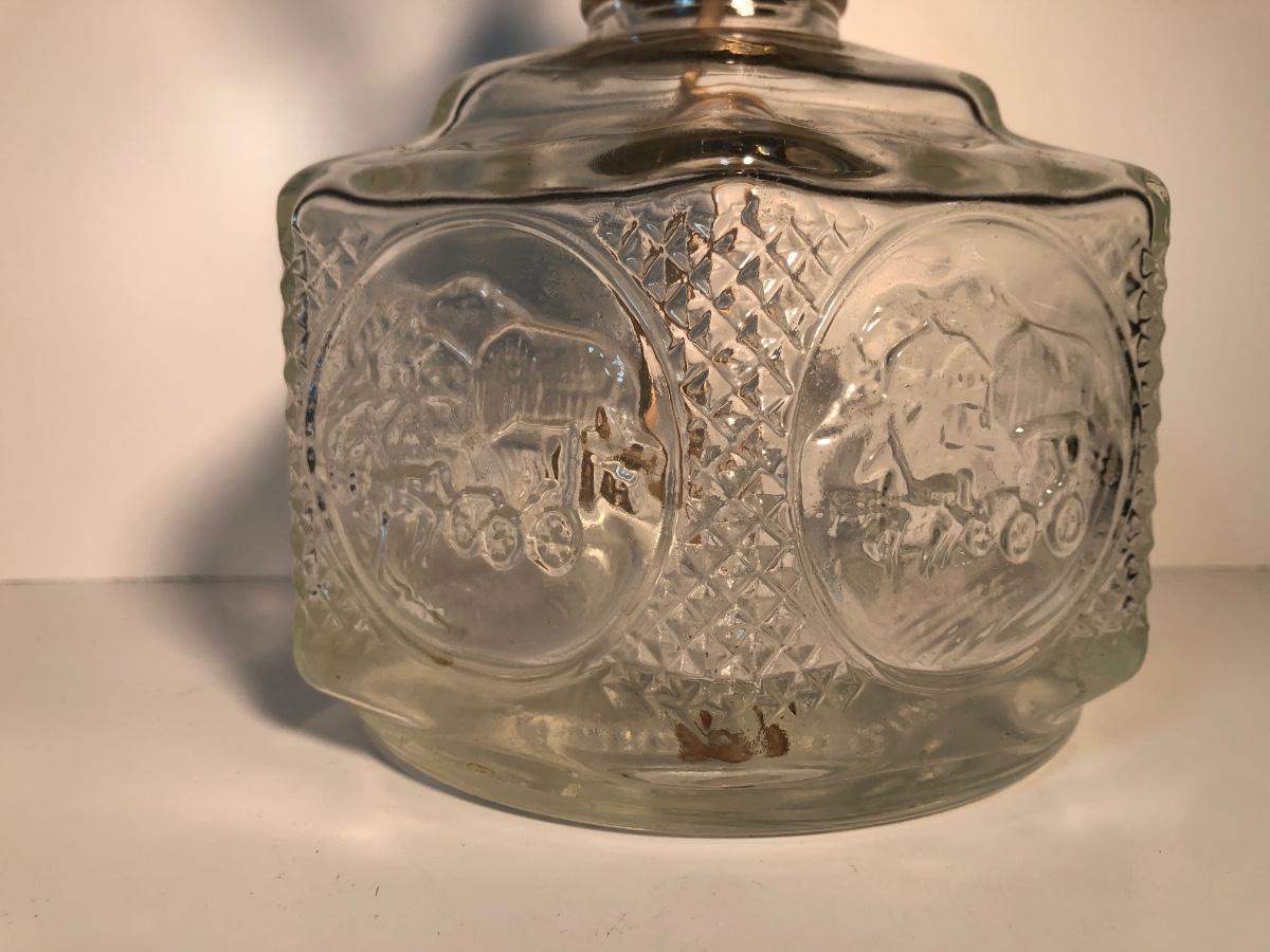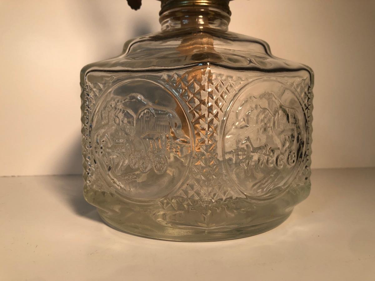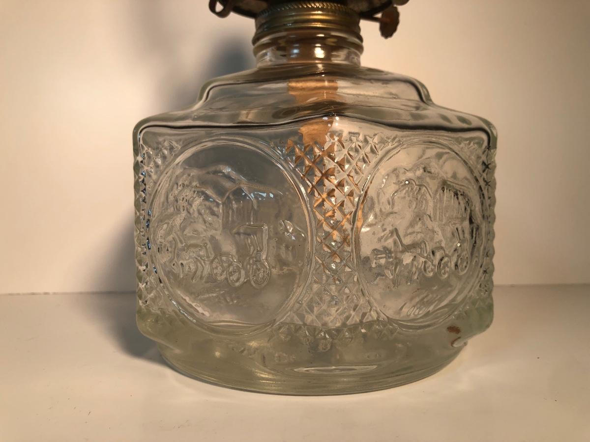 LOT 103L: Vintage Lamplight Farms 6-Sided Horse & Buggy Glass Oil Lamp & Vintage Lamplight Farms Wall Hanging Oil Lamp