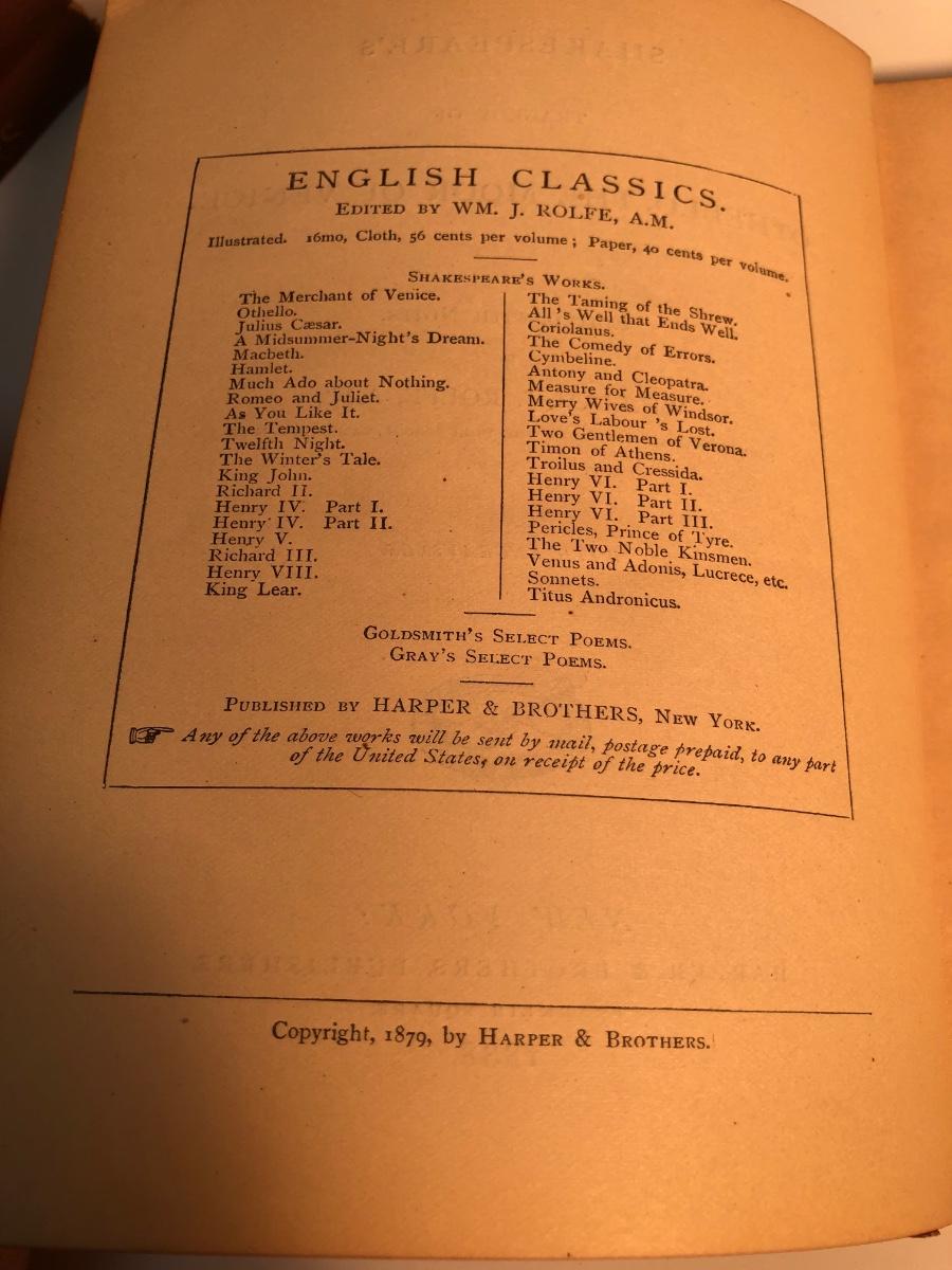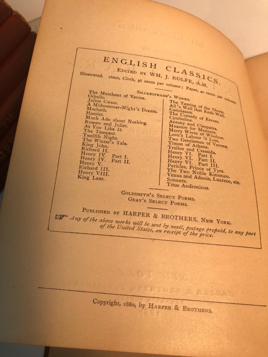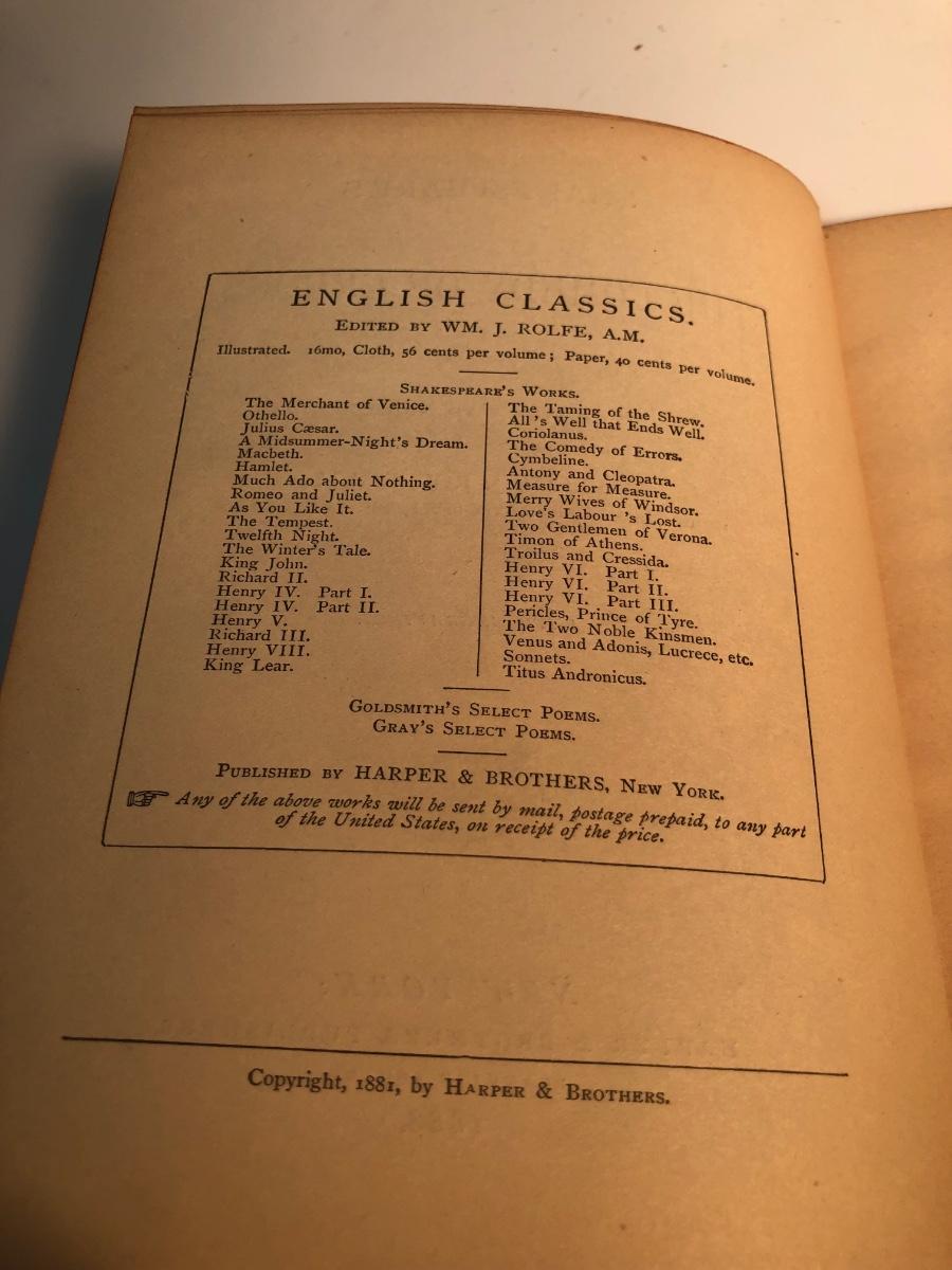 LOT 106L: Antique Late 1800s Shakespeare Edited by William J Rolfe Books