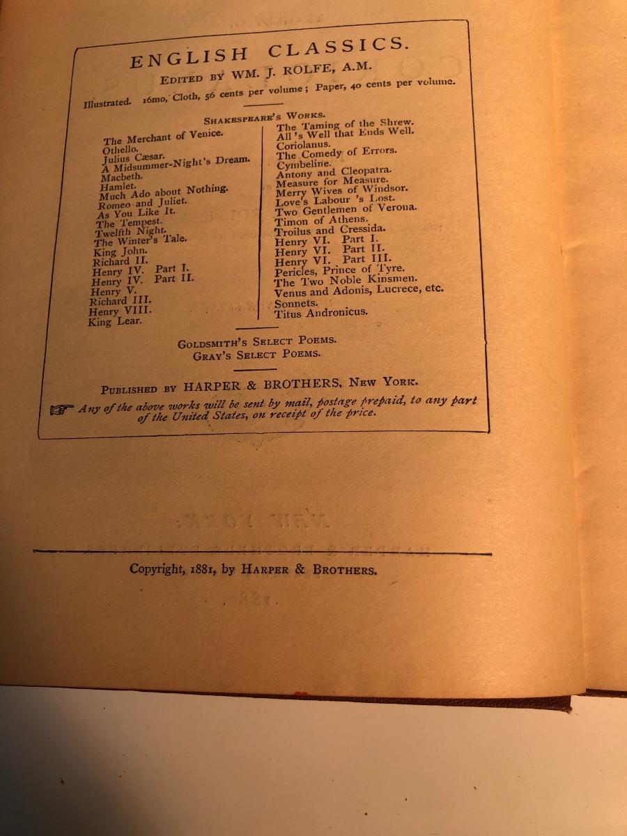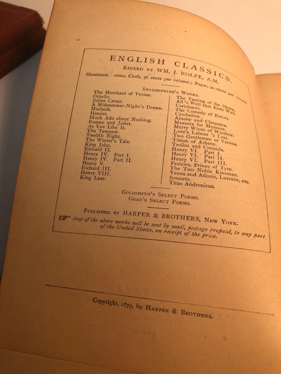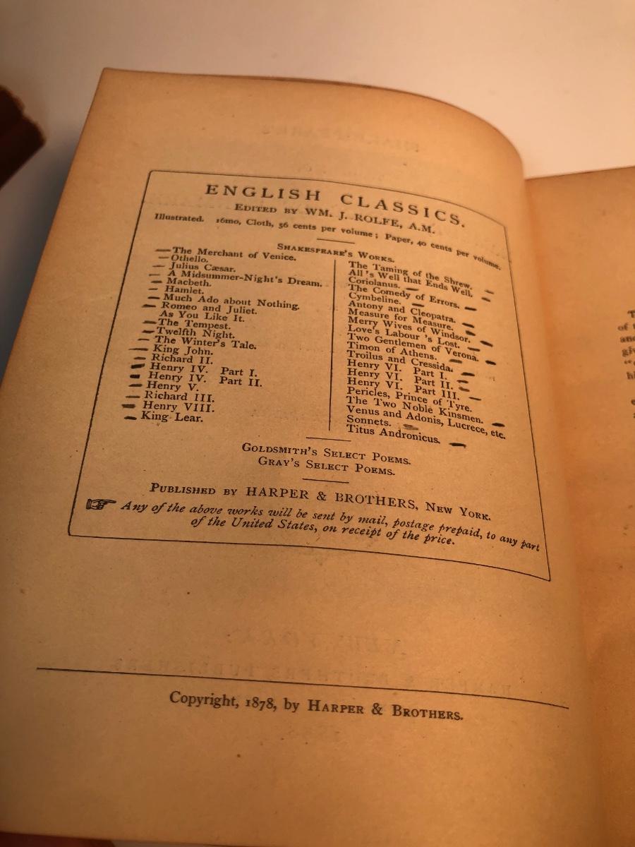 LOT 106L: Antique Late 1800s Shakespeare Edited by William J Rolfe Books