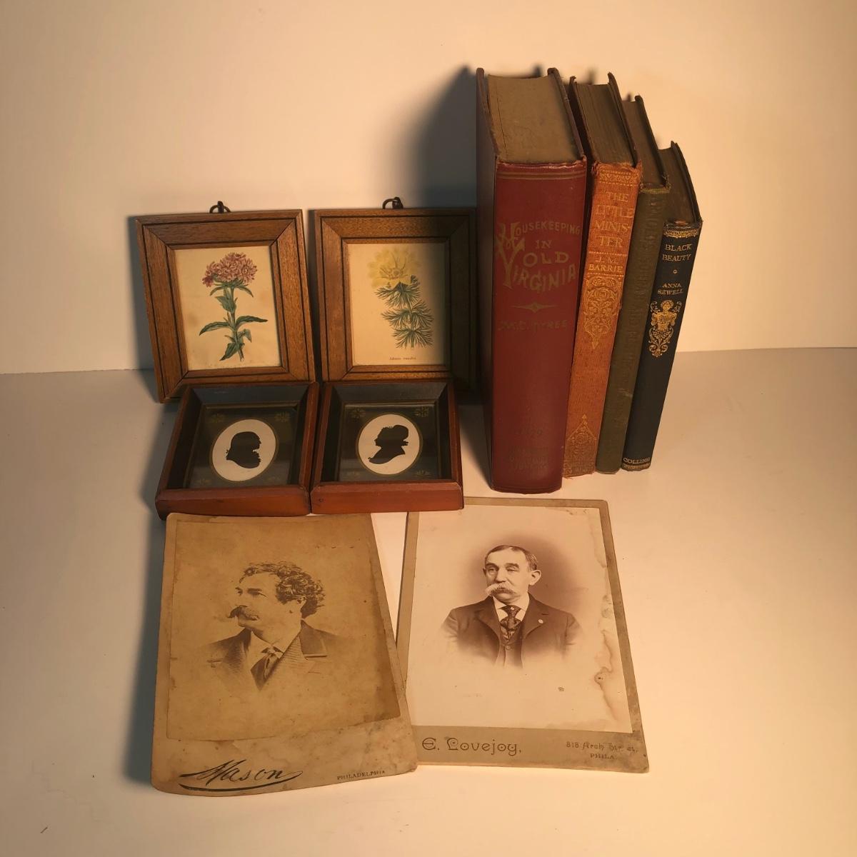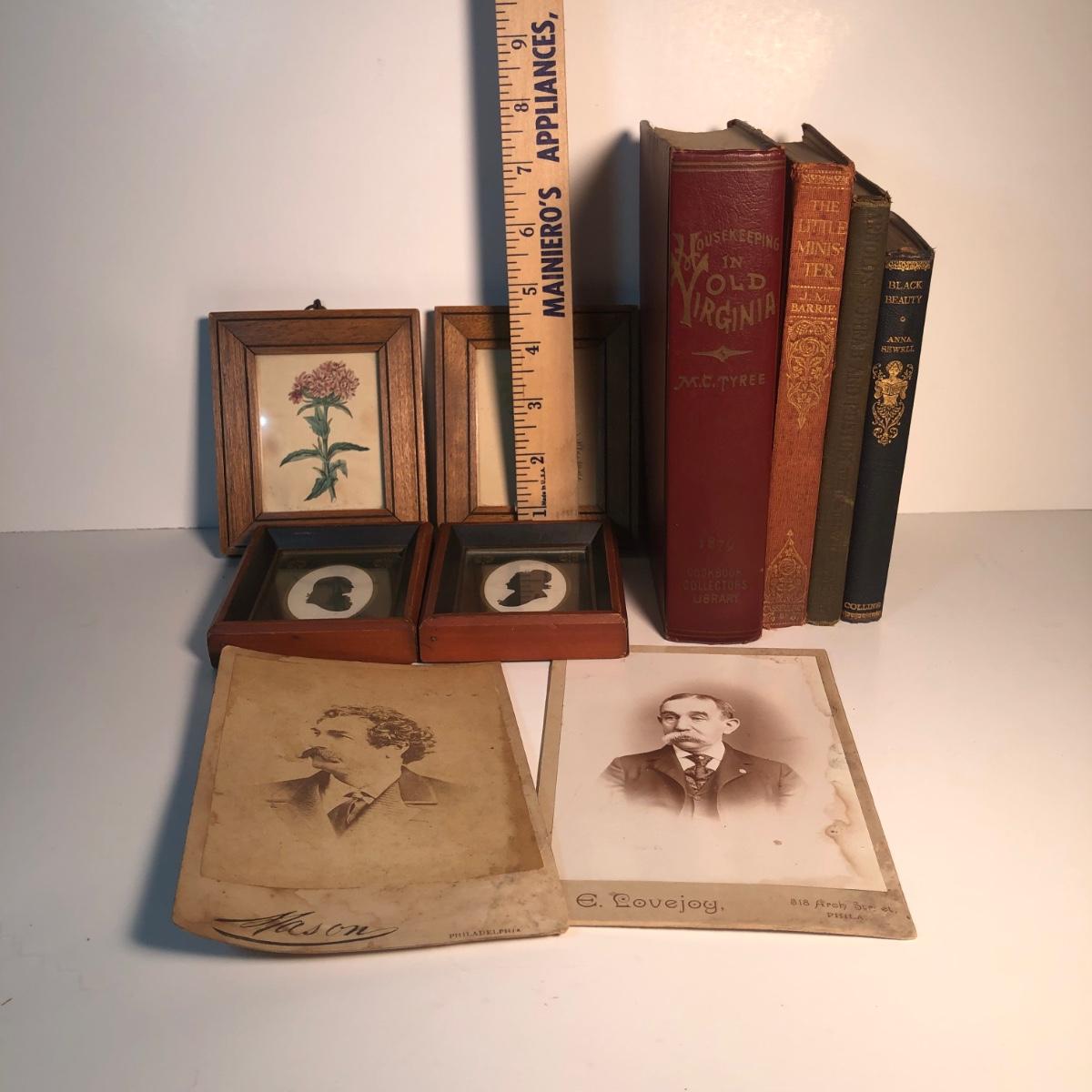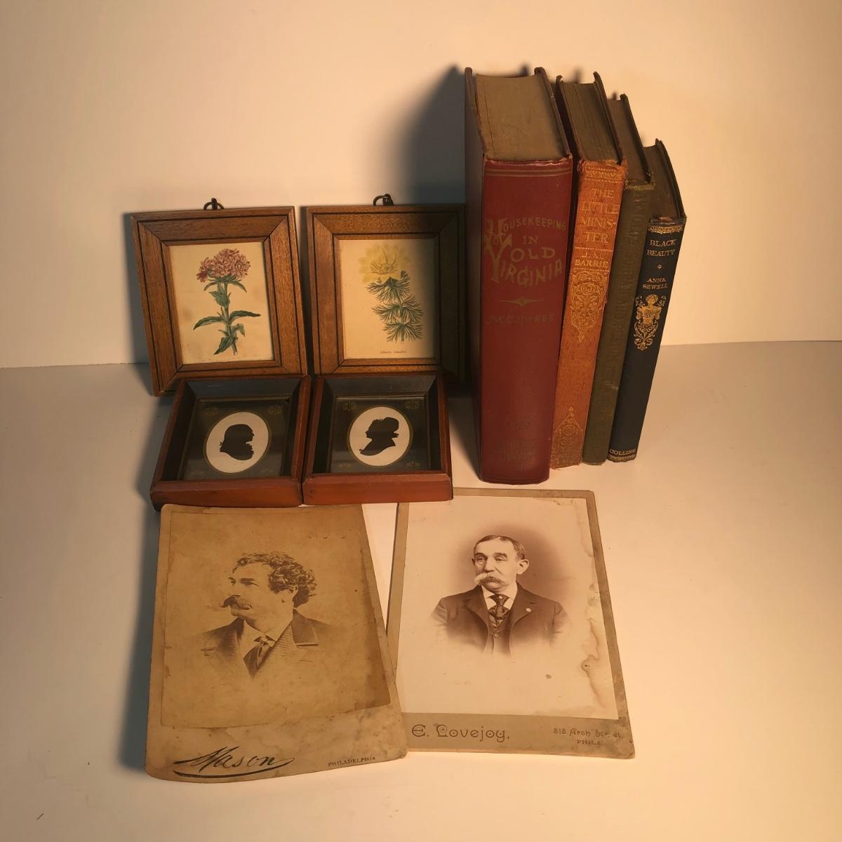 LOT 110L: Antique Books and Photos, Framed Vintage Flowers & Silhouettes