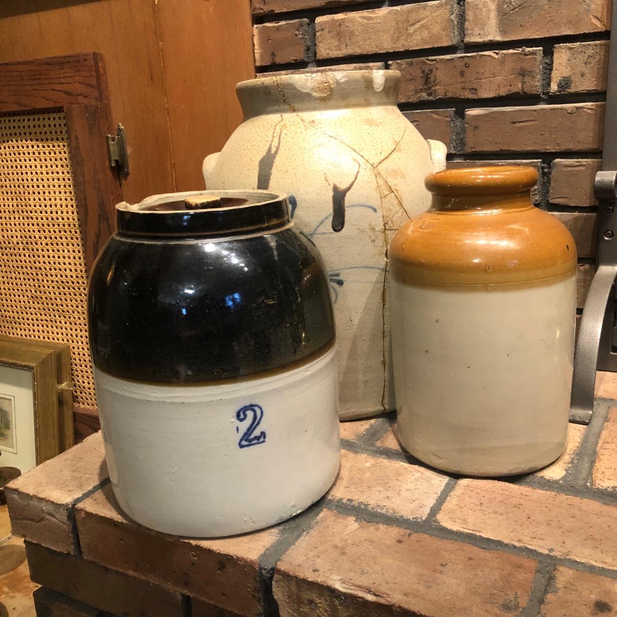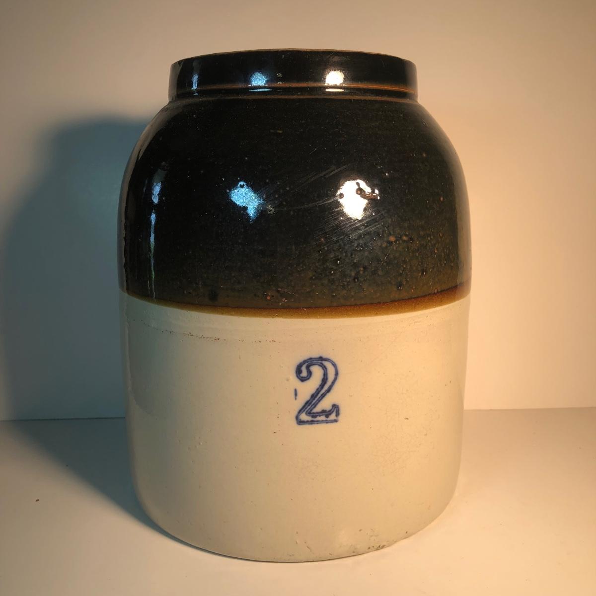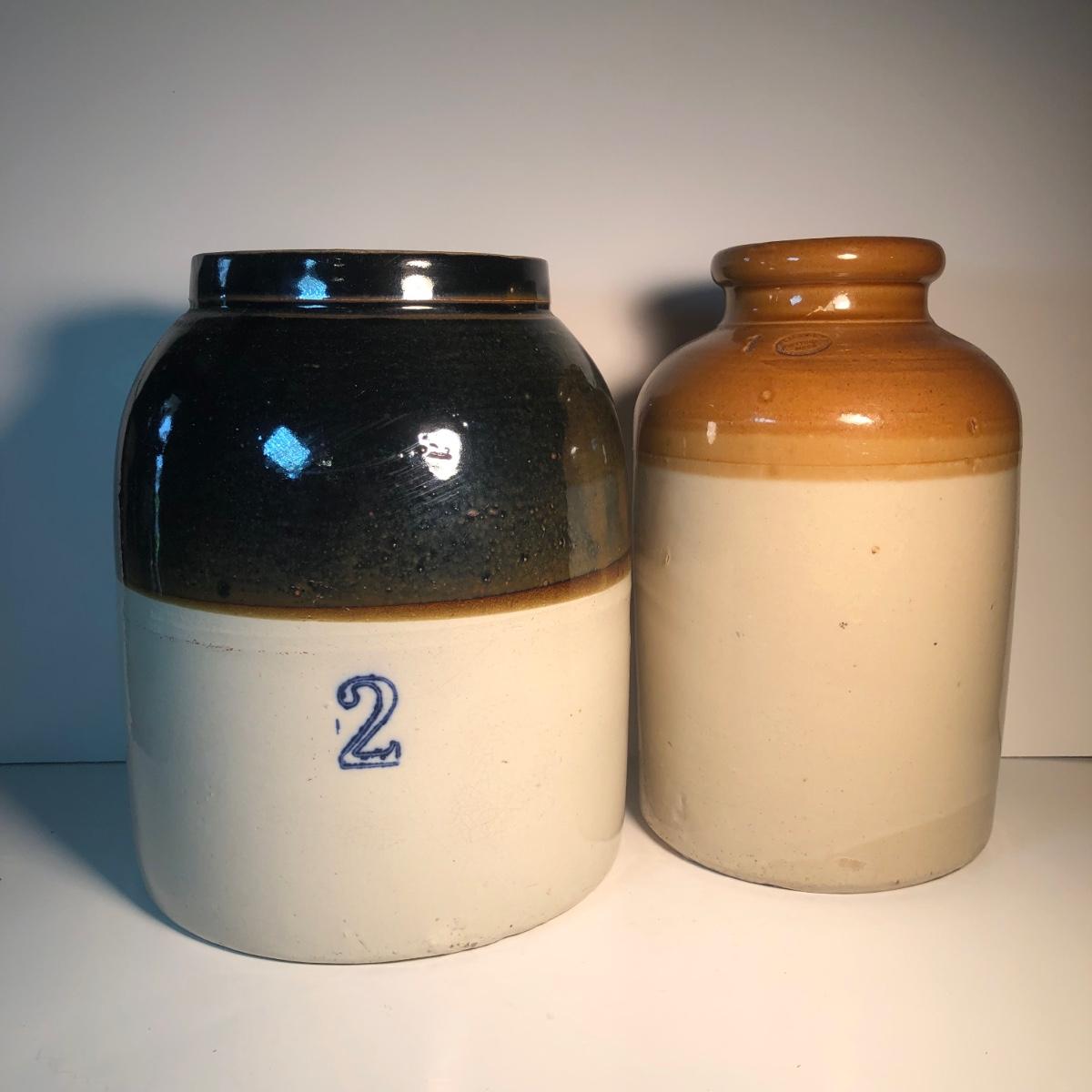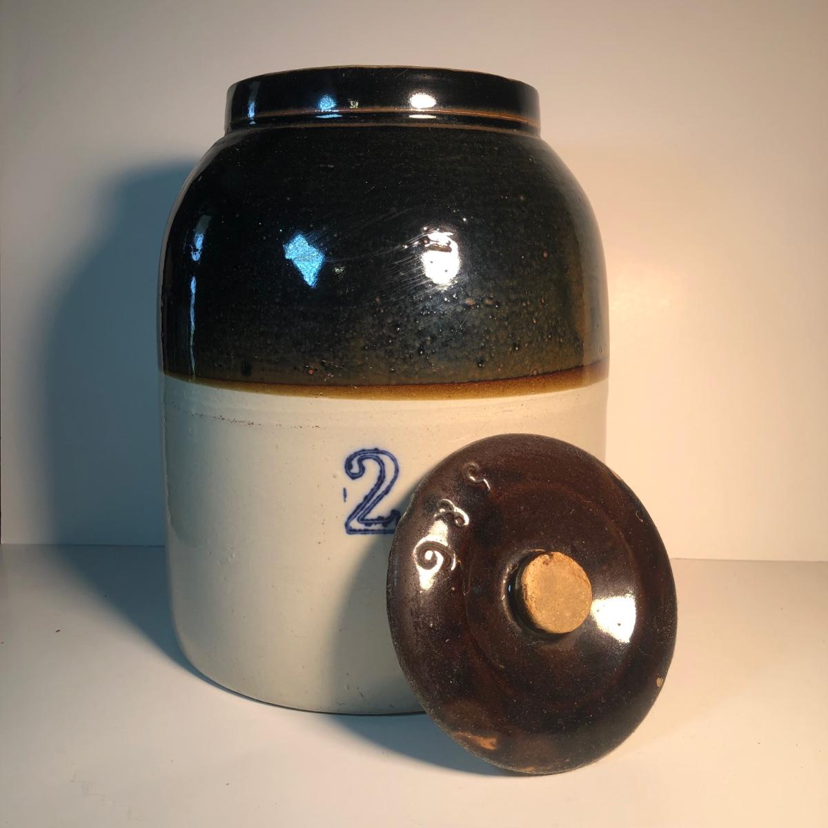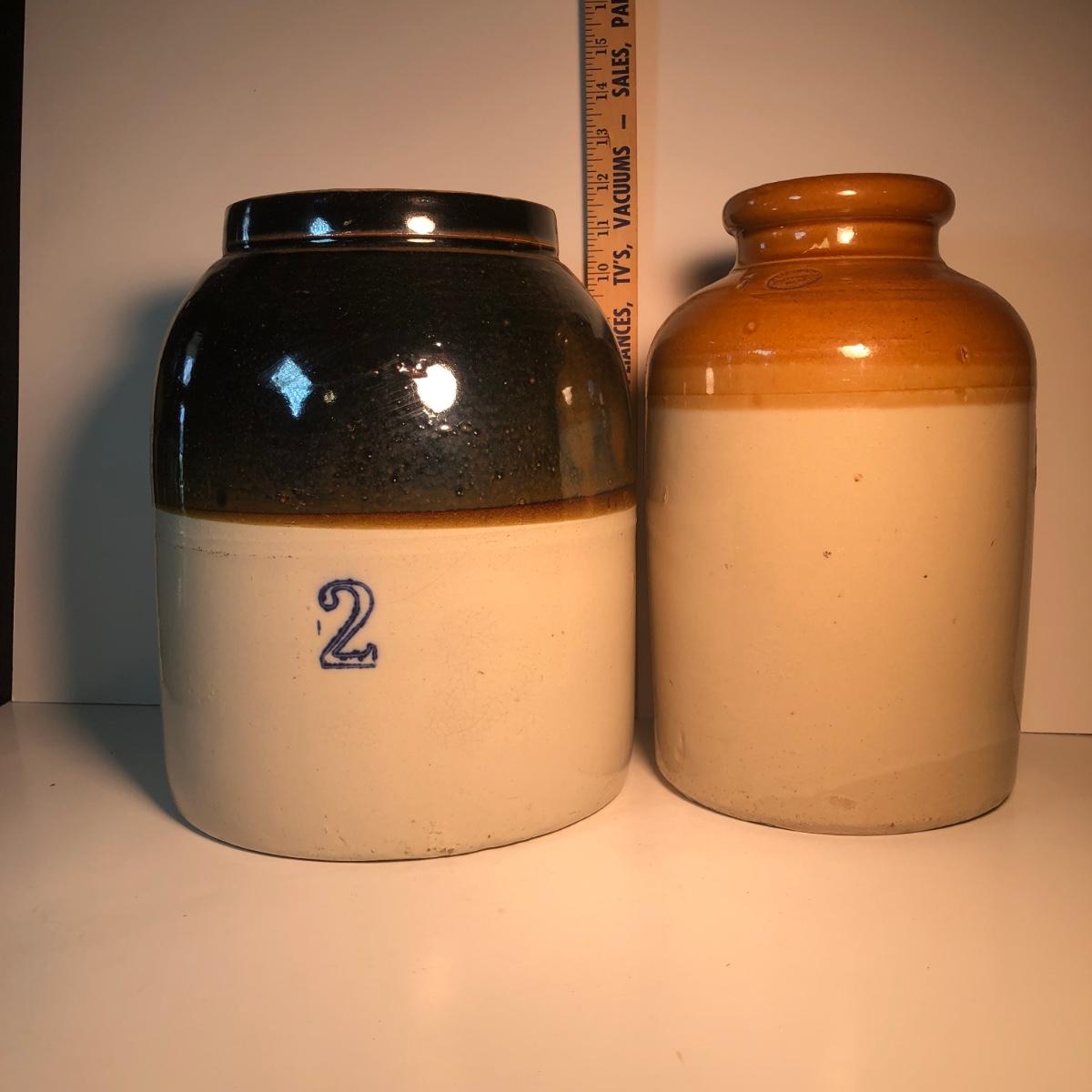 LOT 115L: Vintage Stoneware Crocks - one w/ Lid