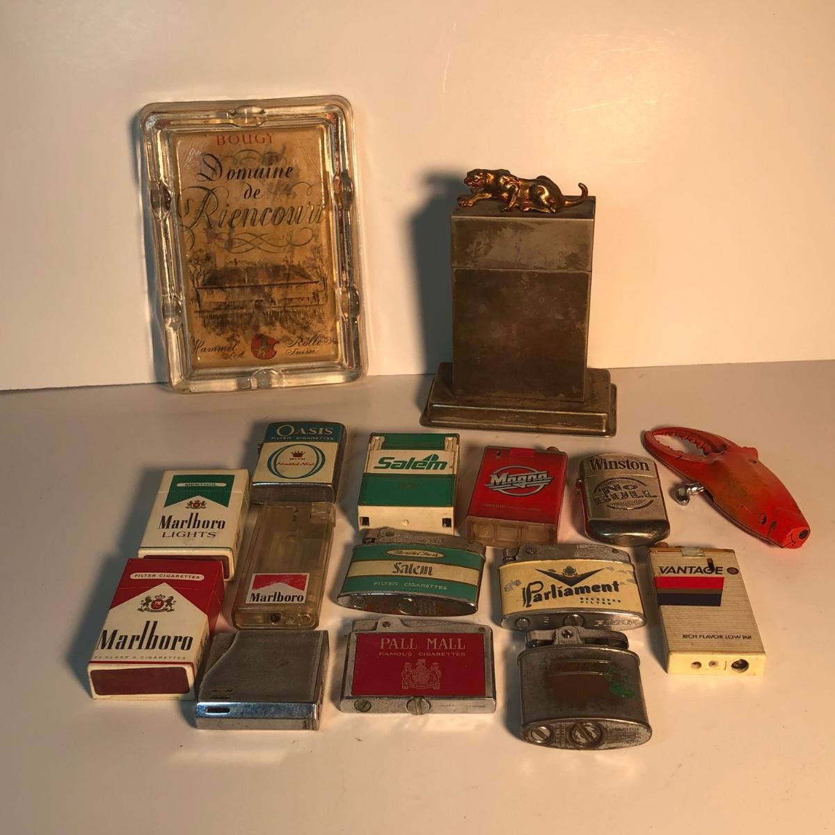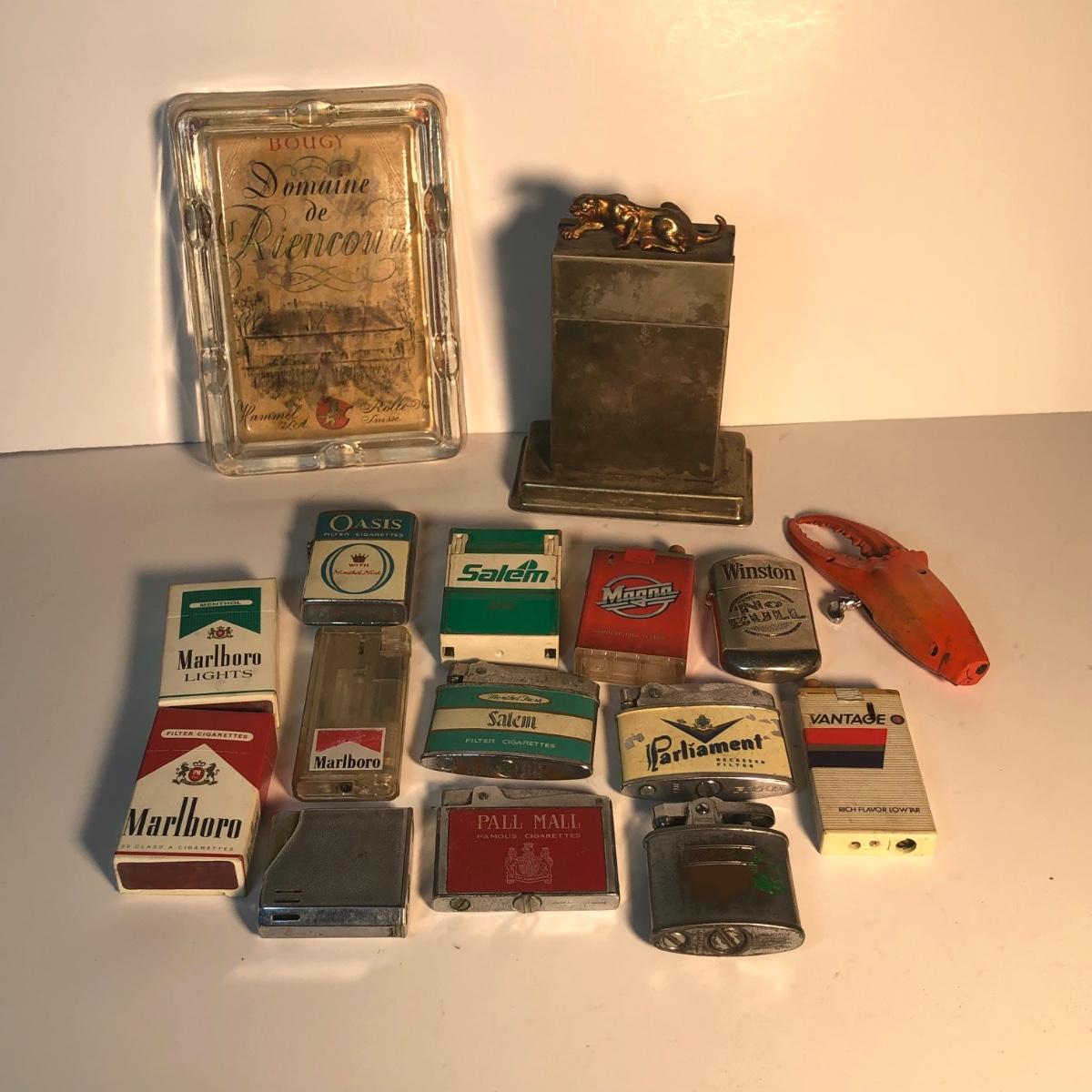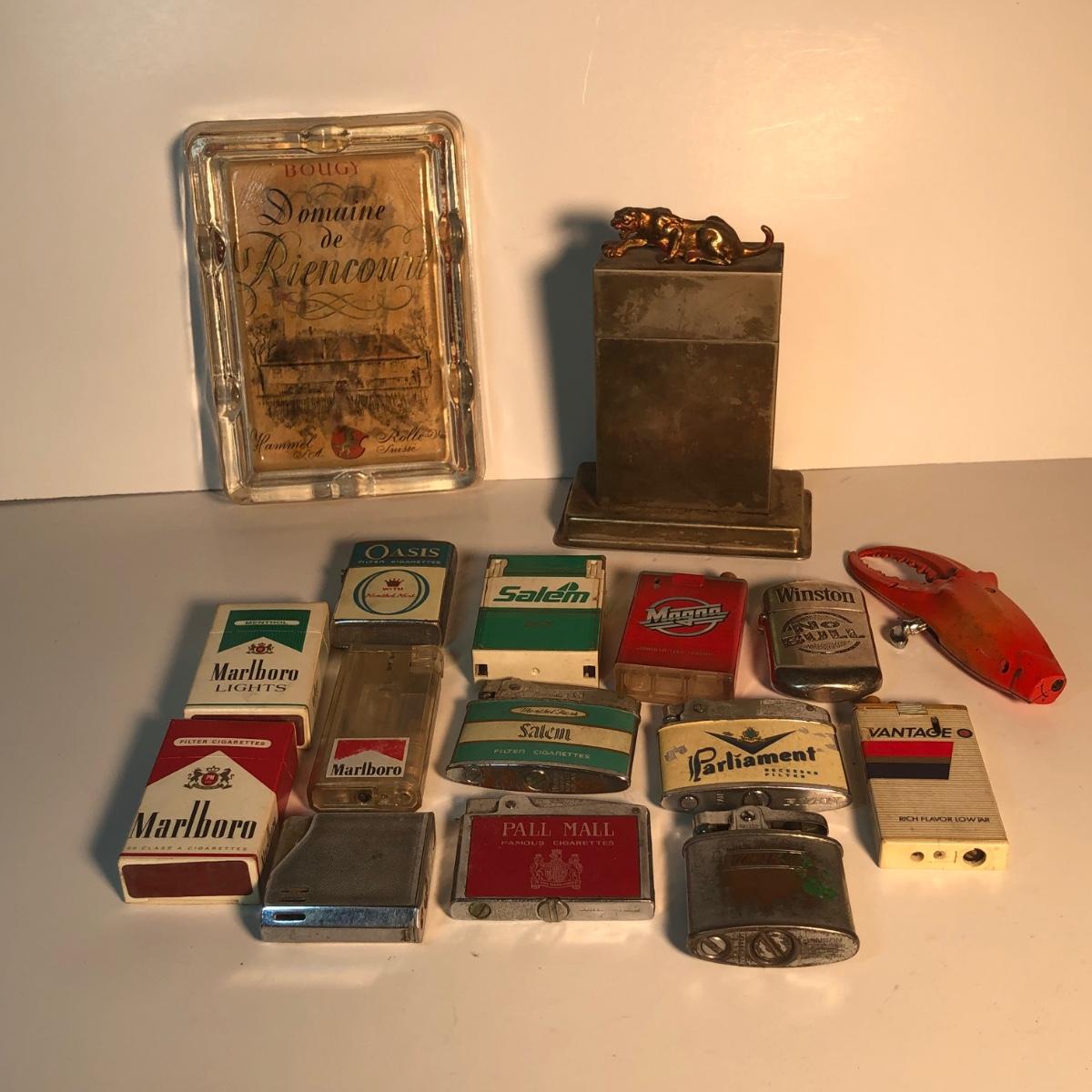 LOT 122L: Vintage Cigarette / Tobacco Branded Lighters, Jaguar Cigarette Holder & More