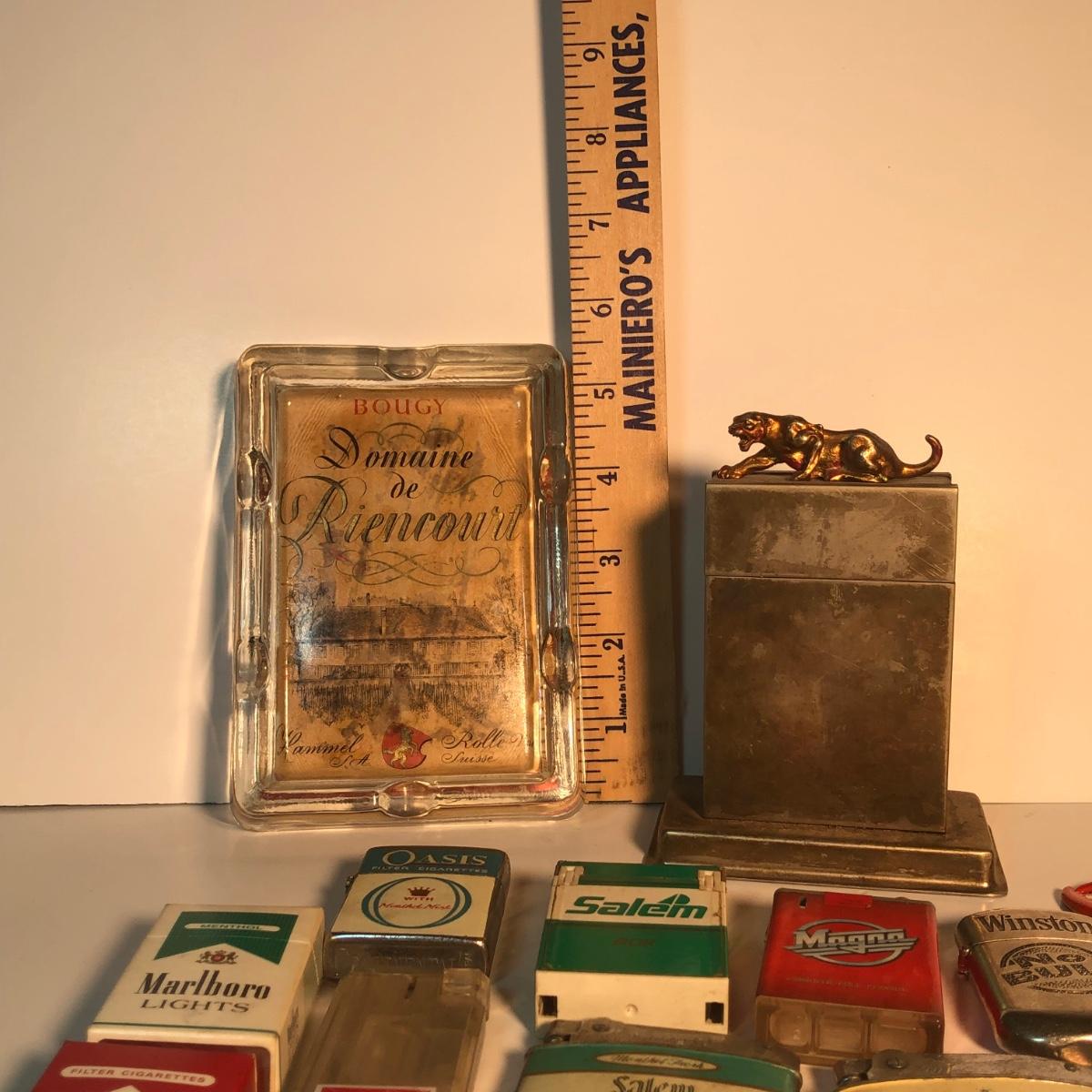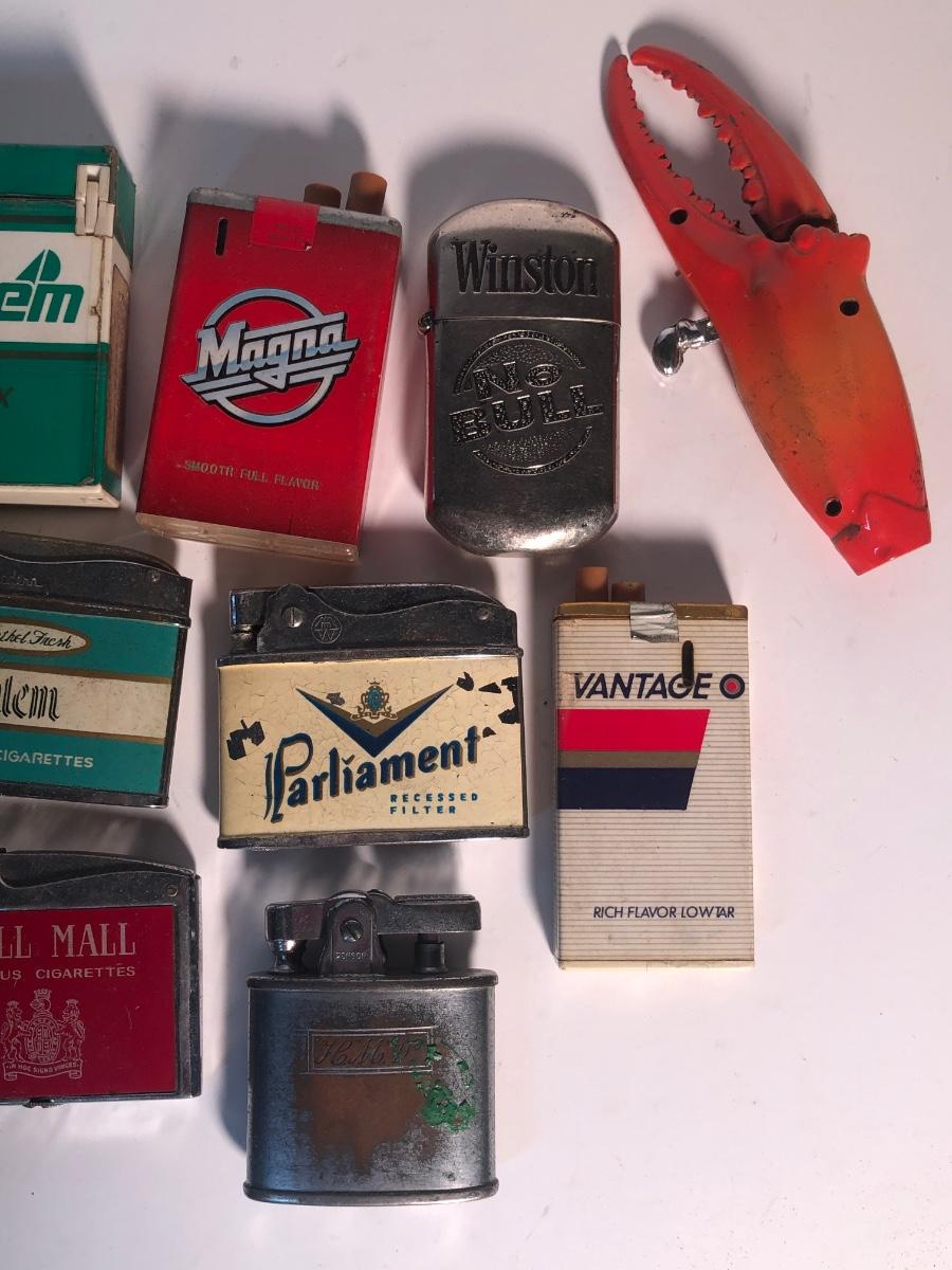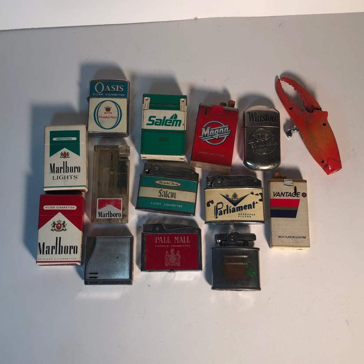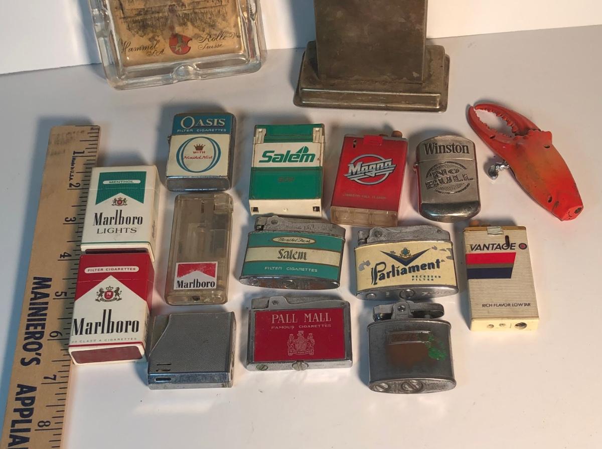 LOT 122L: Vintage Cigarette / Tobacco Branded Lighters, Jaguar Cigarette Holder & More