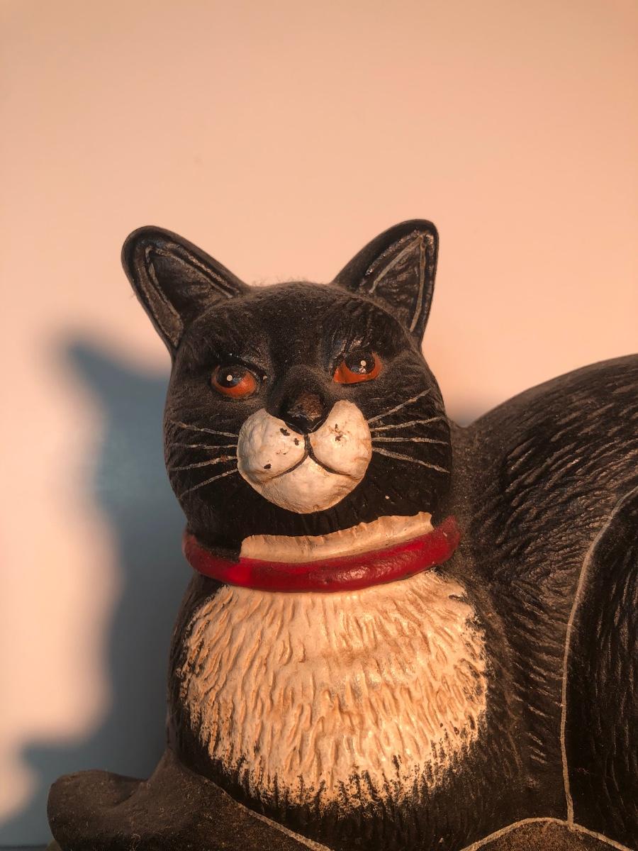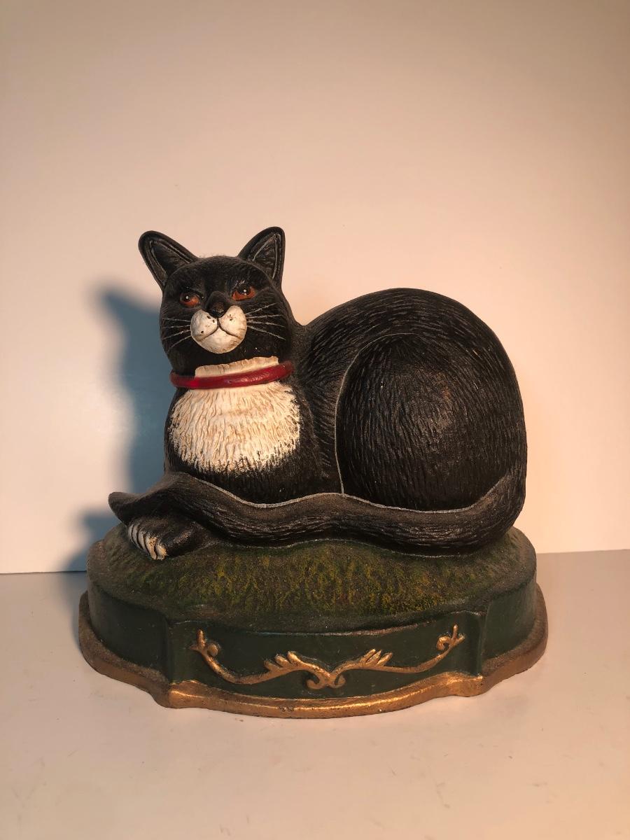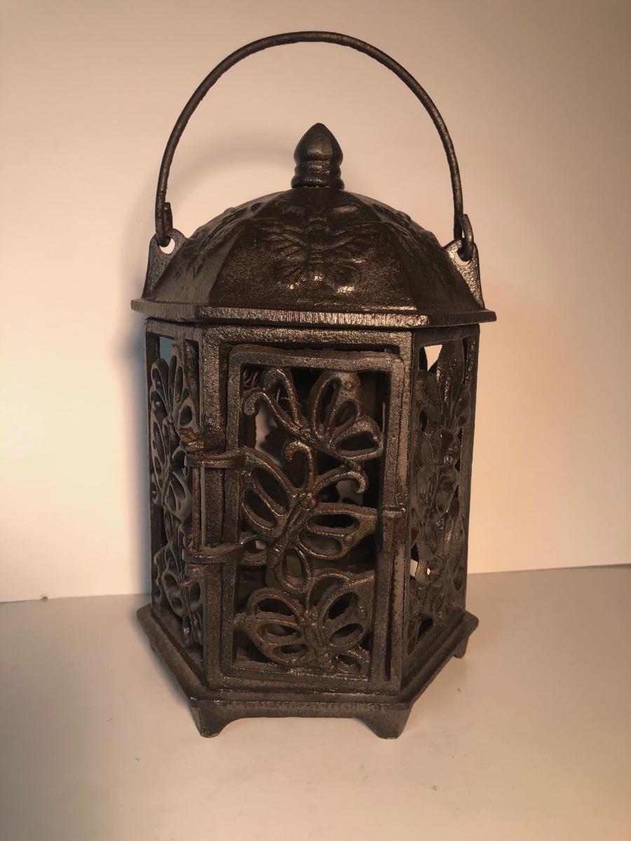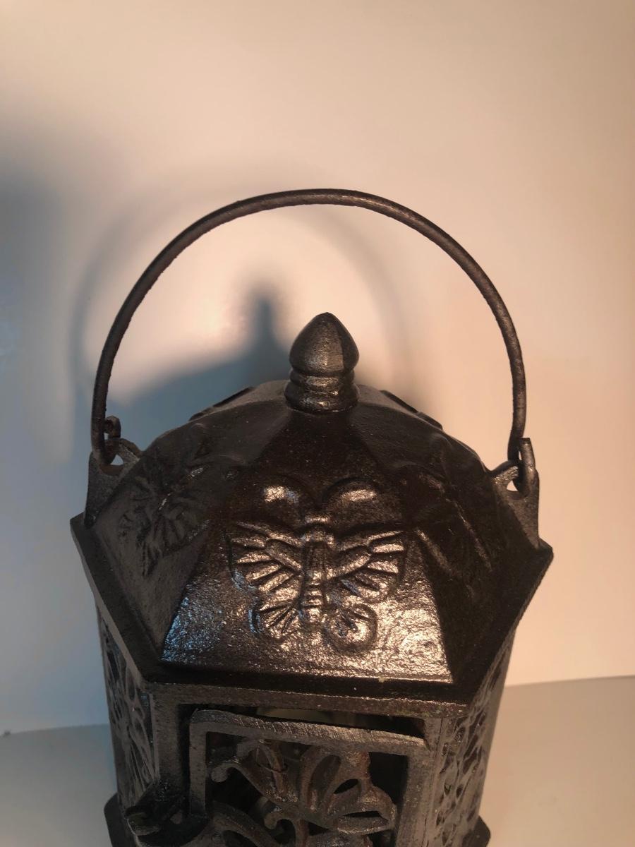 LOT 124L: Vintage Cast Iron Cat Doorstop & Hanging Butterfly Candle Lantern