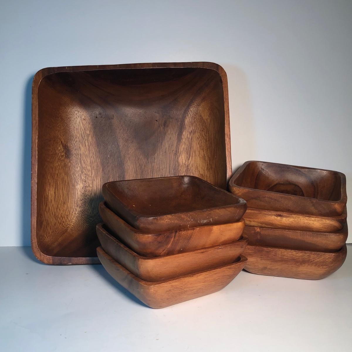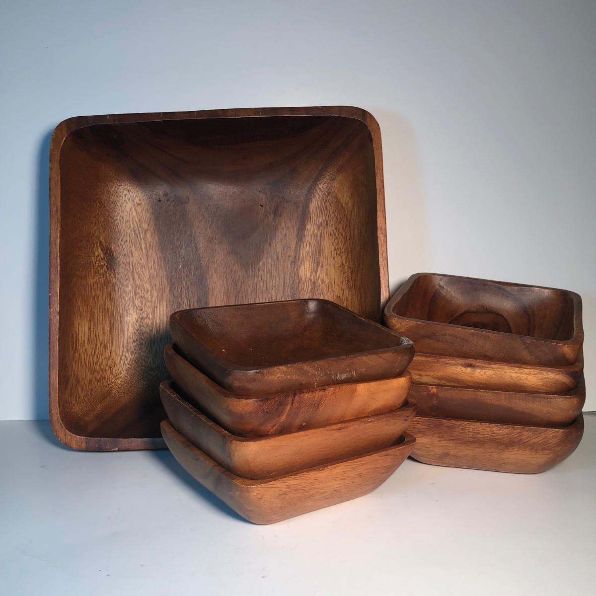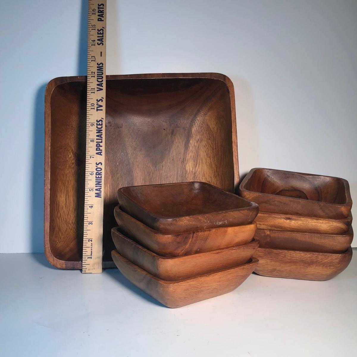 LOT 127L: Square Wooden Salad Serving Bowl w/ Matching Individual Bowls