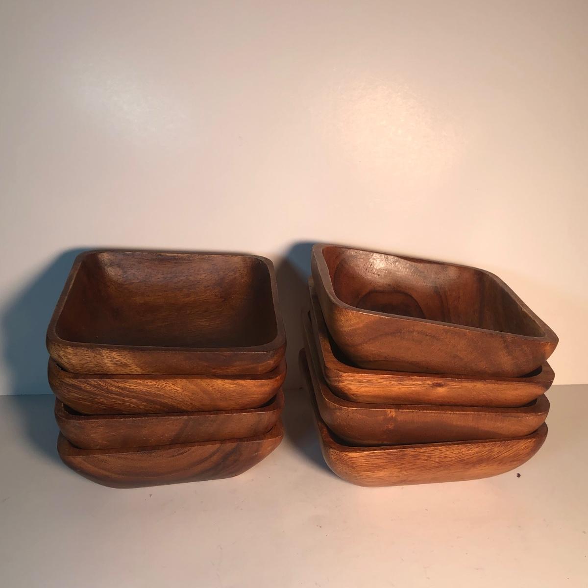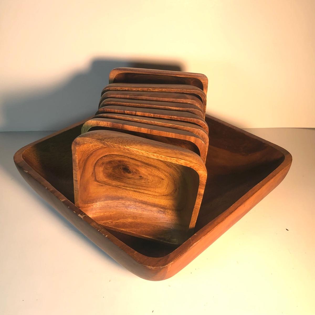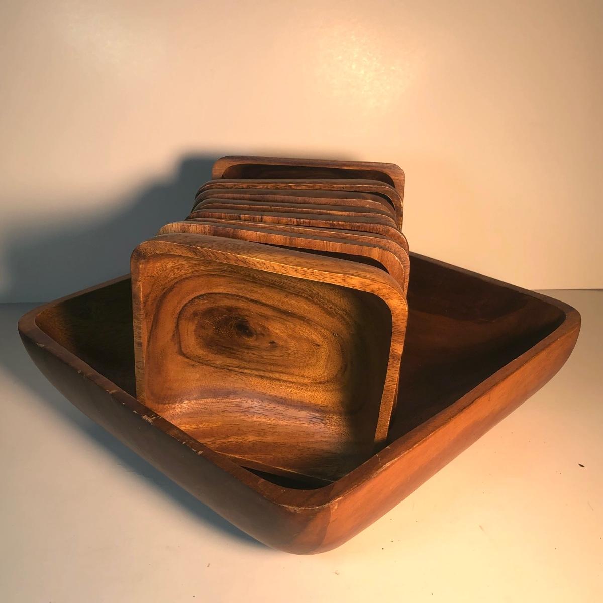 LOT 127L: Square Wooden Salad Serving Bowl w/ Matching Individual Bowls
