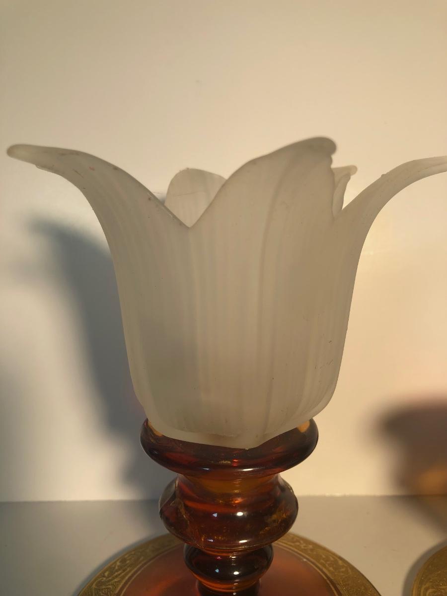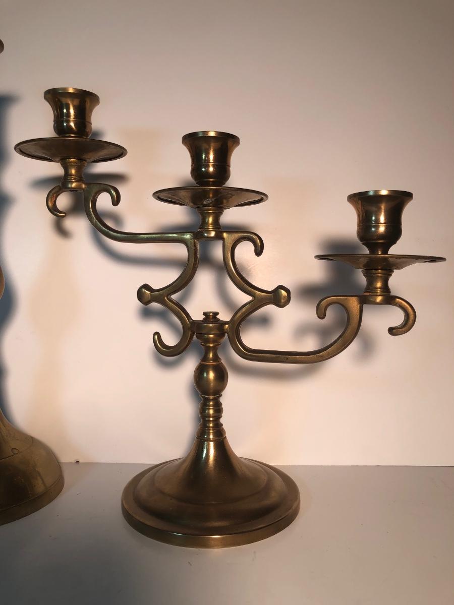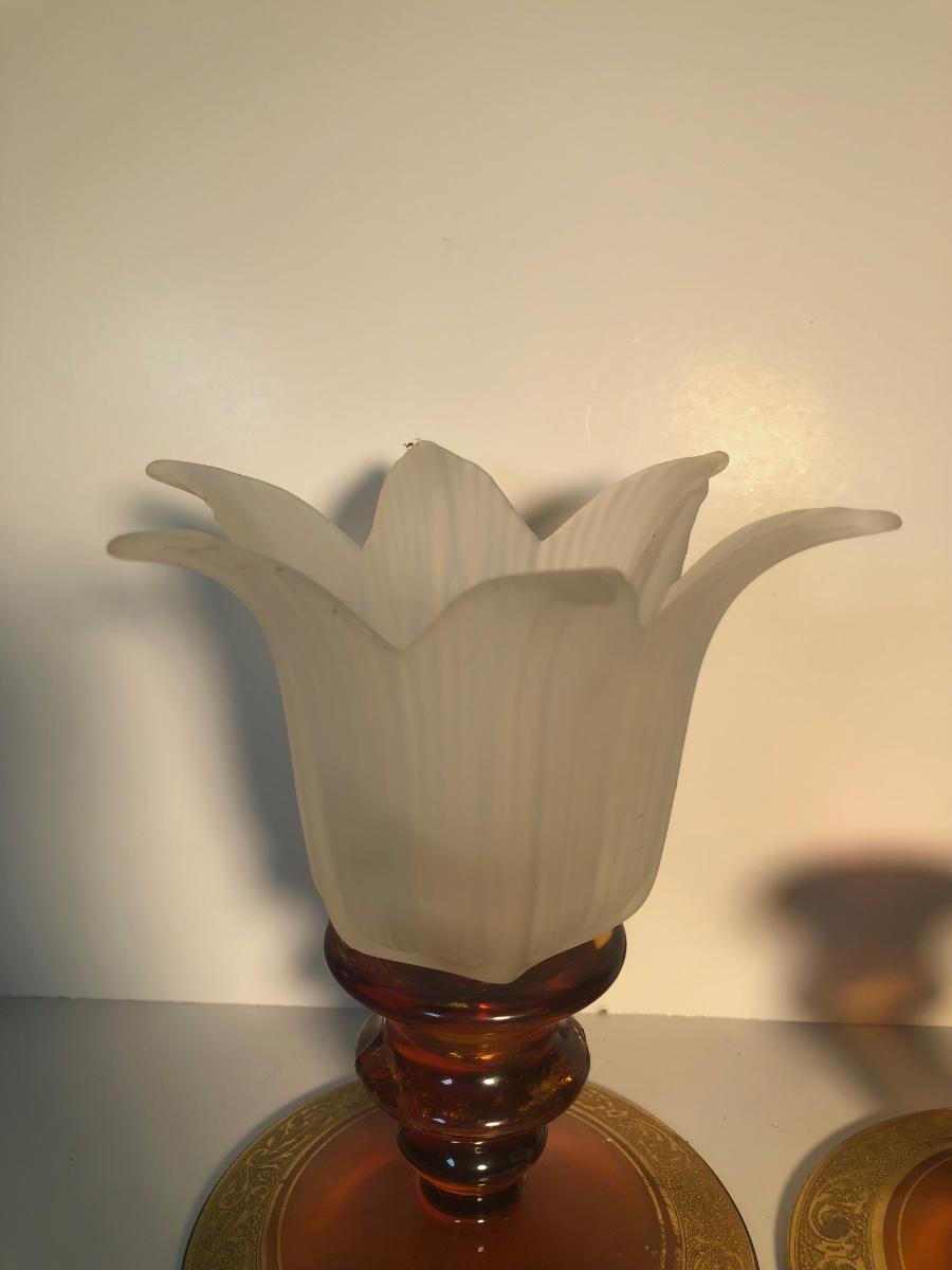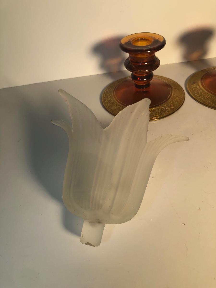 LOT 128L: Candle Collection - Brass Candle Holders, Amber Glass Candlestick Holders, Yankee Candle, Snuffer & More