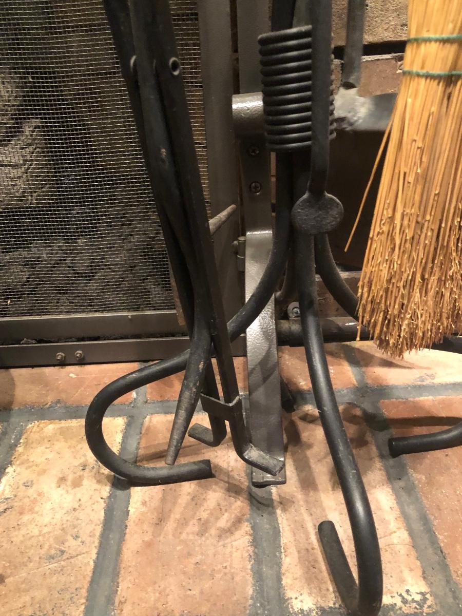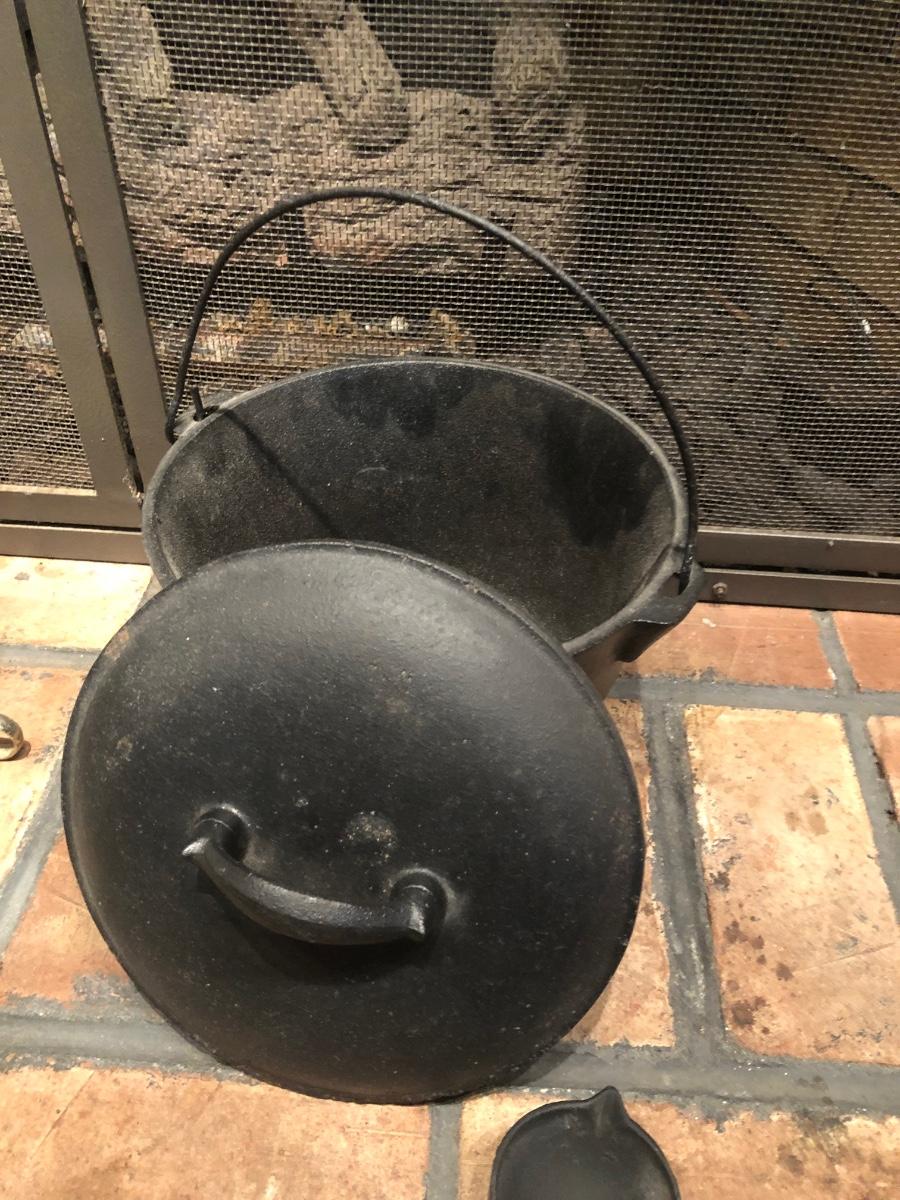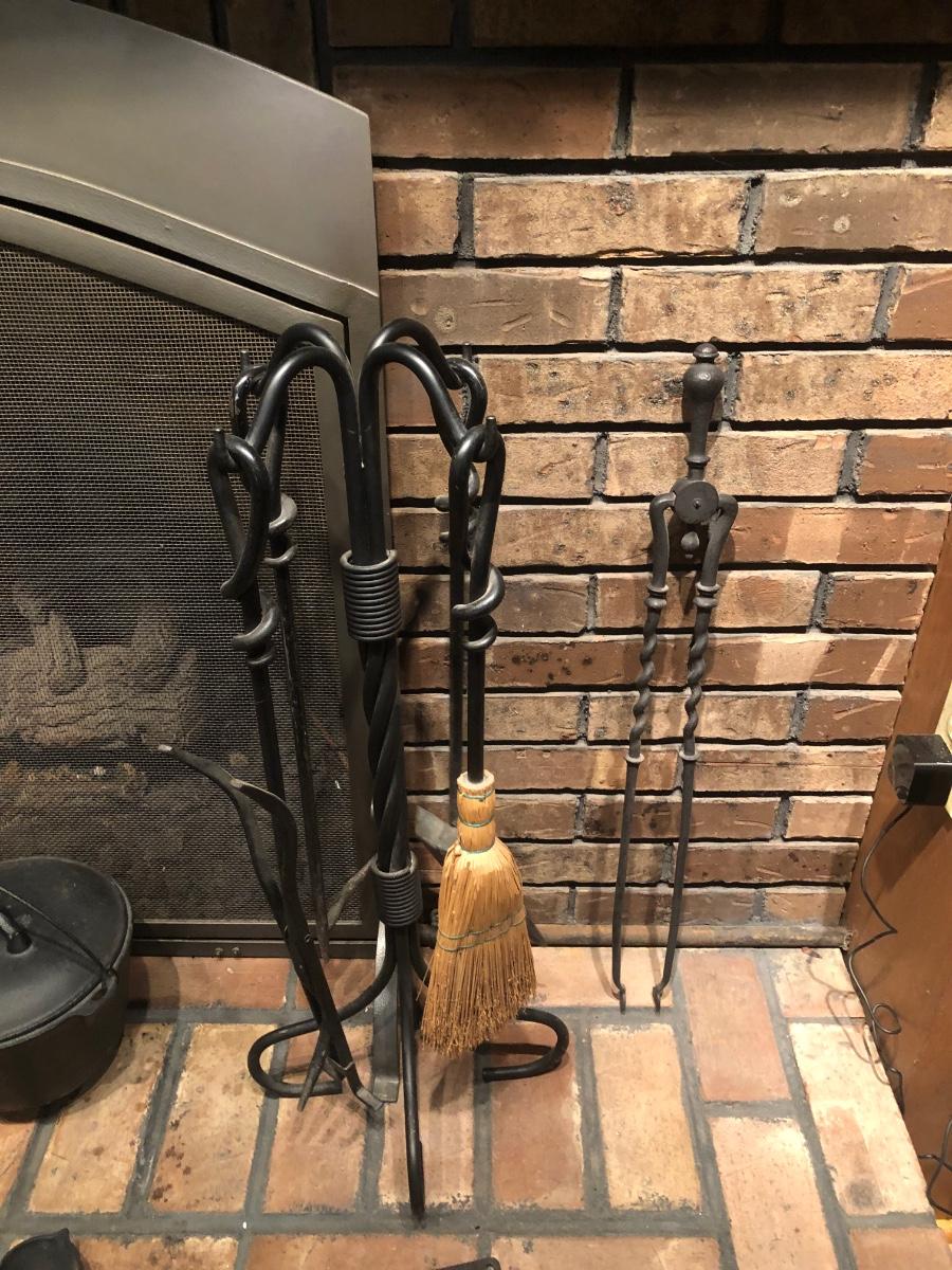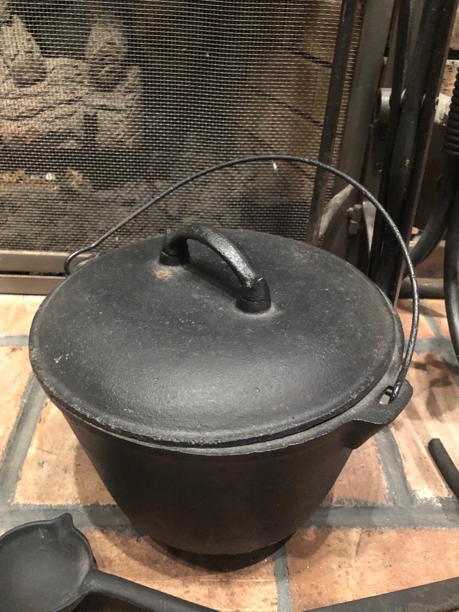 LOT 129L: Vintage Fireplace Tools w/ Rack, Footed Pot & Ladles
