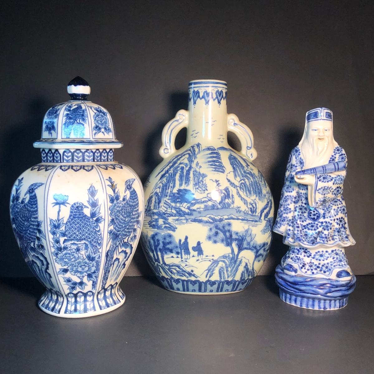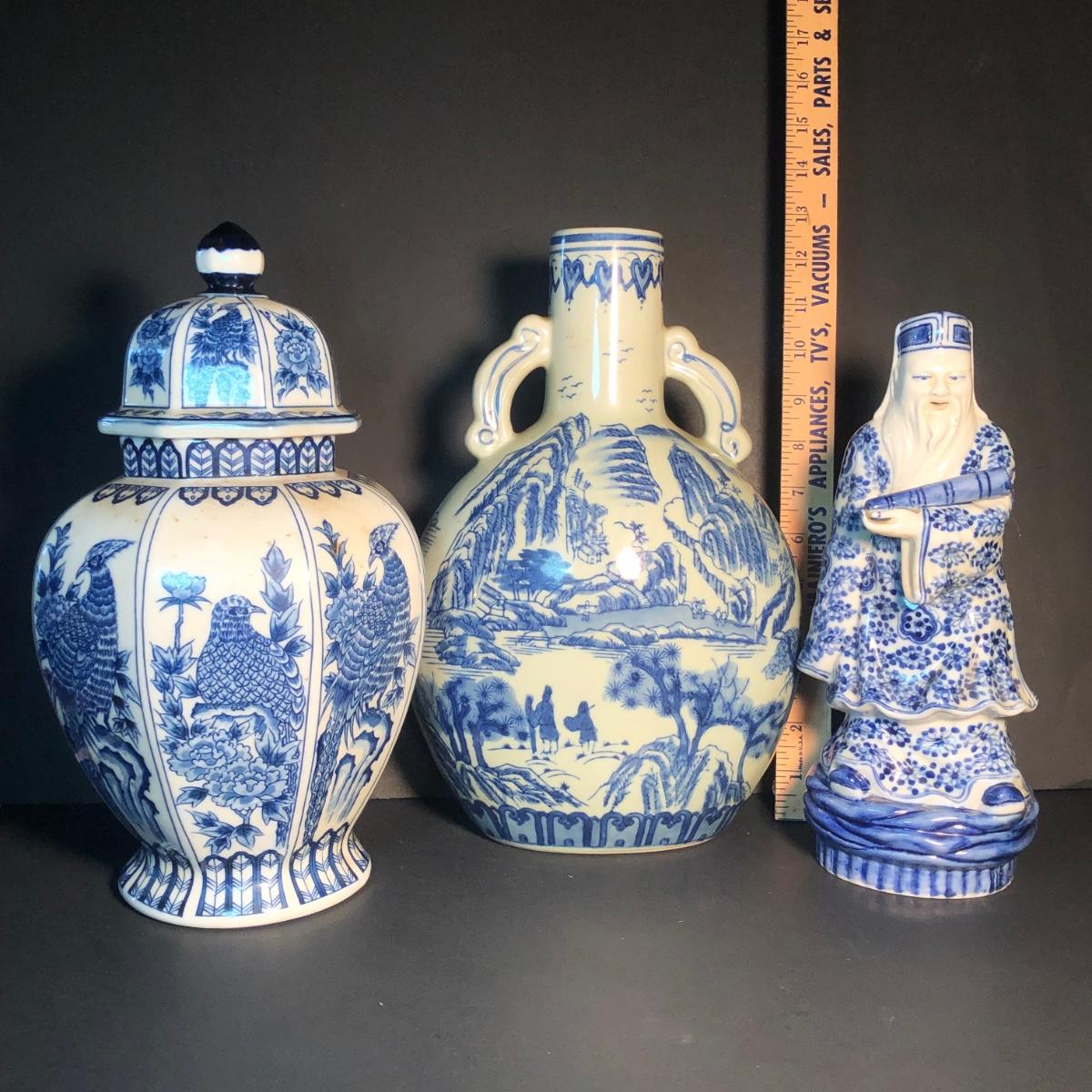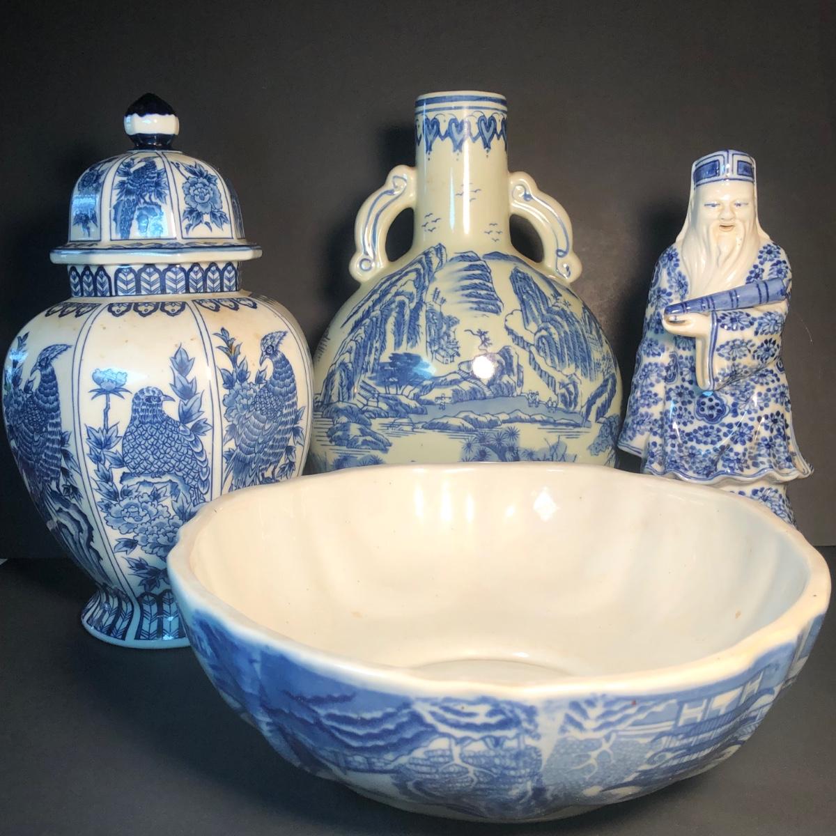 LOT 131L: Blue & White China Vases, Figure & Bowl