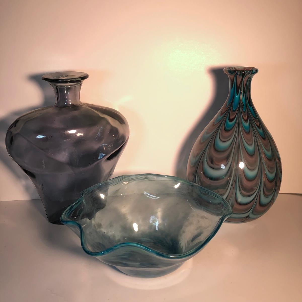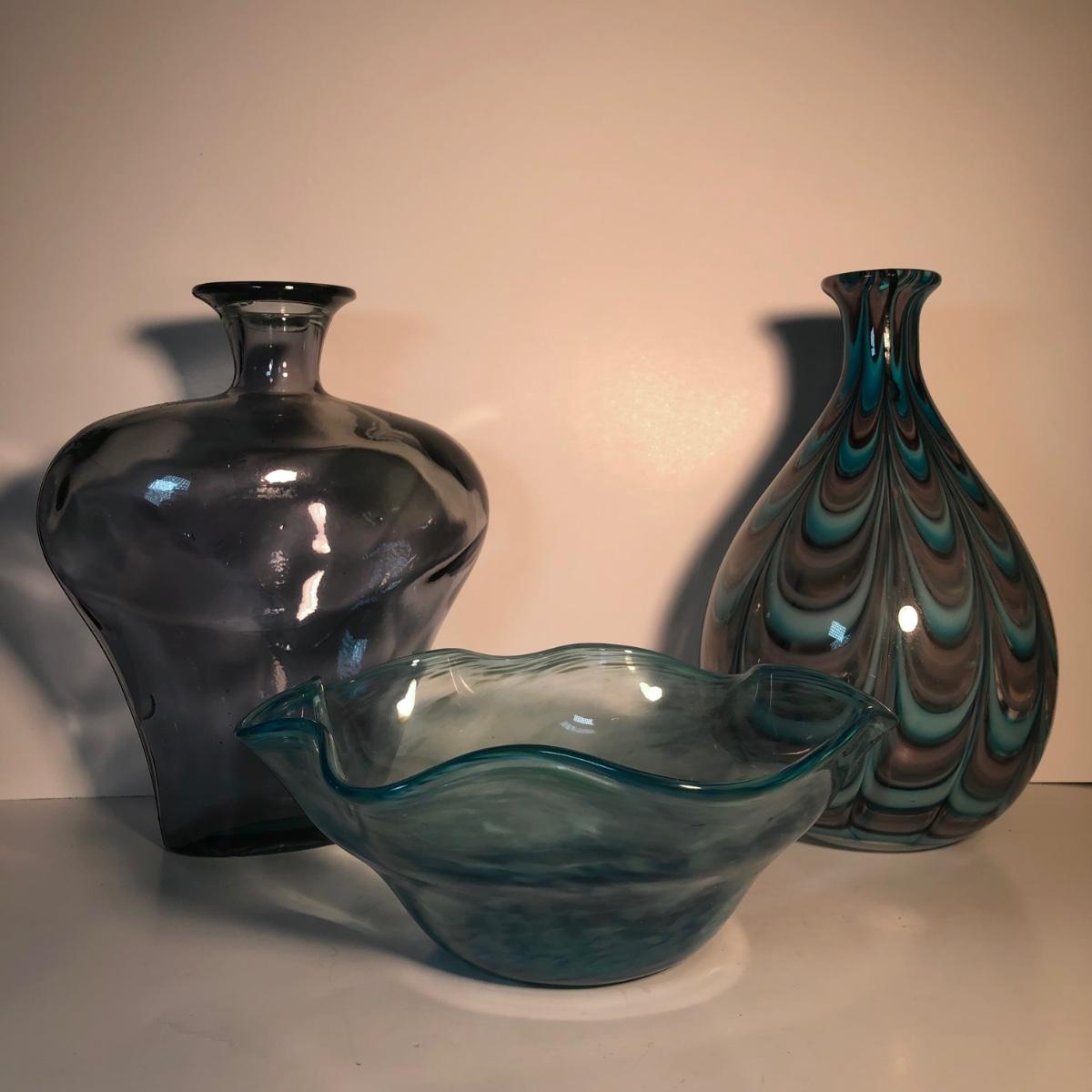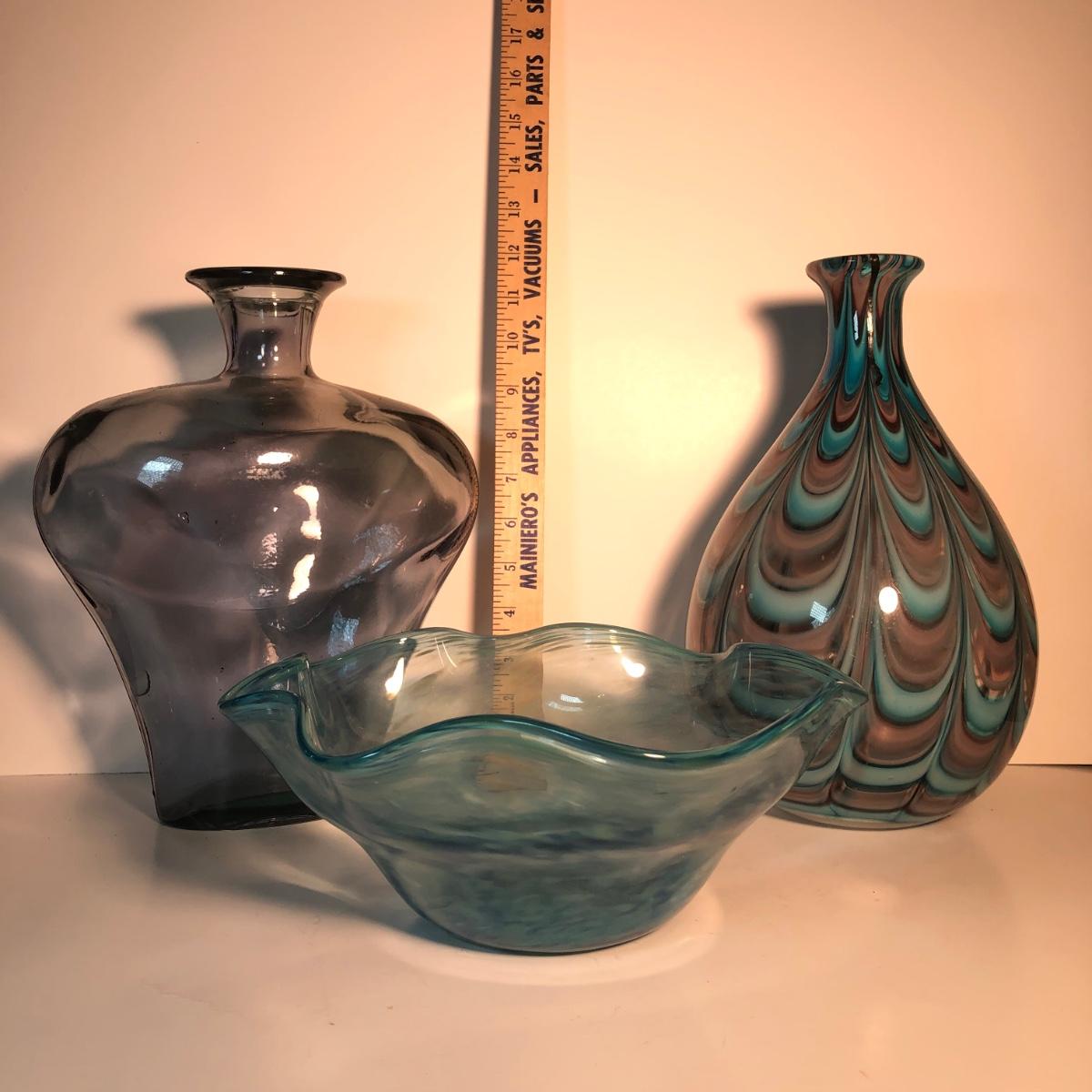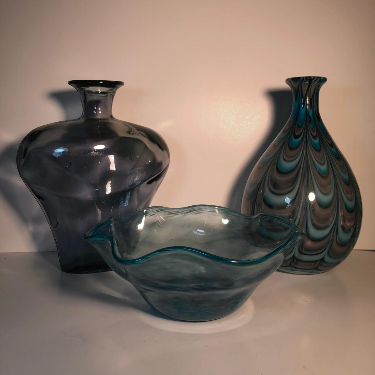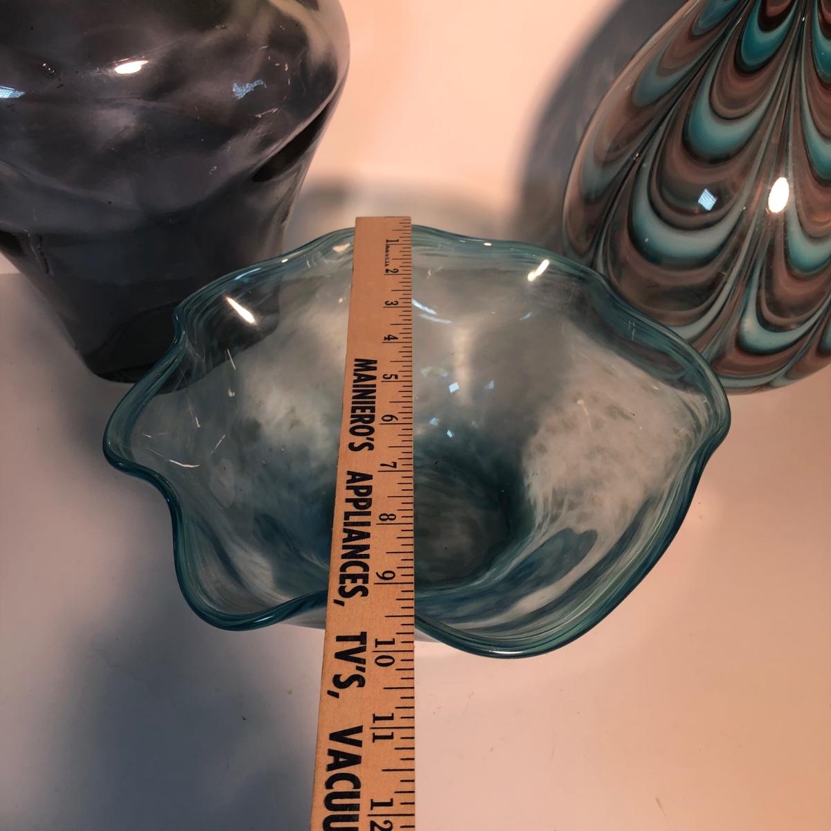 LOT 139L: Vintage Blue Glass Vases & Wavy Edge Bowl