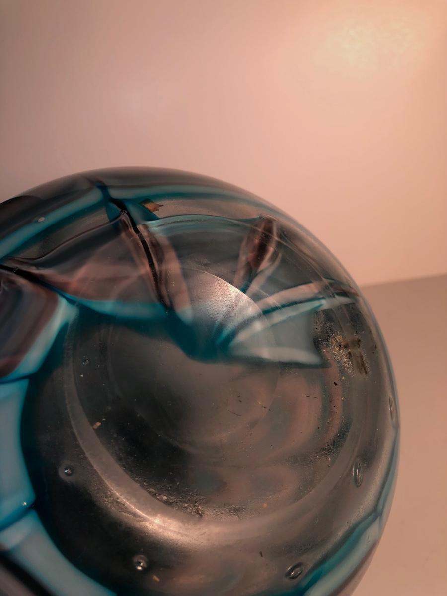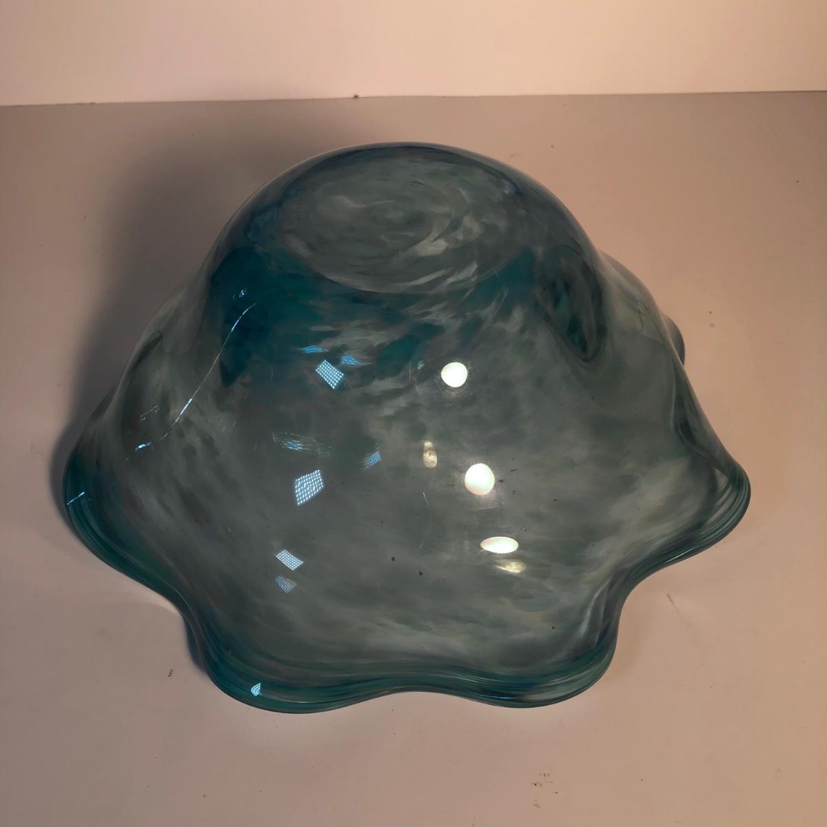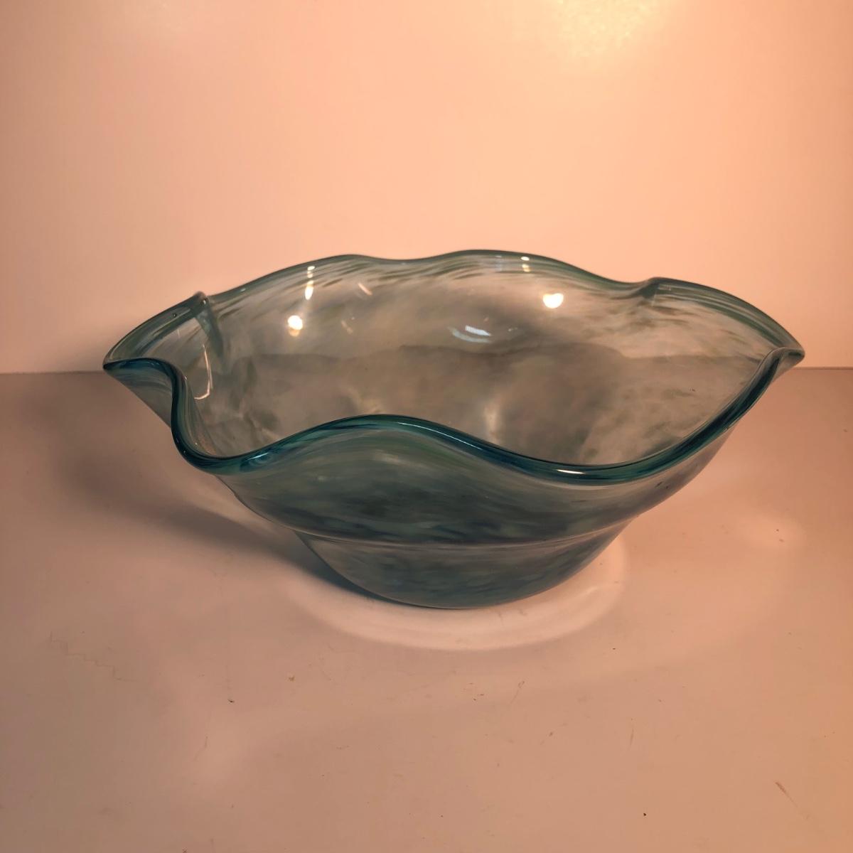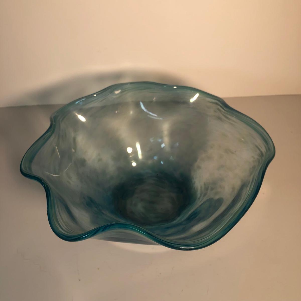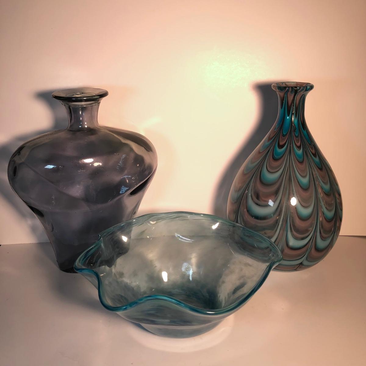 LOT 139L: Vintage Blue Glass Vases & Wavy Edge Bowl