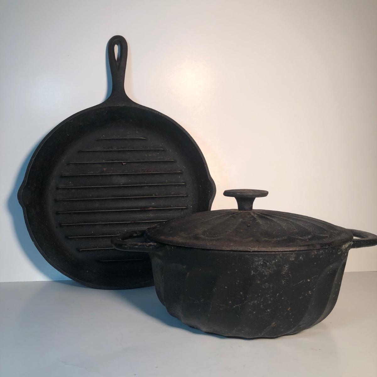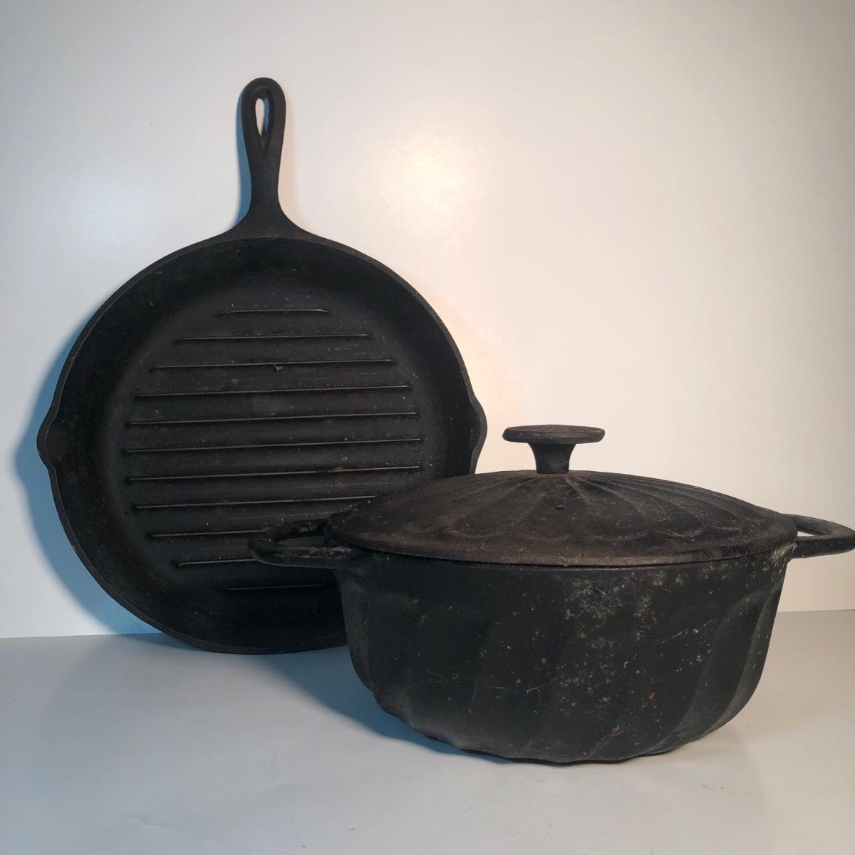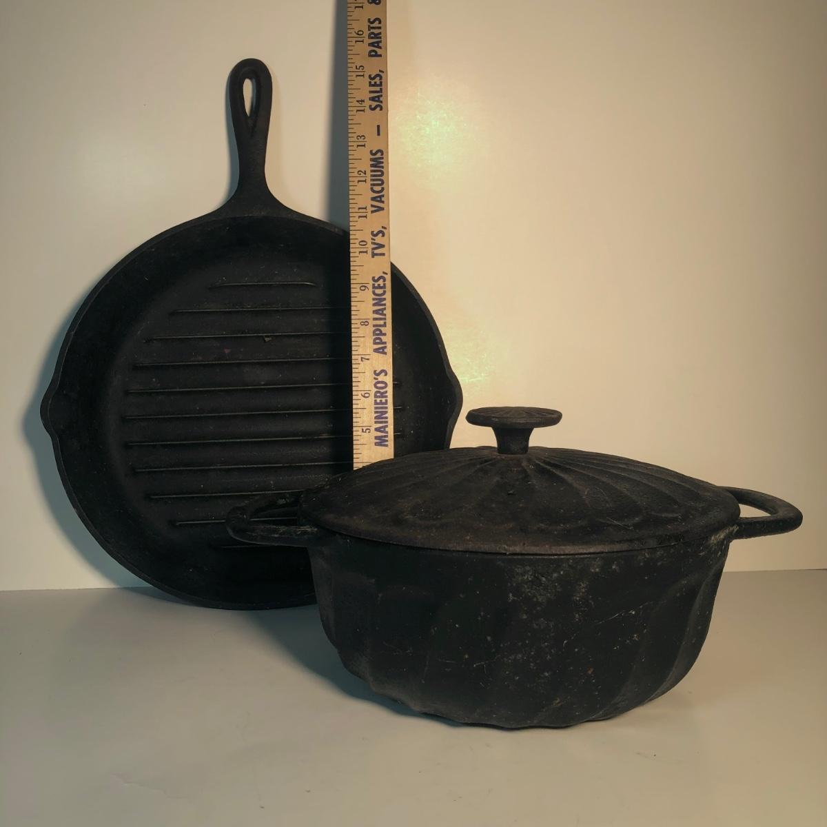 LOT 140L: Vintage Cast Iron - Paula Deen Pot w/ Lid & Lodge Grill Pan