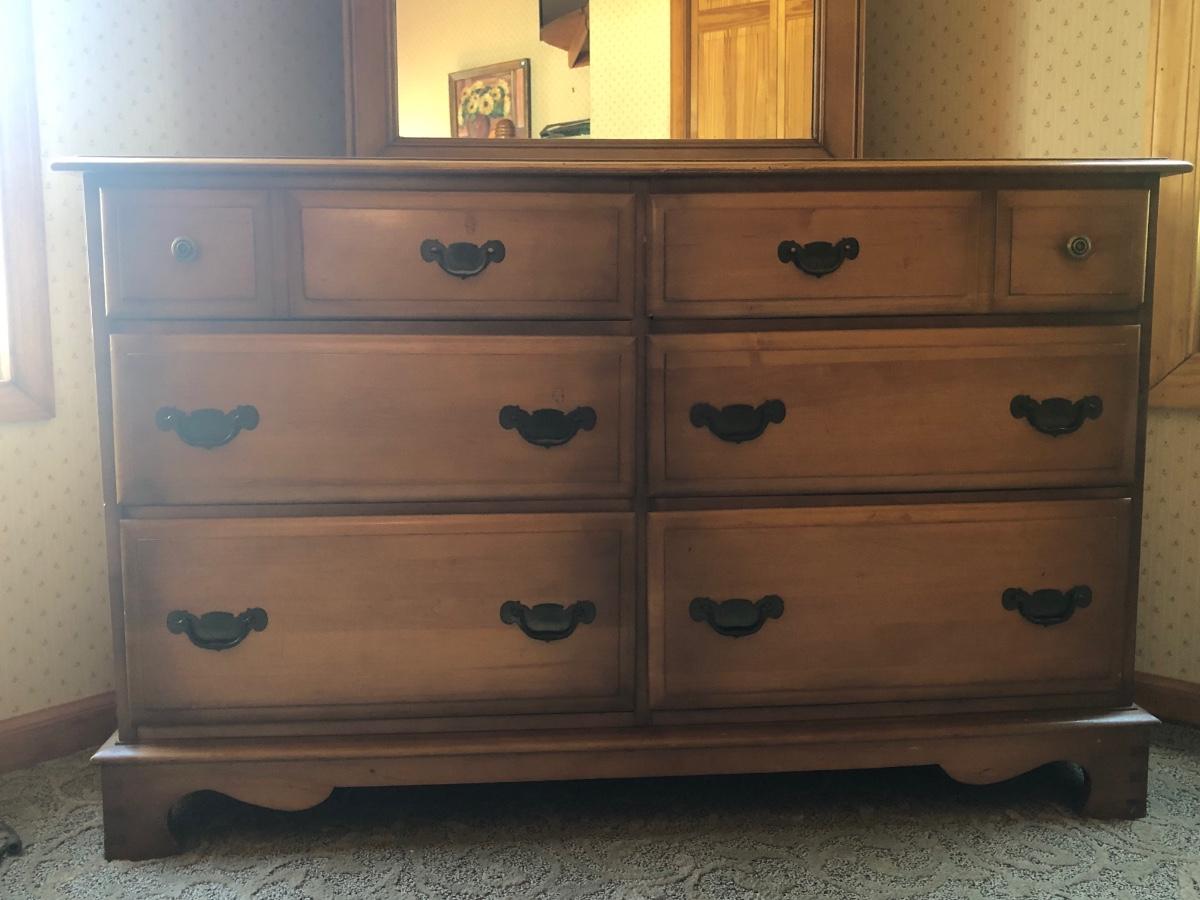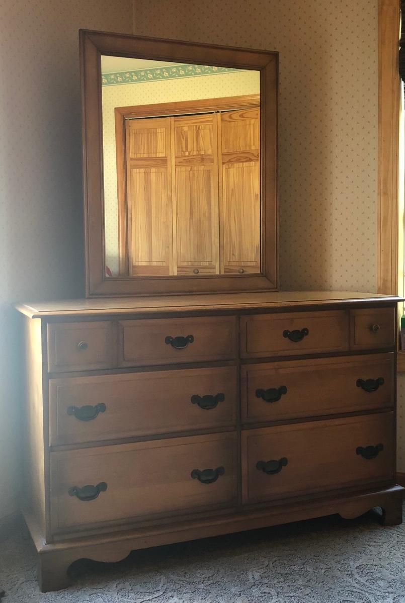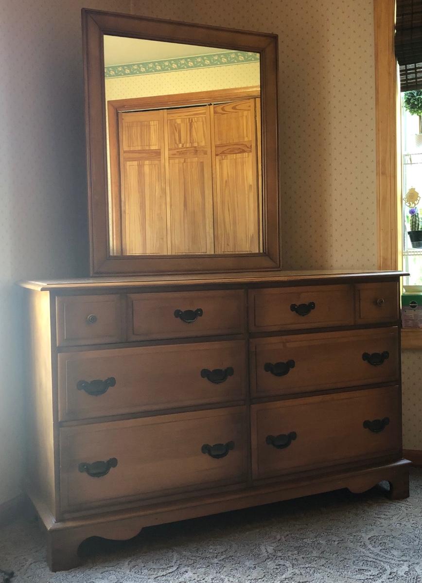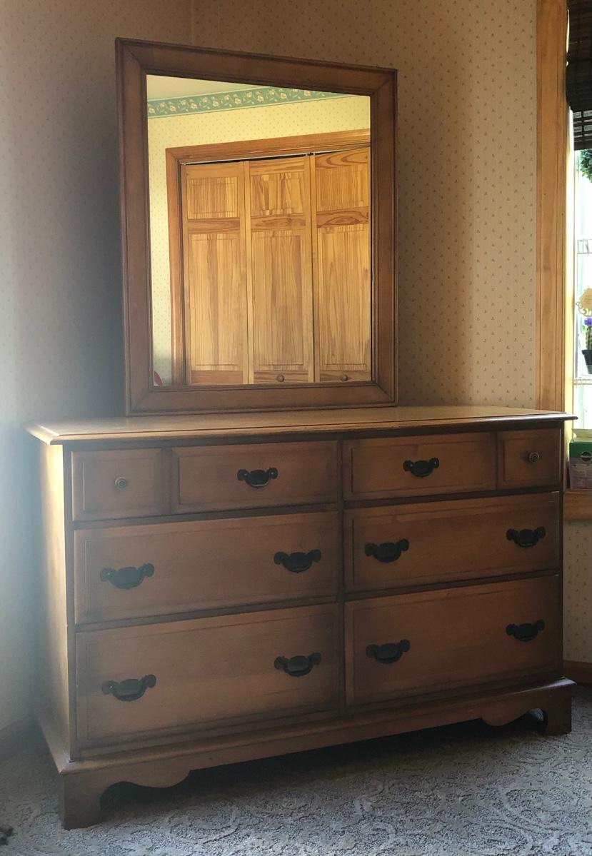 LOT 145M: Vintage Wood Dresser w/ Vanity Mirror