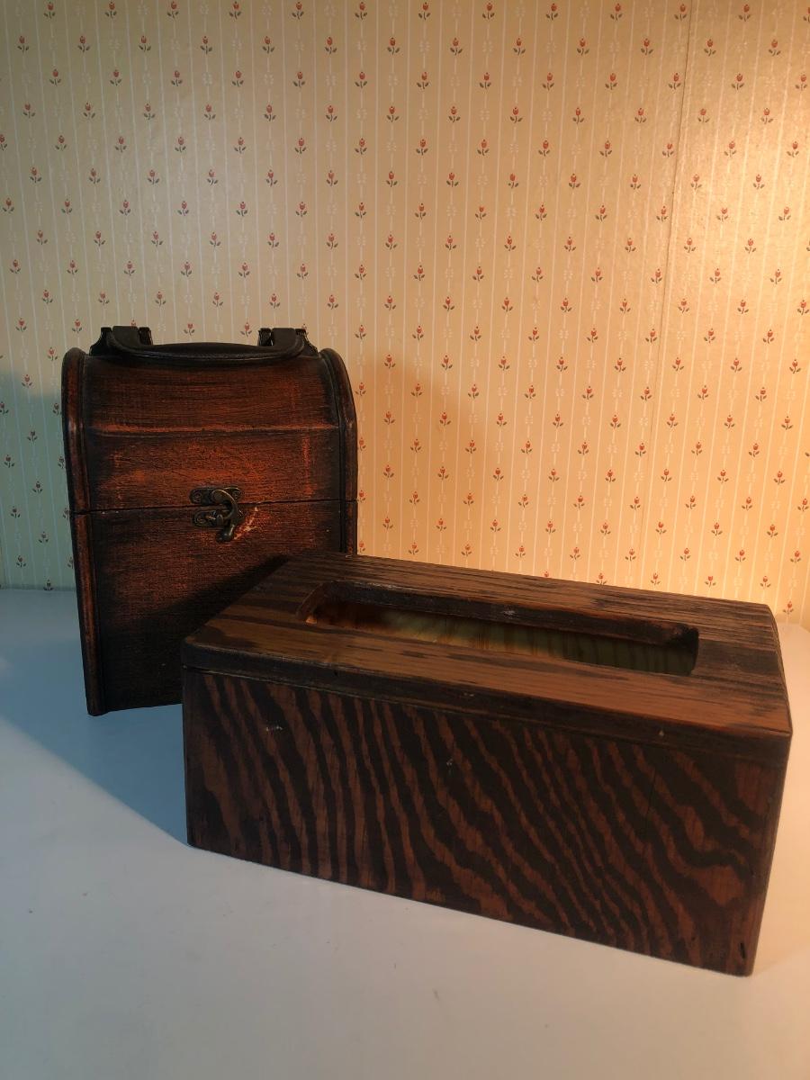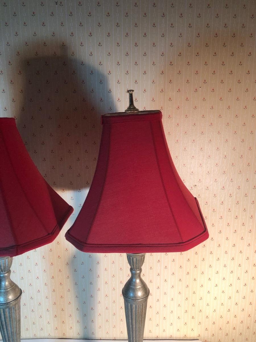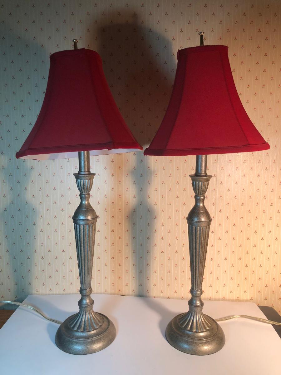 LOT 154M: Home Decor Collection - Red Shade Lamps, Clock, Decorative Wooden Box & Tissue Box Cover