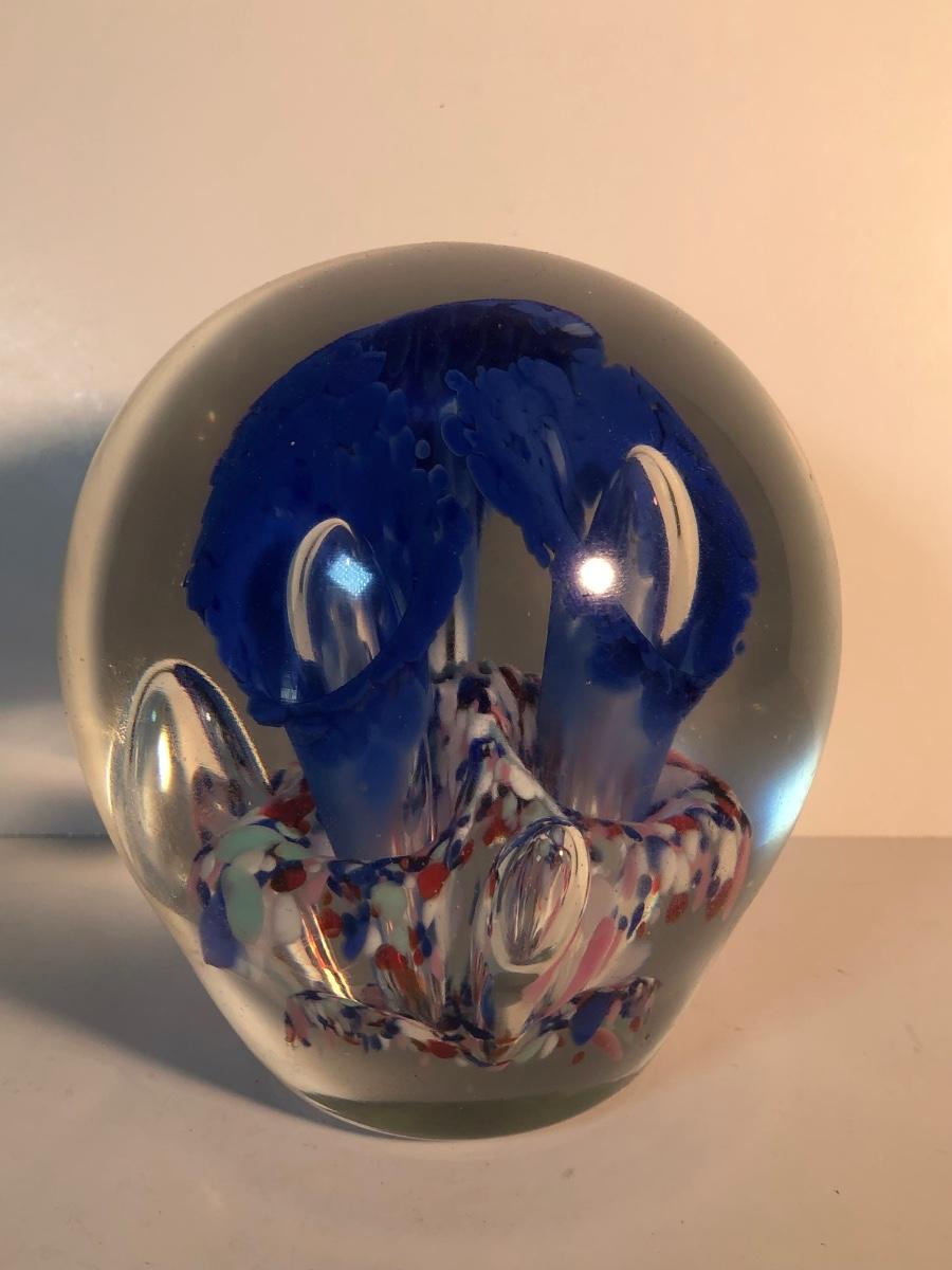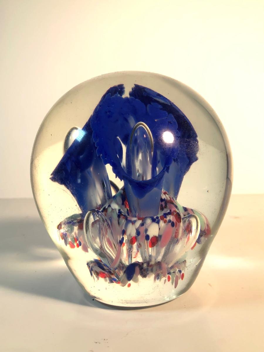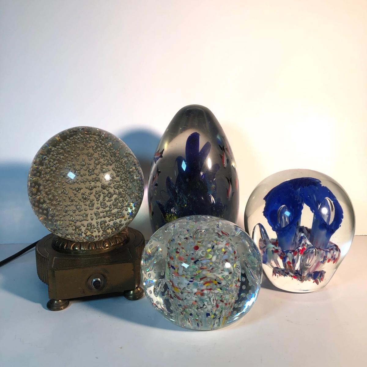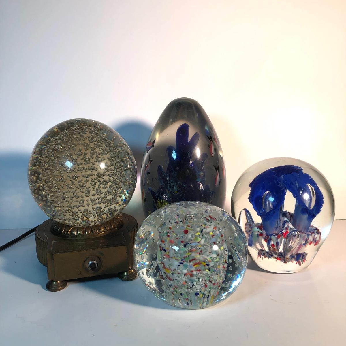 LOT 156K: Vintage Oversized Glass Paperweights - One w/ Lit Stand