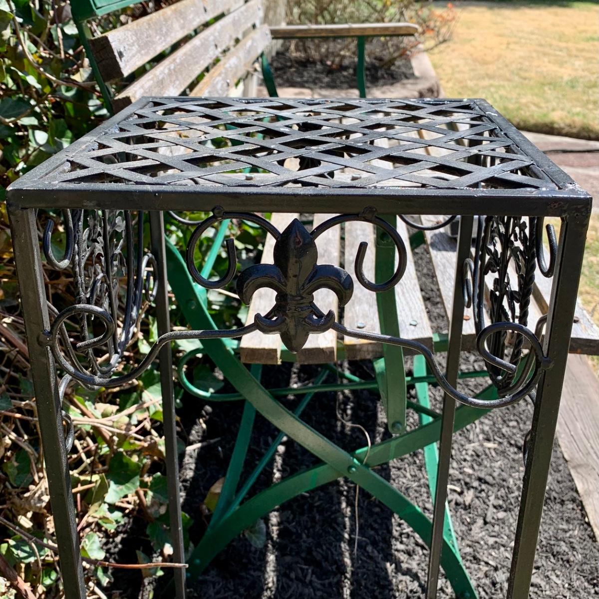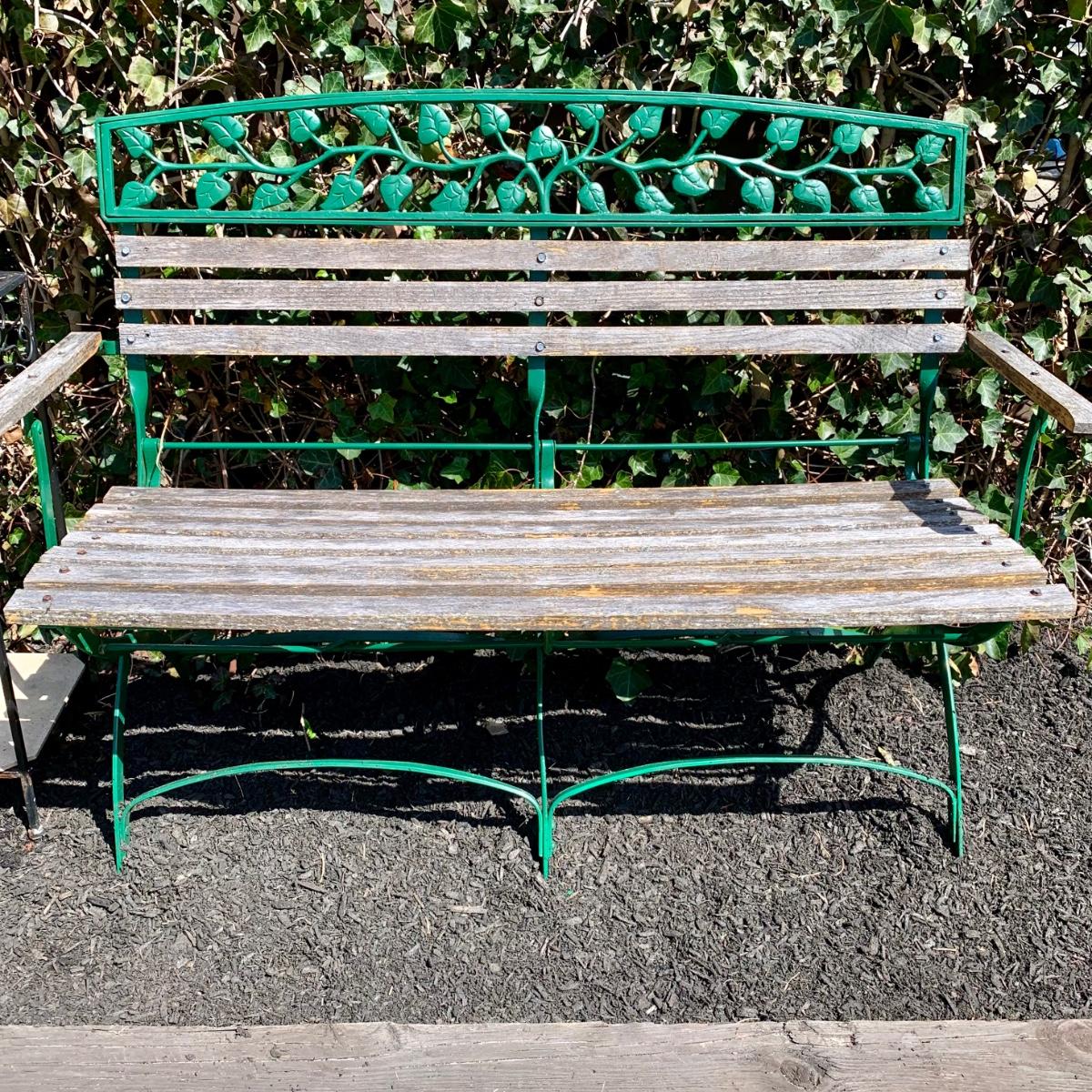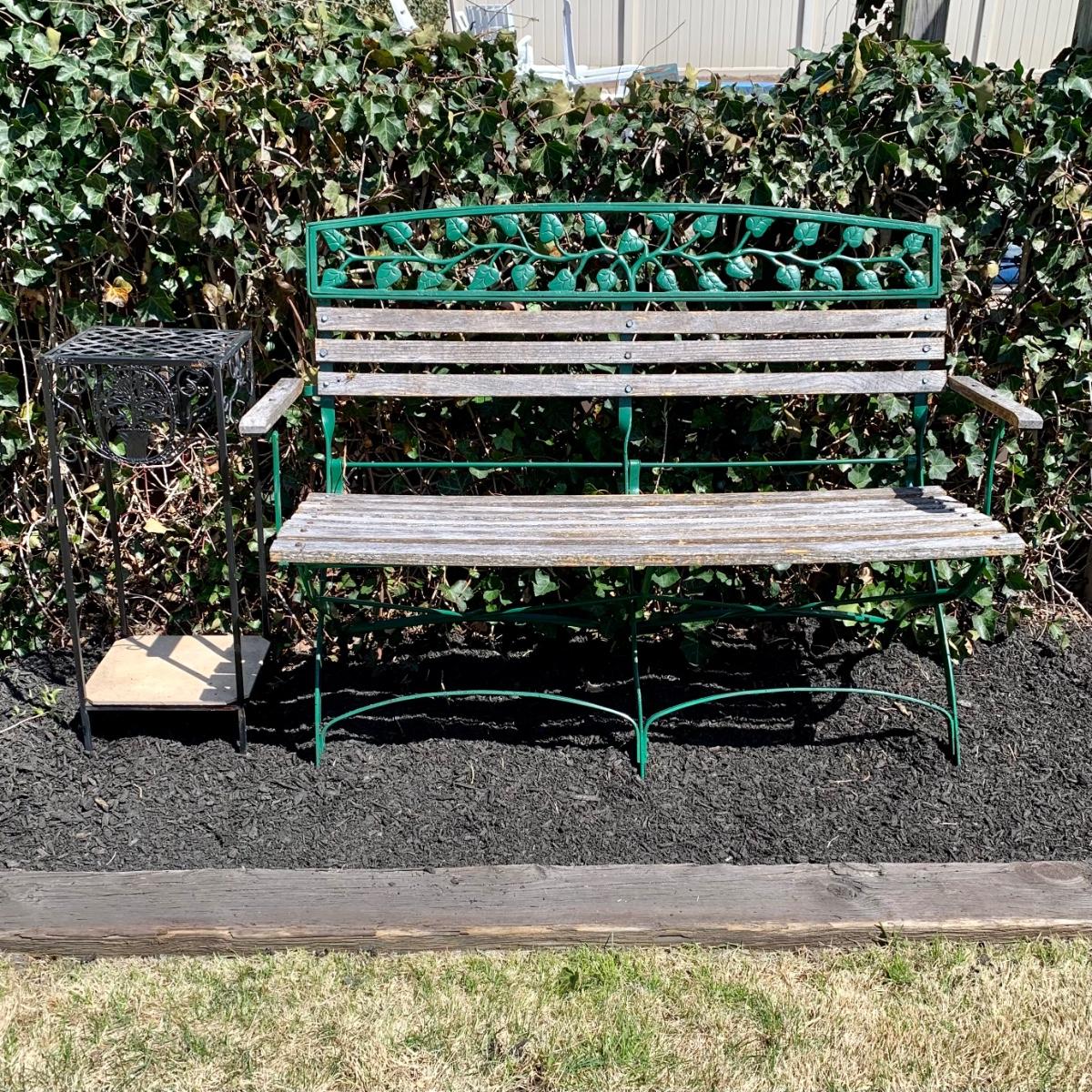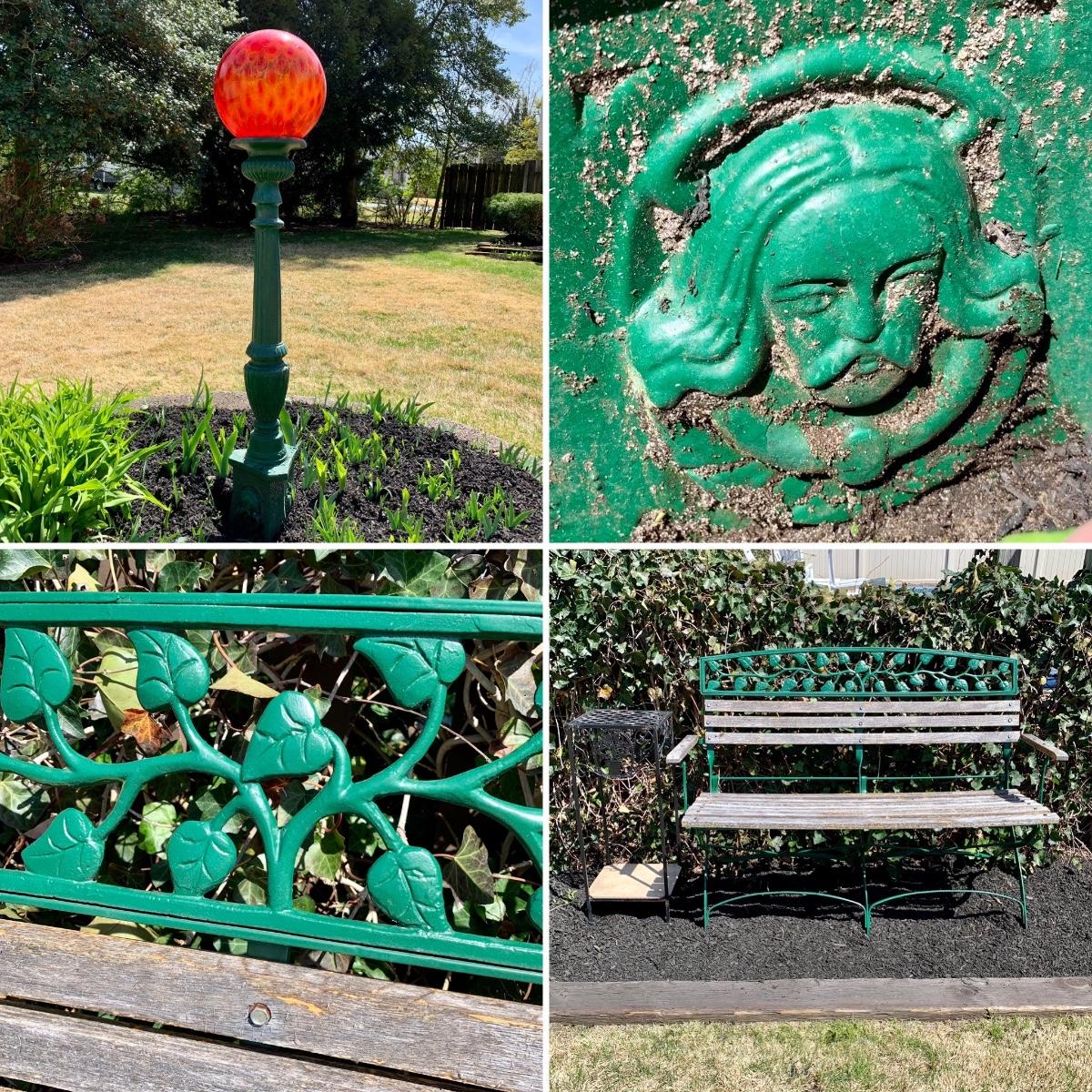 LOT 163 Y: Garden Bench W/ Metal Side Table & Blown Glass Globe W/ Post