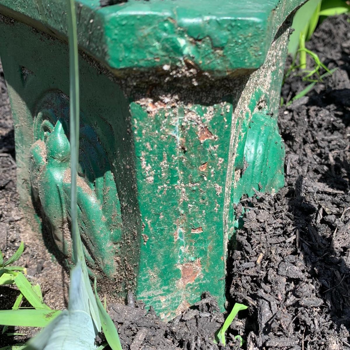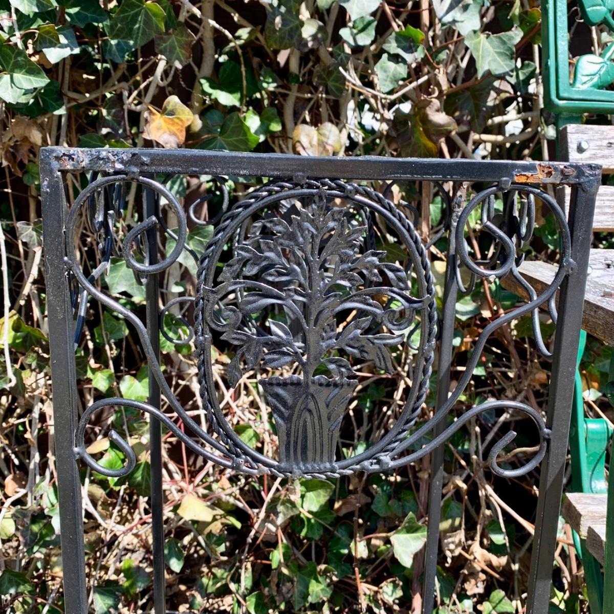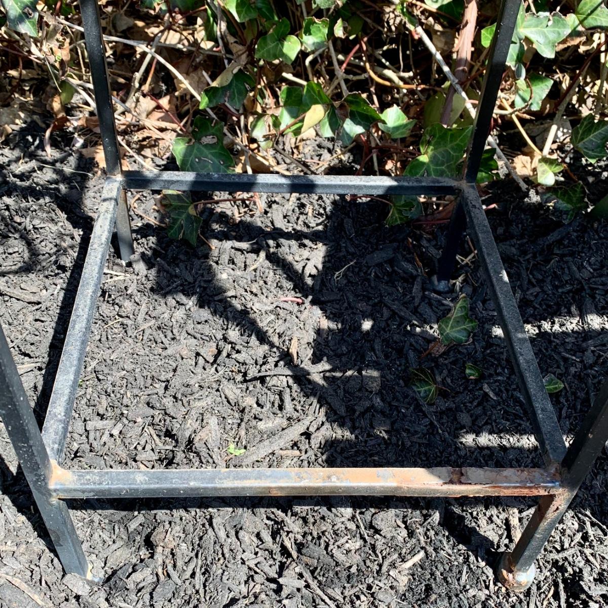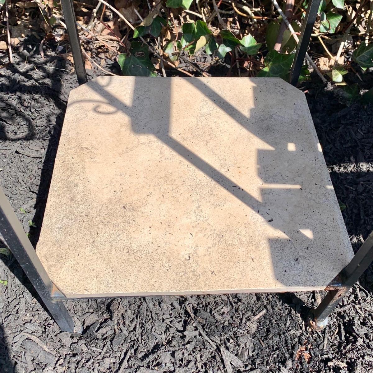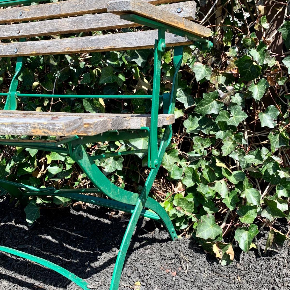 LOT 163 Y: Garden Bench W/ Metal Side Table & Blown Glass Globe W/ Post