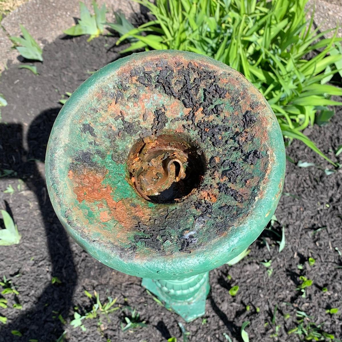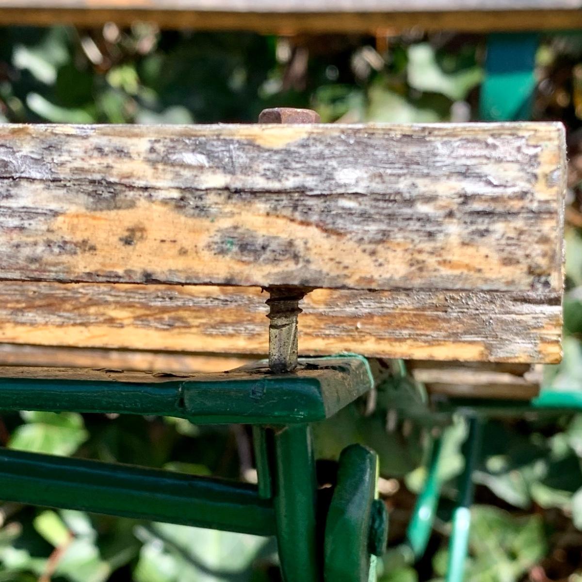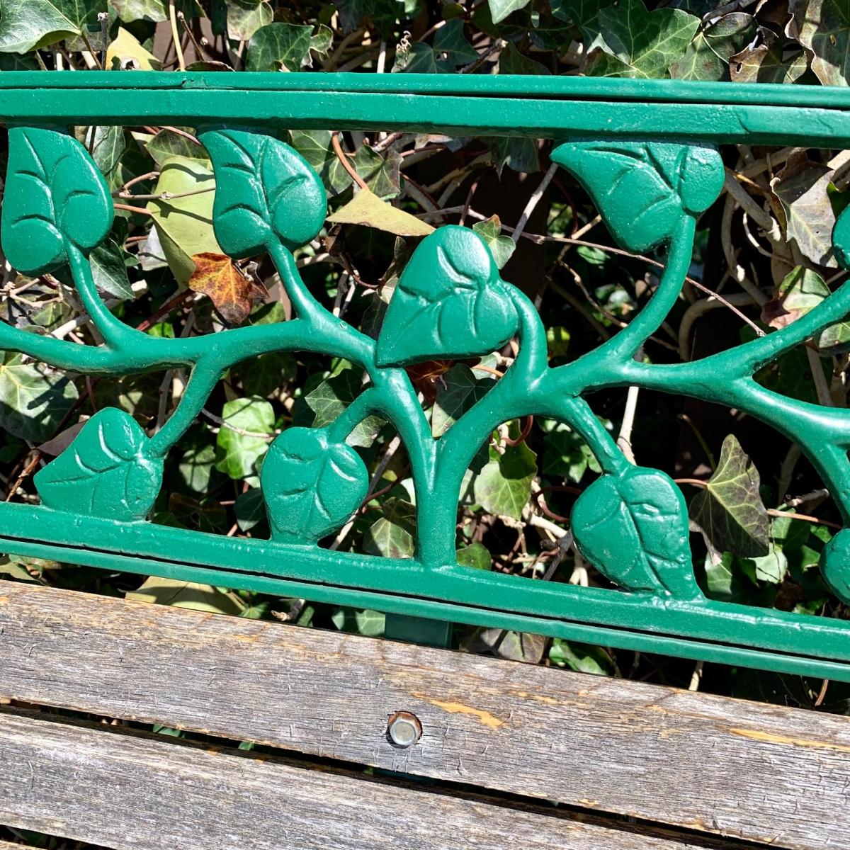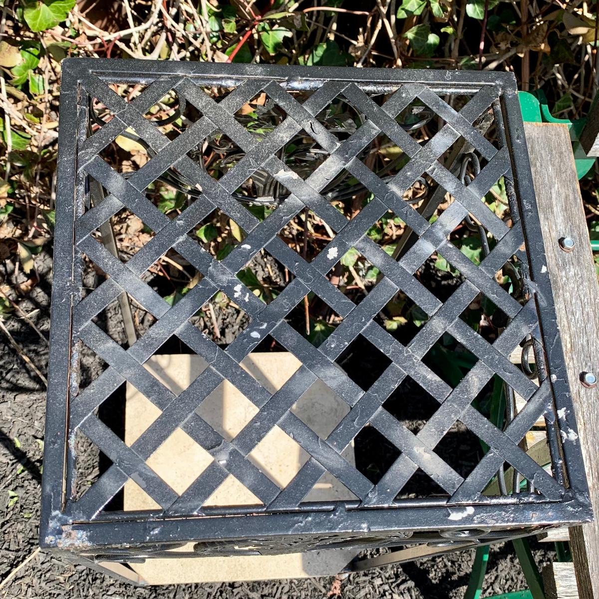 LOT 163 Y: Garden Bench W/ Metal Side Table & Blown Glass Globe W/ Post