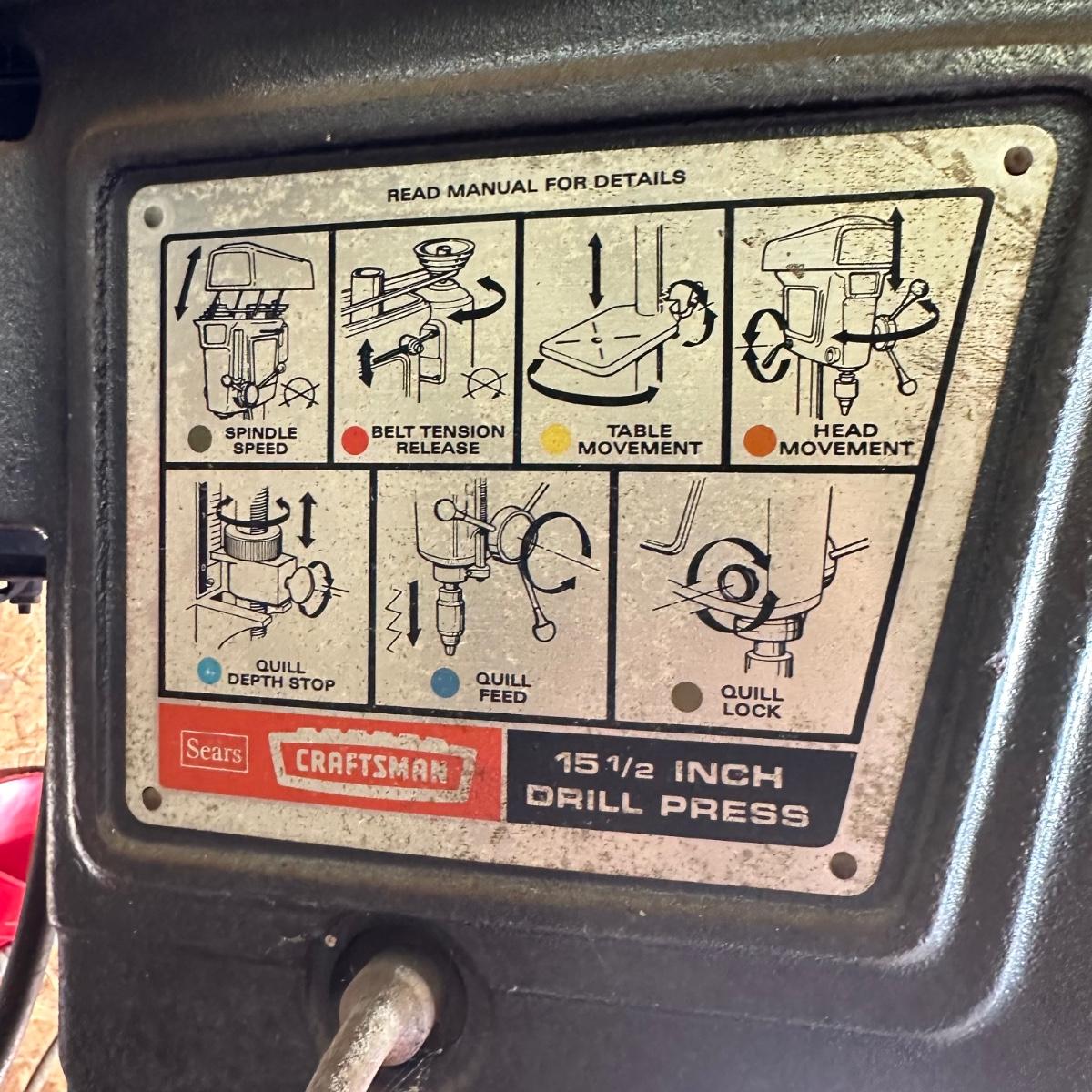 LOT 208G: Craftsman 15 1/2” Drill Press