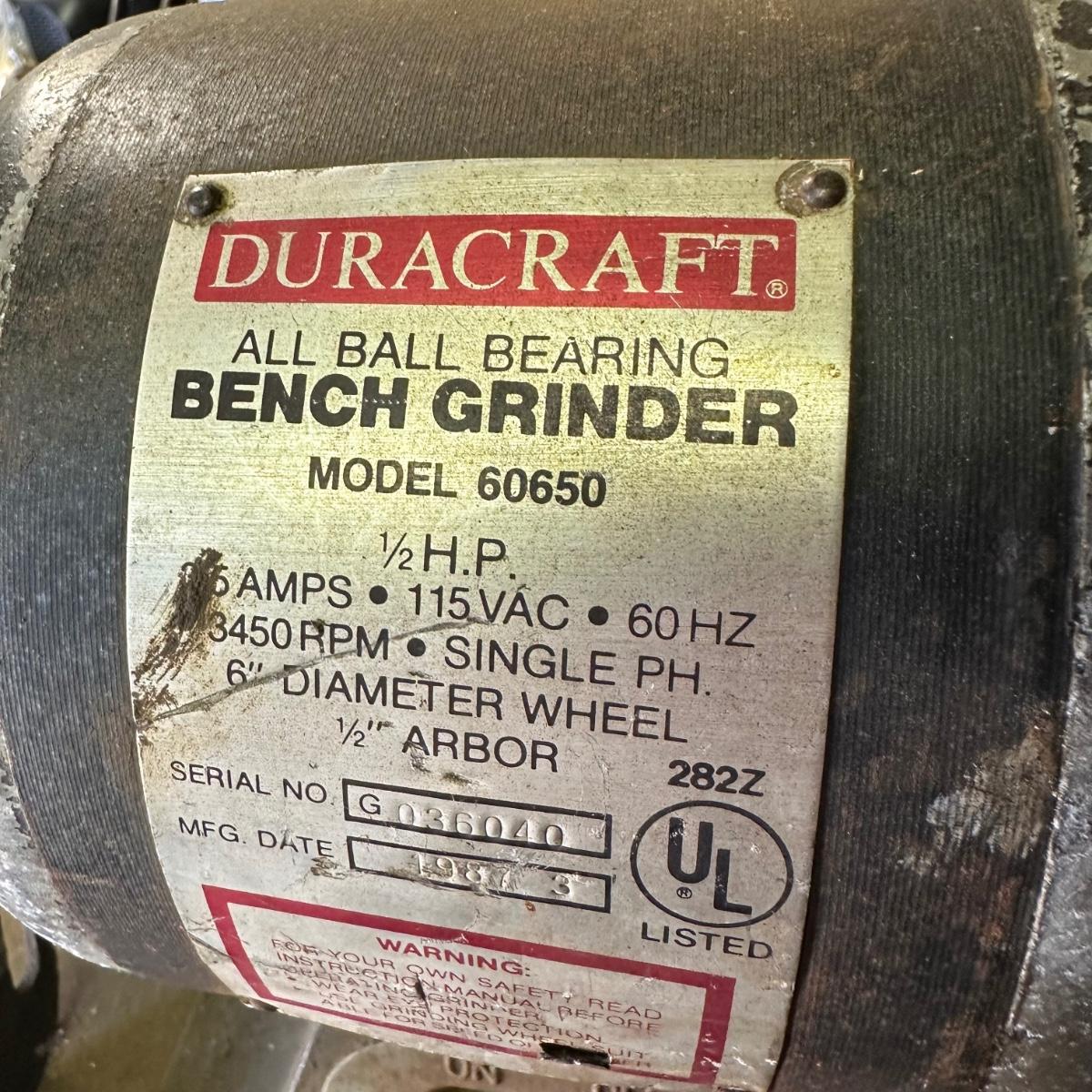 LOT 209G: DURACRAFT. ALL BALL BEARING BENCH GRINDER MODEL 60650