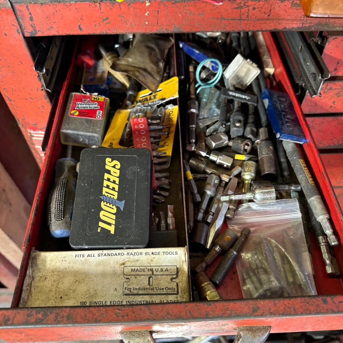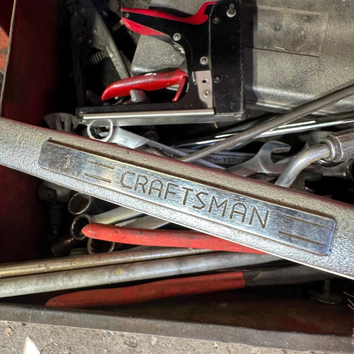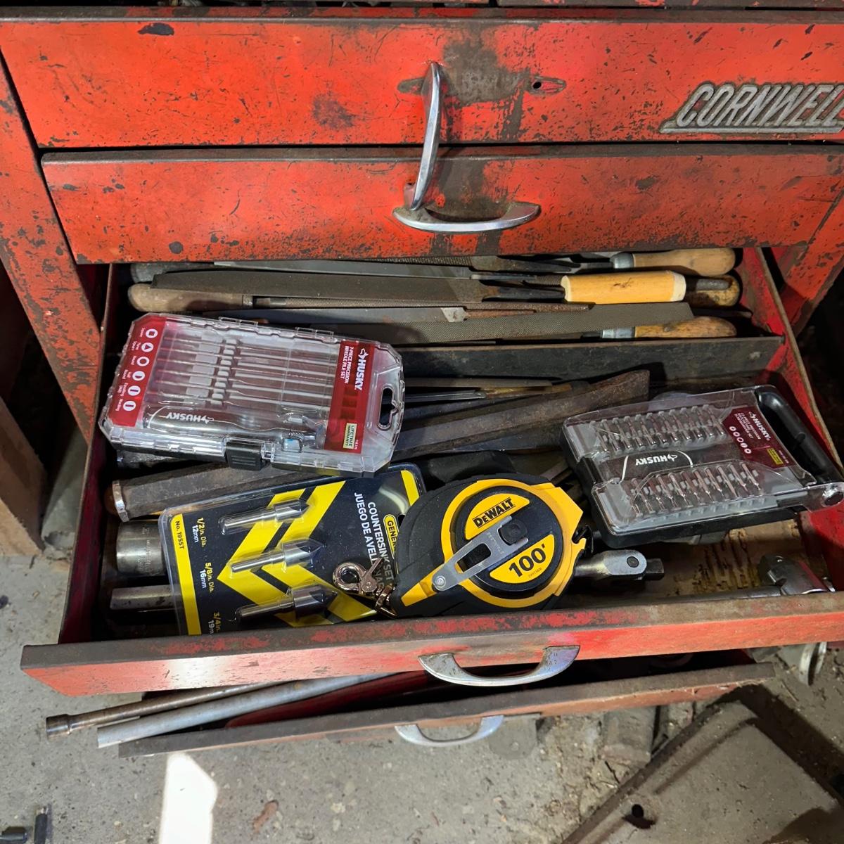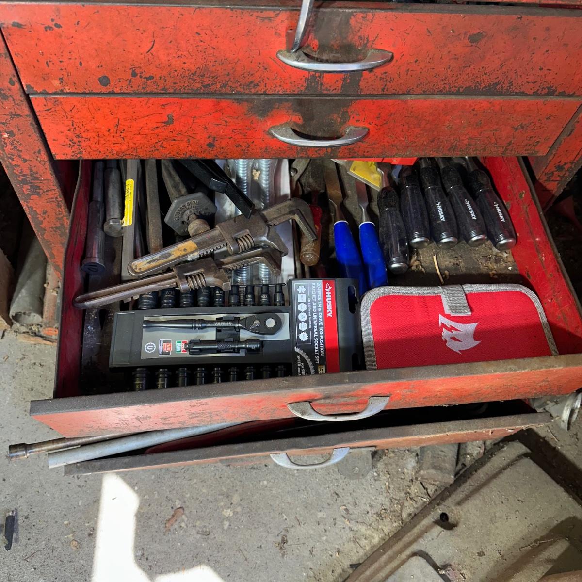 Drawer has been pulled out but comes with tool box, 27x18x34.5 - Please see all pictures as they are the best representation of the items. The pictures show condition, measurements if taken, and what is included in the lot. Due to the large amount that we photograph and the time frame, we are not always able to take measurements. All items unless noted, are pre-owned and have been used. If you purchased furniture, you must bring help. We do not allow one person to carry large furniture out on their own. Bring help, tools and a truck for the safety of our client’s homes, and your personal safety. Any damages that result to the property including walls, and floors due to moving of the furniture will be charged to the buyer. Company policy. Thank you.