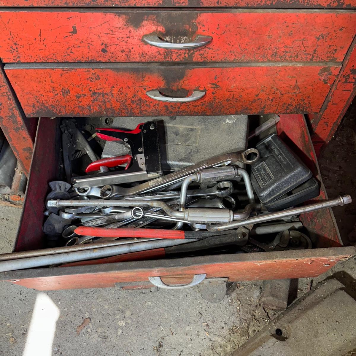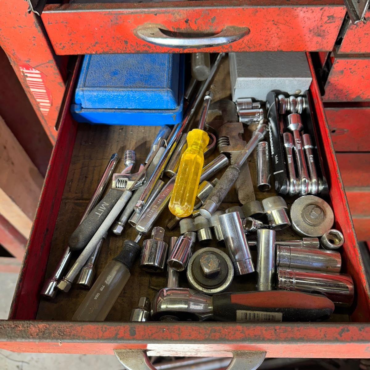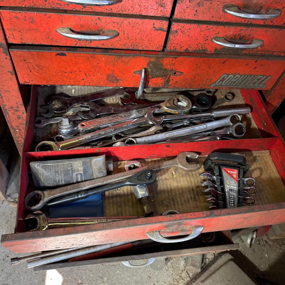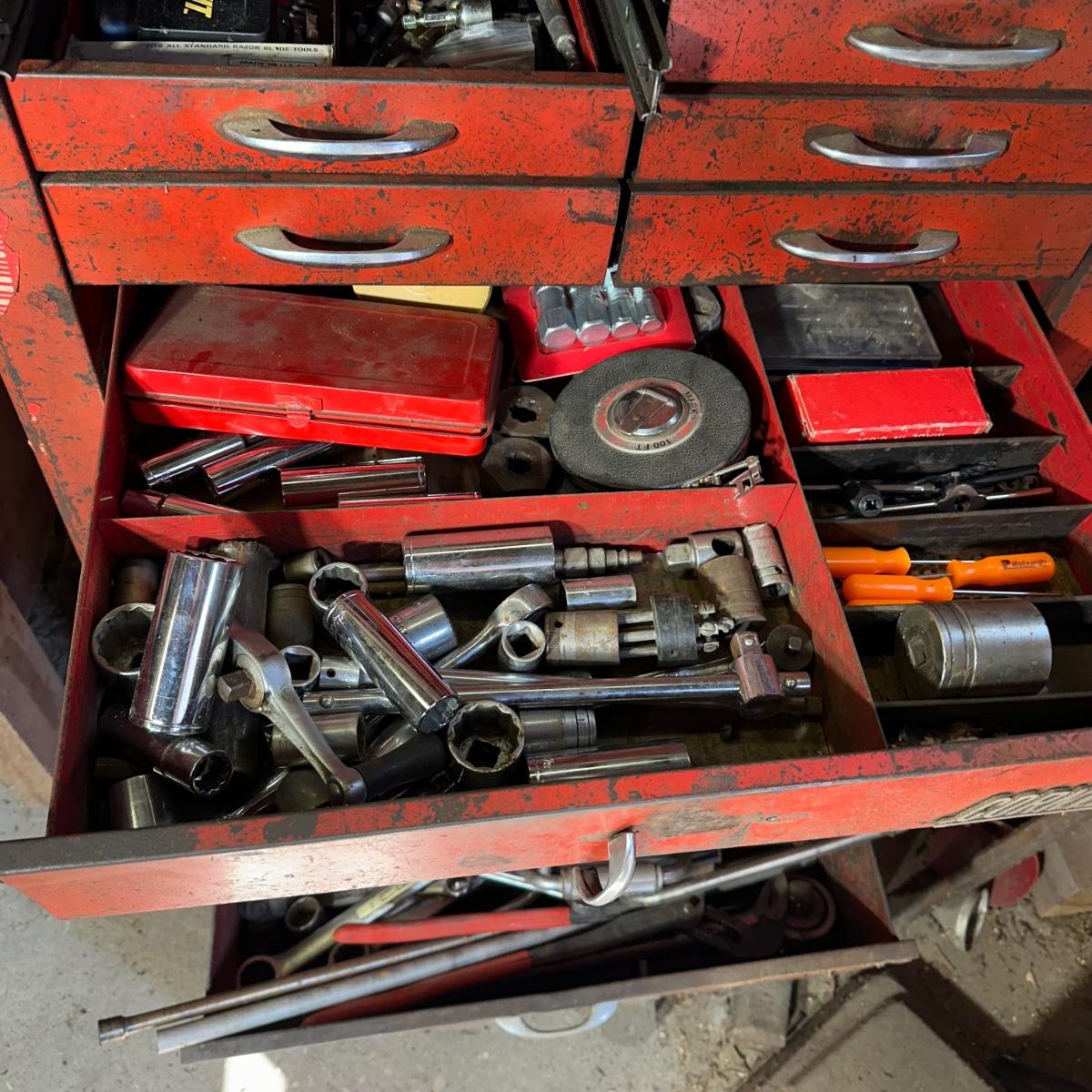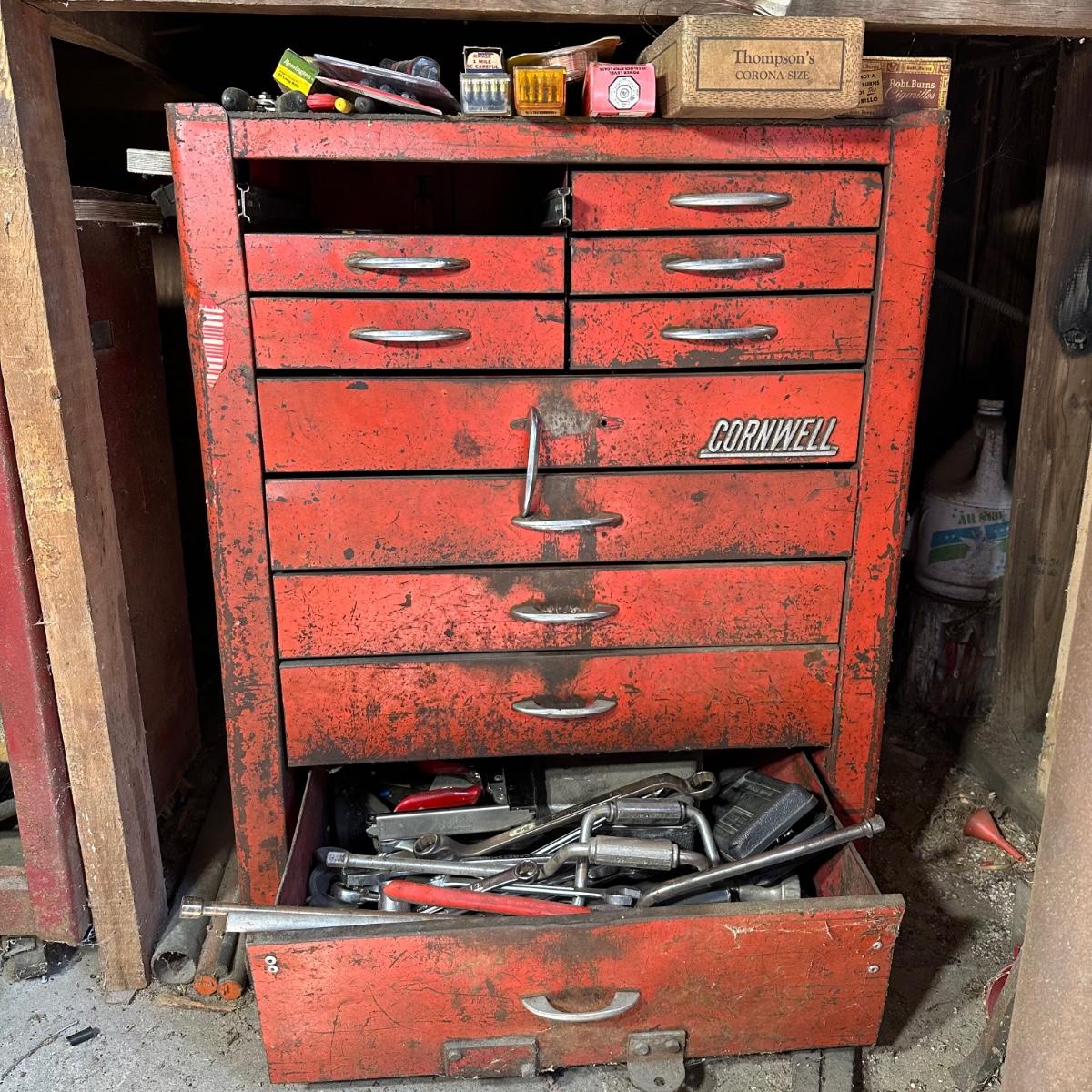 Drawer has been pulled out but comes with tool box, 27x18x34.5 - Please see all pictures as they are the best representation of the items. The pictures show condition, measurements if taken, and what is included in the lot. Due to the large amount that we photograph and the time frame, we are not always able to take measurements. All items unless noted, are pre-owned and have been used. If you purchased furniture, you must bring help. We do not allow one person to carry large furniture out on their own. Bring help, tools and a truck for the safety of our client’s homes, and your personal safety. Any damages that result to the property including walls, and floors due to moving of the furniture will be charged to the buyer. Company policy. Thank you.
