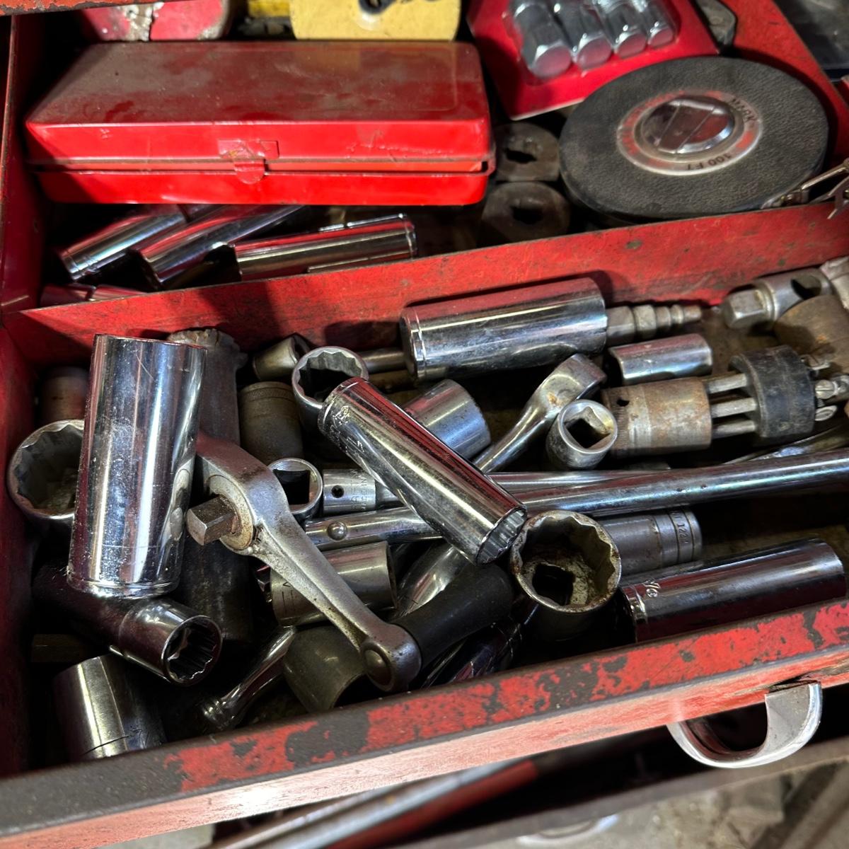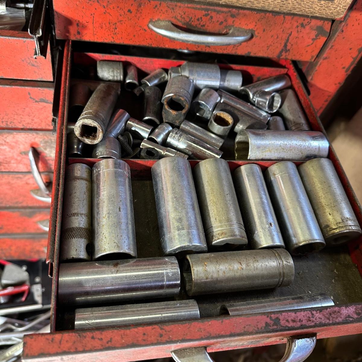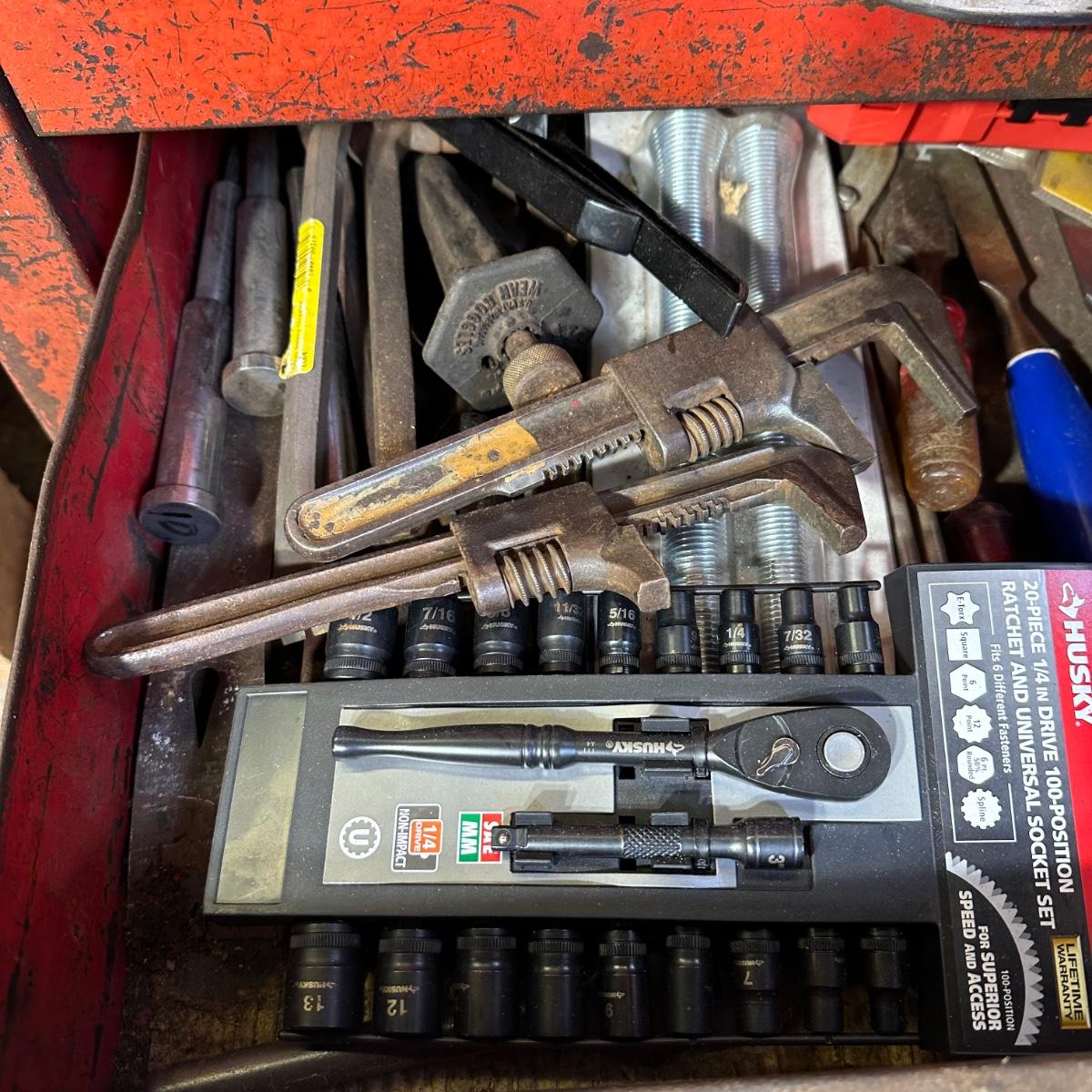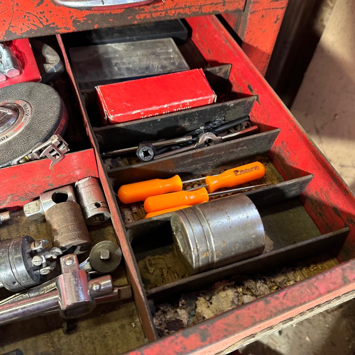 Drawer has been pulled out but comes with tool box, 27x18x34.5 - Please see all pictures as they are the best representation of the items. The pictures show condition, measurements if taken, and what is included in the lot. Due to the large amount that we photograph and the time frame, we are not always able to take measurements. All items unless noted, are pre-owned and have been used. If you purchased furniture, you must bring help. We do not allow one person to carry large furniture out on their own. Bring help, tools and a truck for the safety of our client’s homes, and your personal safety. Any damages that result to the property including walls, and floors due to moving of the furniture will be charged to the buyer. Company policy. Thank you.
